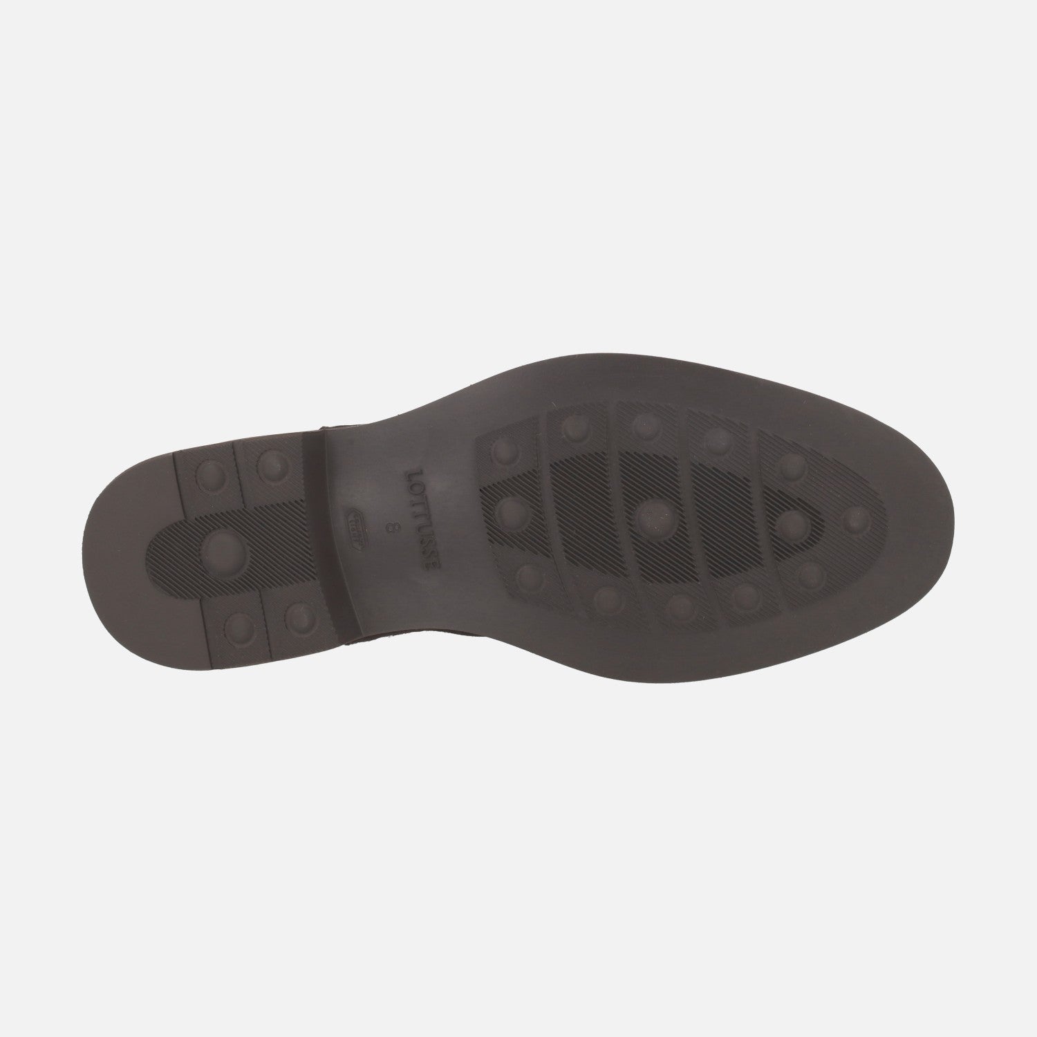 Botines para hombre estilo chelsea de la marca Lottusse modelo Baltimore LL07247 en ante moka. Botines chelsea, con elásticos laterales a ambos lados y tirador trasero para facilitar el calce. Botines elaborados en piel ante marrón oscuro, con forro interior de piel. Plantillas extraíbles. Piso de goma. Made in SPain.