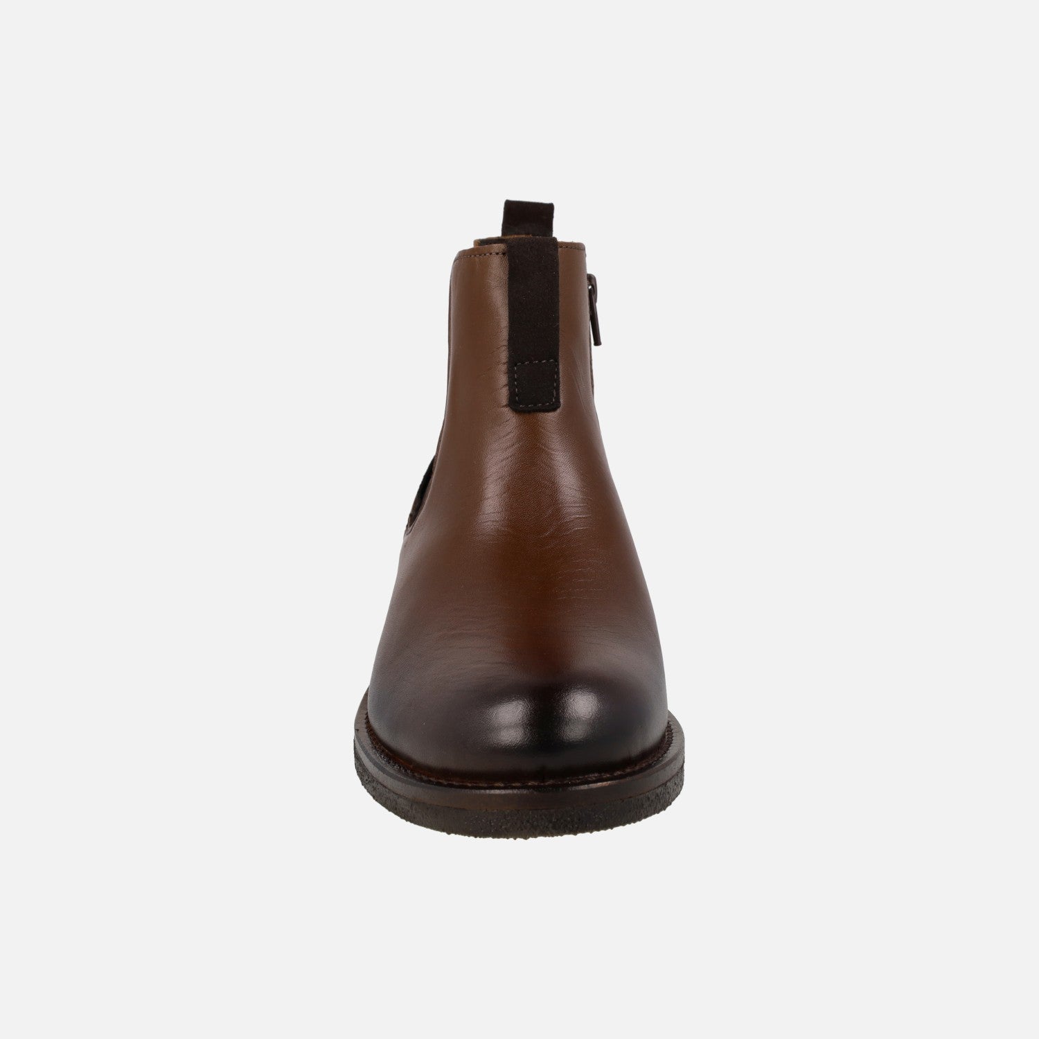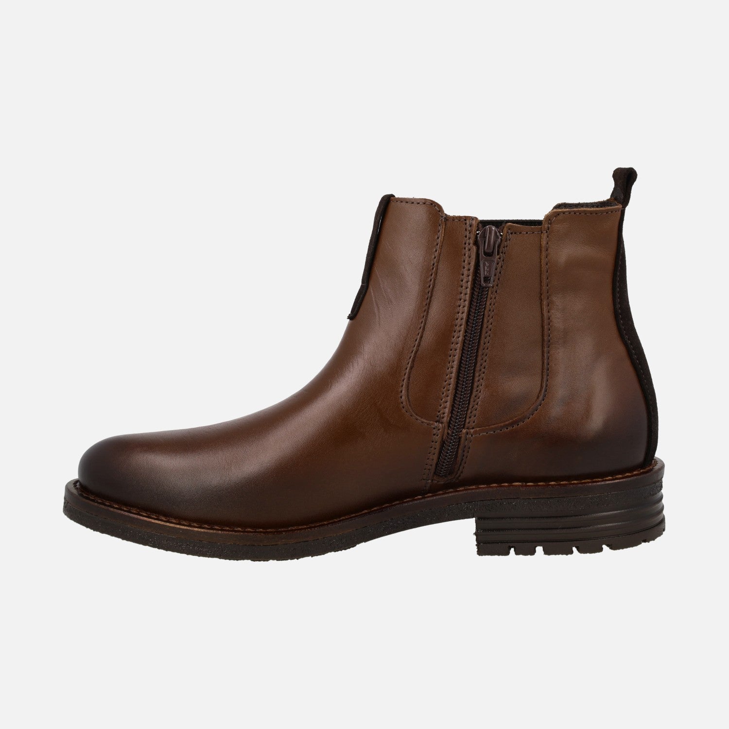 Botines para hombre de la marca Help The Trees, B4715. Fabricados en piel envejecida marrón, con detalles en serraje y elástico al tono en la parte exterior. Lleva cremallera interior para facilitar el calce. Forro y plantillas en textil. Piso de goma. Inspirados en los botines Chelsea.