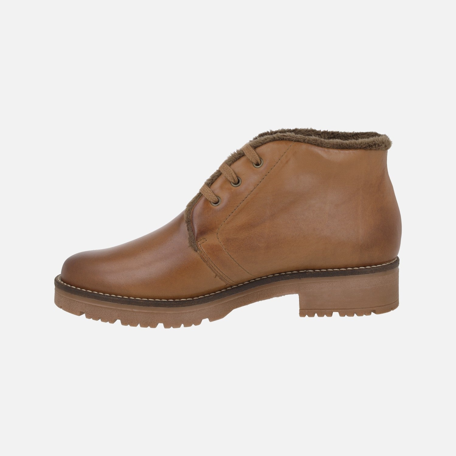 Botines de cordones en piel cuero con forro de pelo