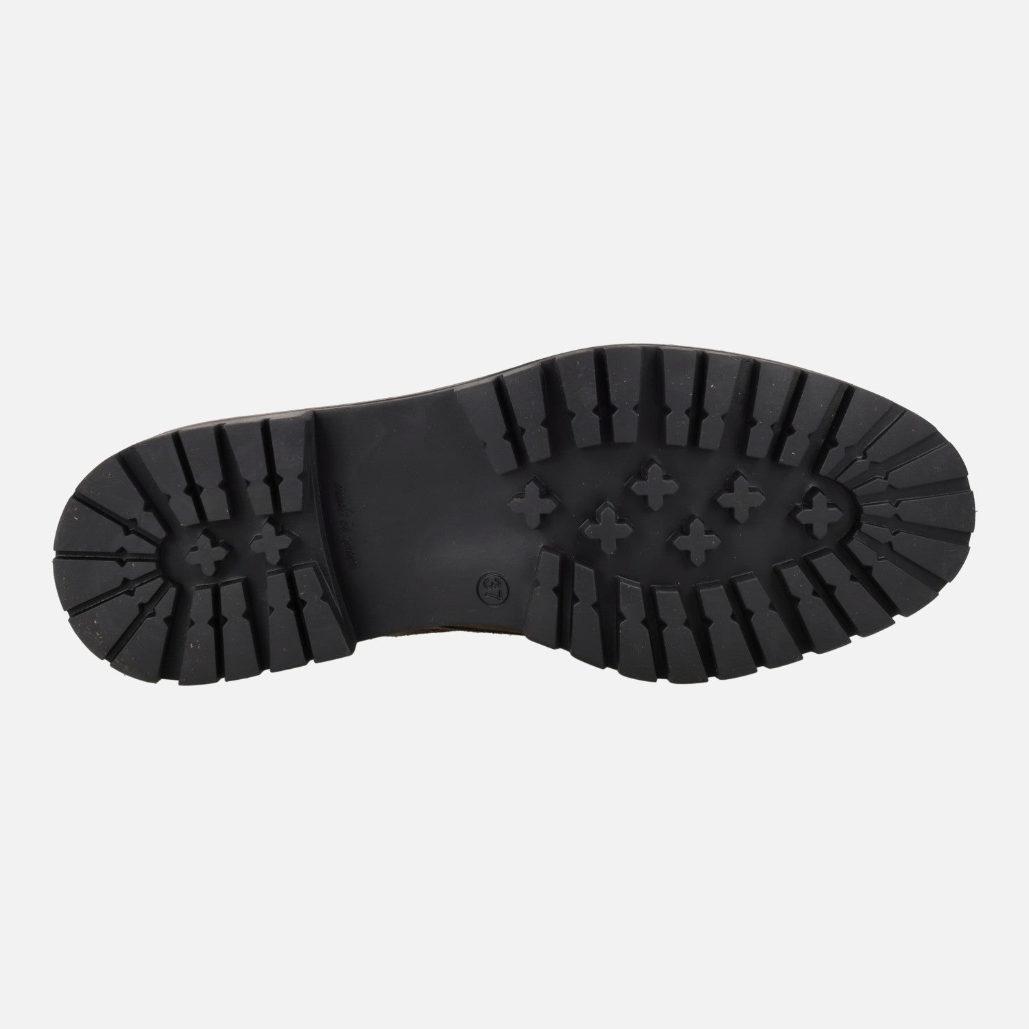 Botines para mujer de la marca Alpe, modelo Militare 2610 Baby silk Mustang. Botines elaborados en piel serraje en color Mustang (marrón oscuro), con cierre de cordones en la parte frontal y cierre de cremallera en el lateral interior, para un gran ajuste y sujeción. Interior textil. Piso de goma con tacones de 3 cms (2 cms parte delantera). Caña de 16 cms. Made in Spain.