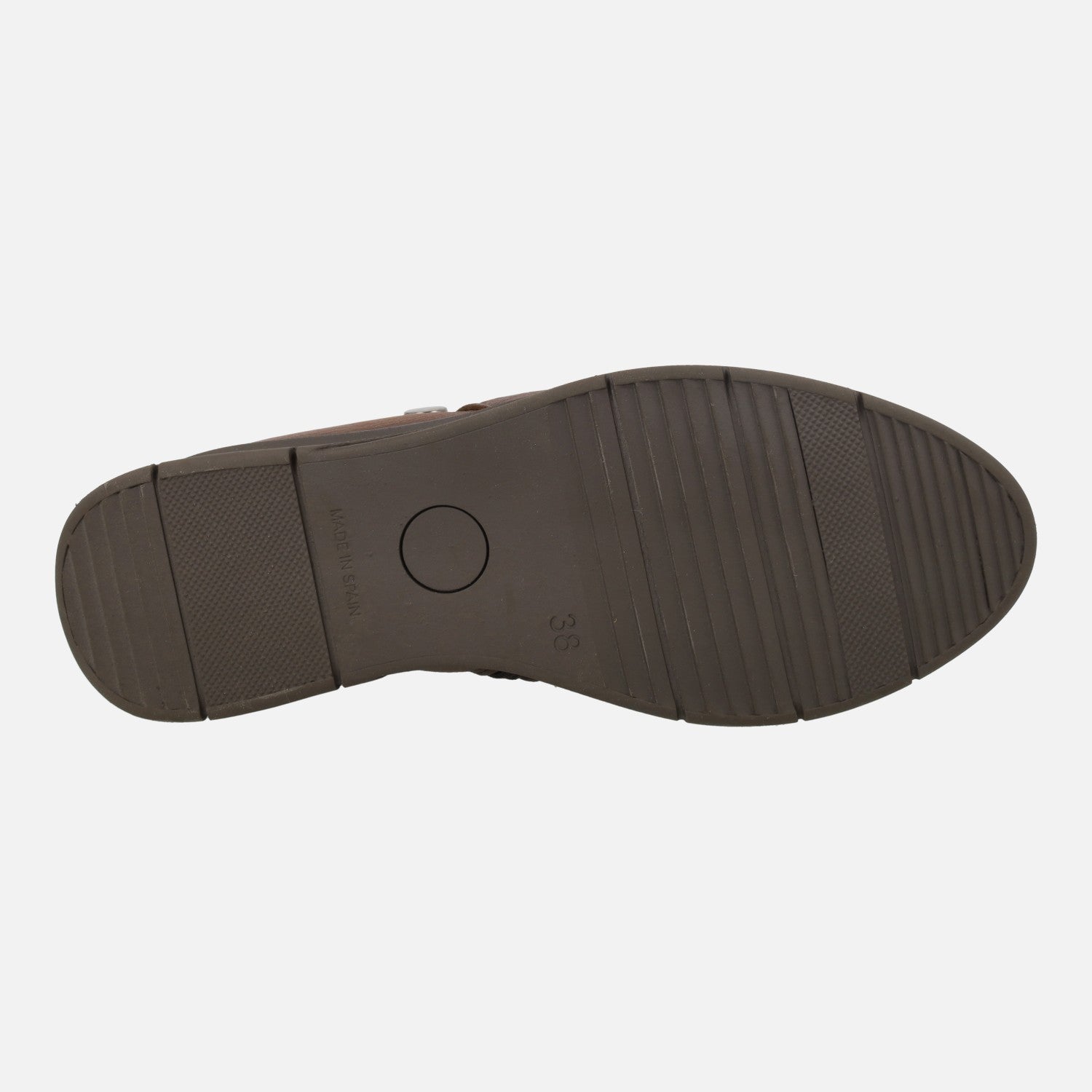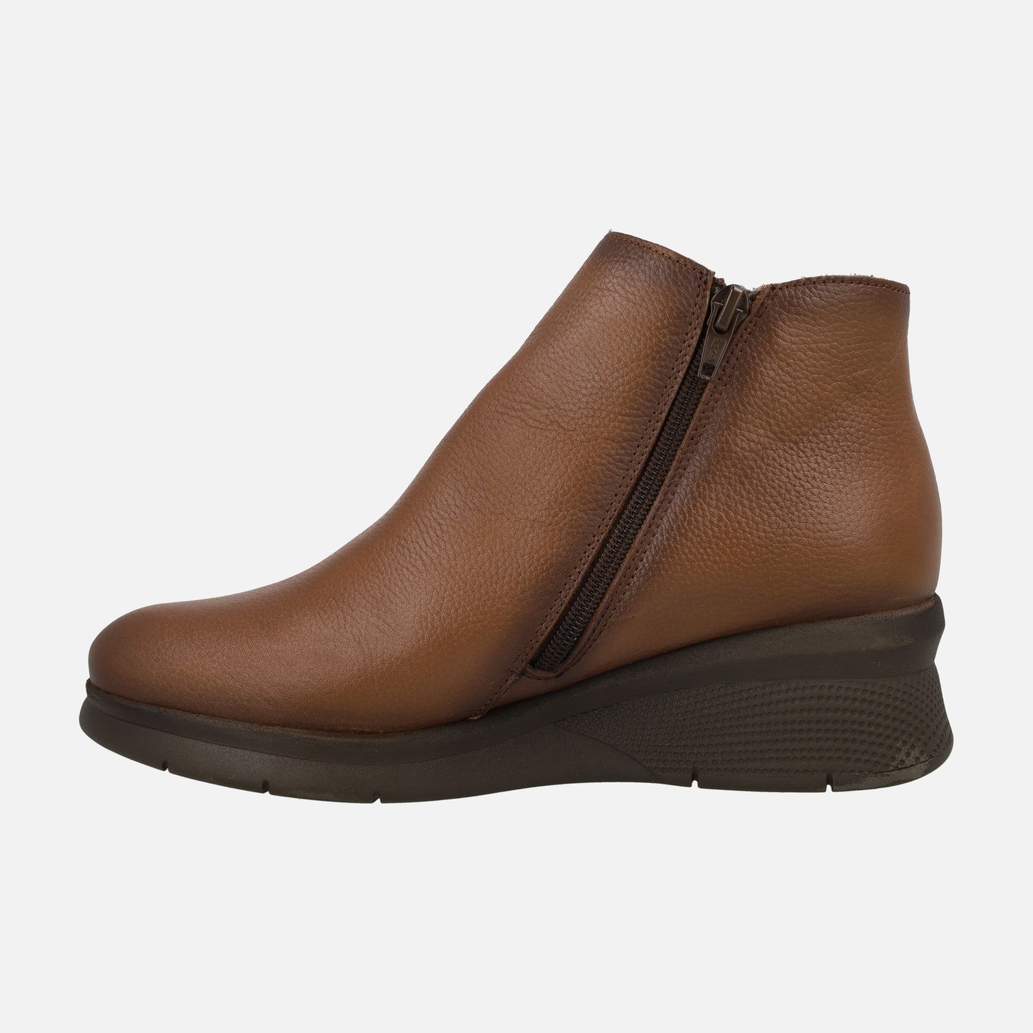 Botines de cuña en piel cuero de Kaola con adorno de botón metálico