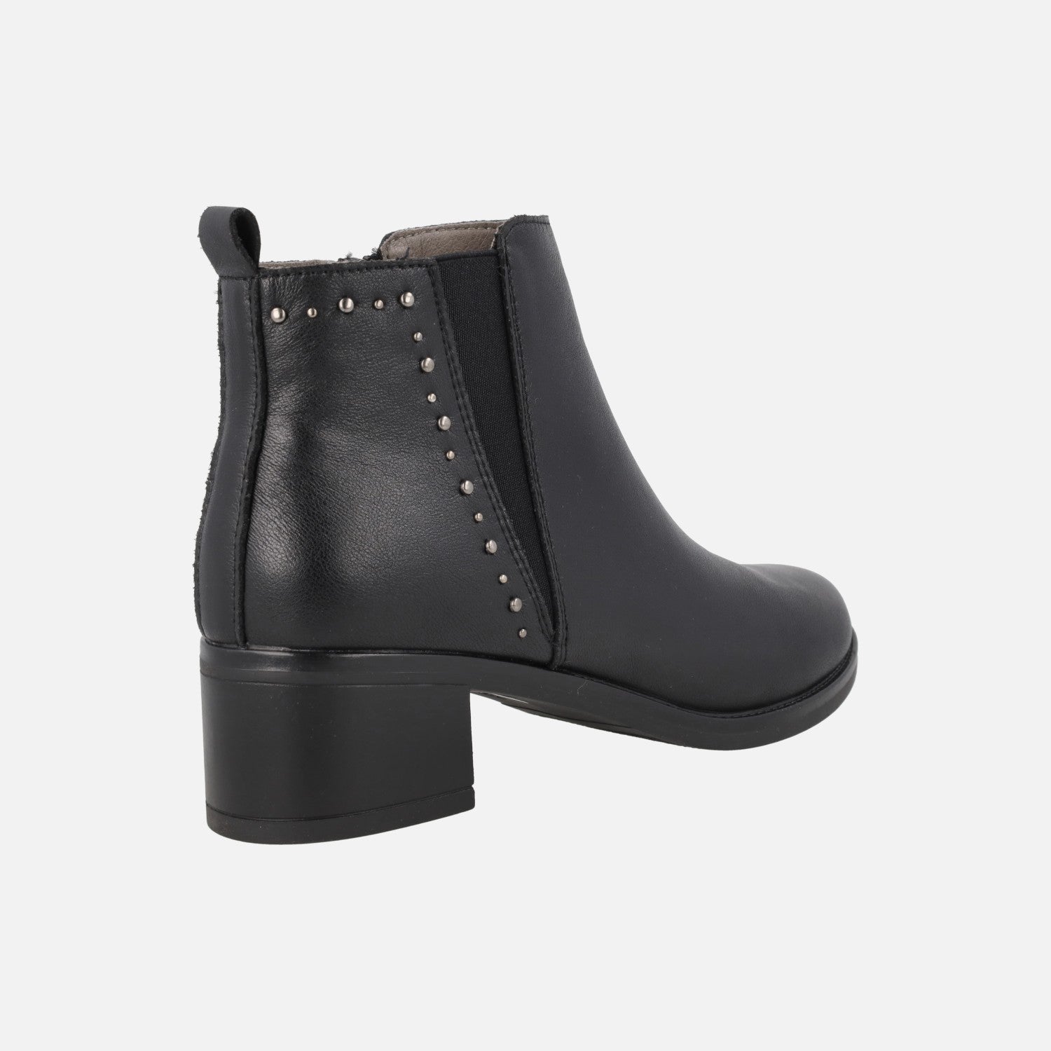 Botines de piel con tacón bajo y adorno de tachas y elástico