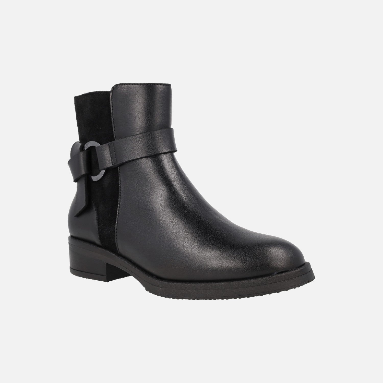 Botines de piel y serraje con adorno metálico