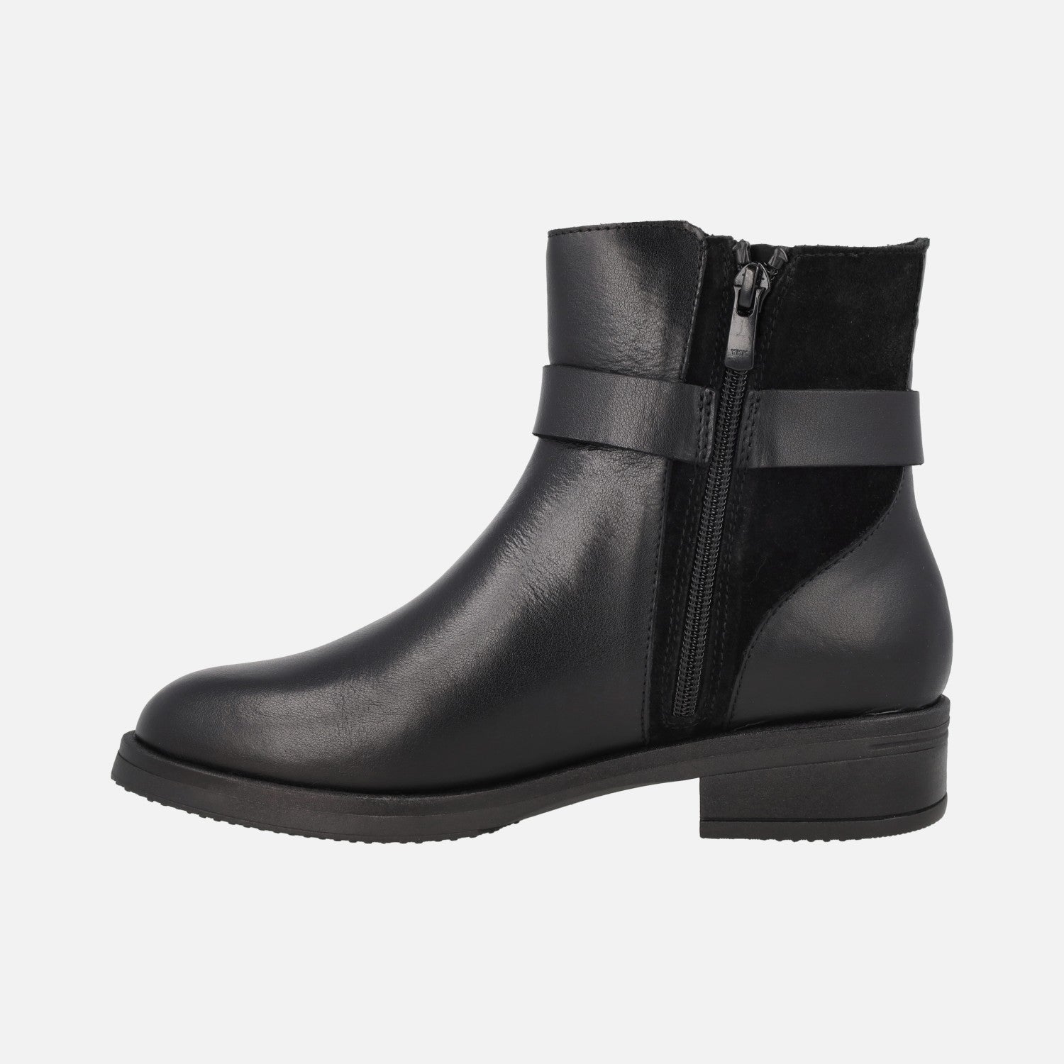 Botines de piel de la marca Viguera modelo 8390, disponibles en negro y en marrón. Botines que combinan piel y serraje, con adorno metálico y nudo de piel. Cierre de cremallera en el lado interior. Forro y planta forrados en tejido. Piso de goma, con 3,5 cm de tacón. Caña de 14 cm.