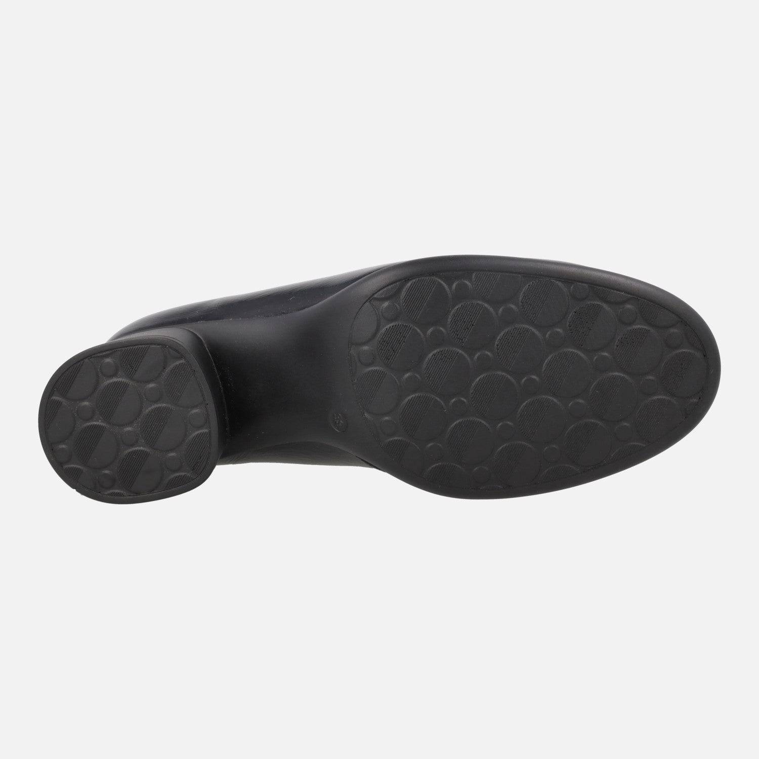 Elegantes botines de cordones para mujer de la marca Jordana, modelo 4389 Negro. Botines de tacón, elaborados en charol negro, con cierre de cordones satinados tipo lazo. Interior mixto en piel y otros materiales, con plantillas forradas de piel. Suela sintética. Tacones de 5,5 cm. Caña de 11,5 cm de altura.
