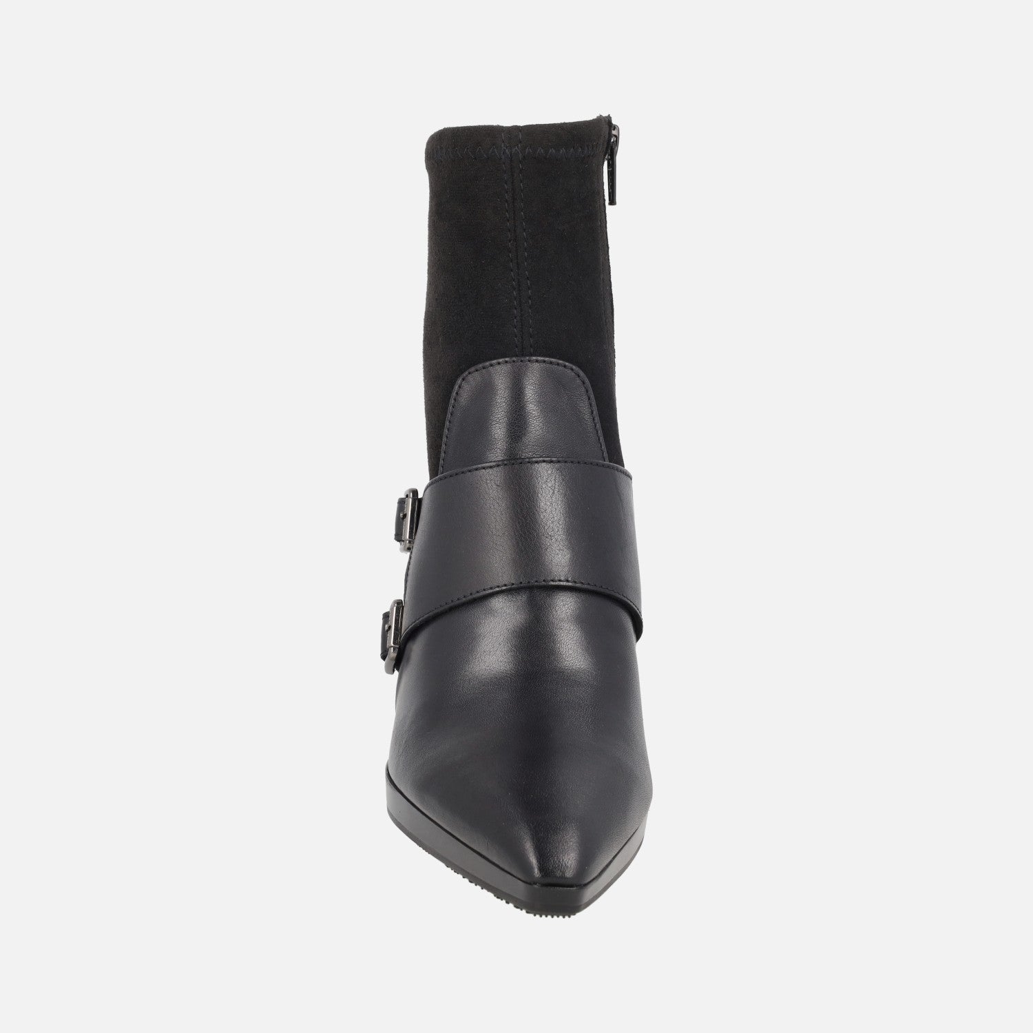 Botines de tacón en combinado de piel y tejido elástico