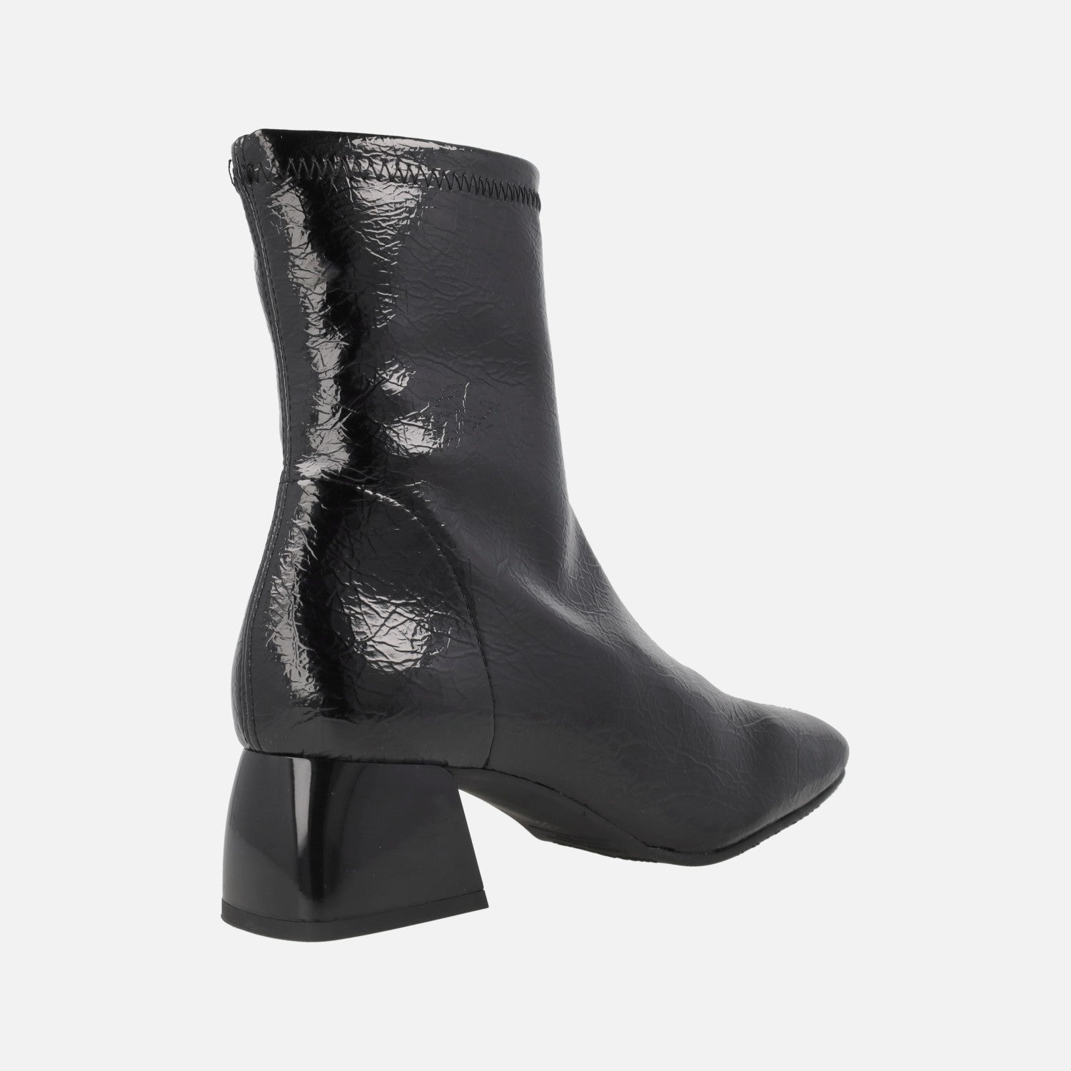 Botines de tejido elástico efecto charol cuarteado con tacón bajo