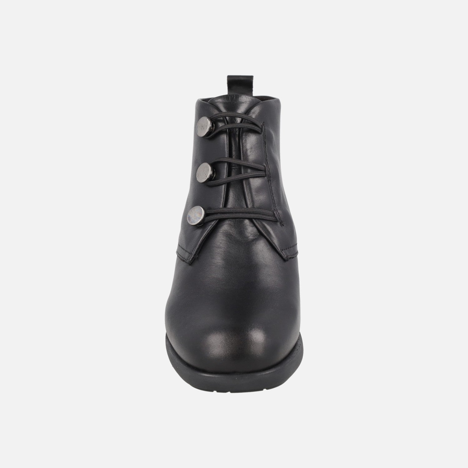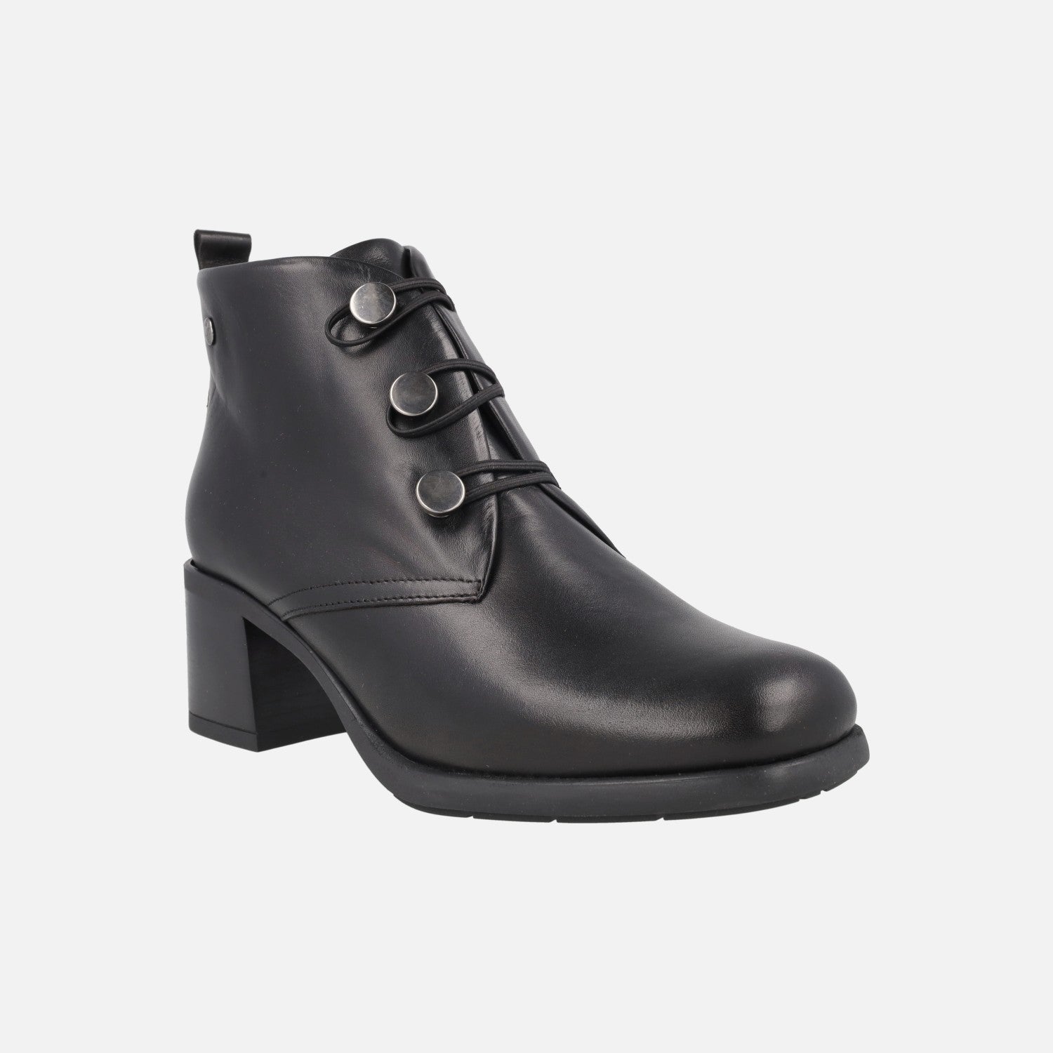 Botines negros de piel en tacón medio con botones metálicos