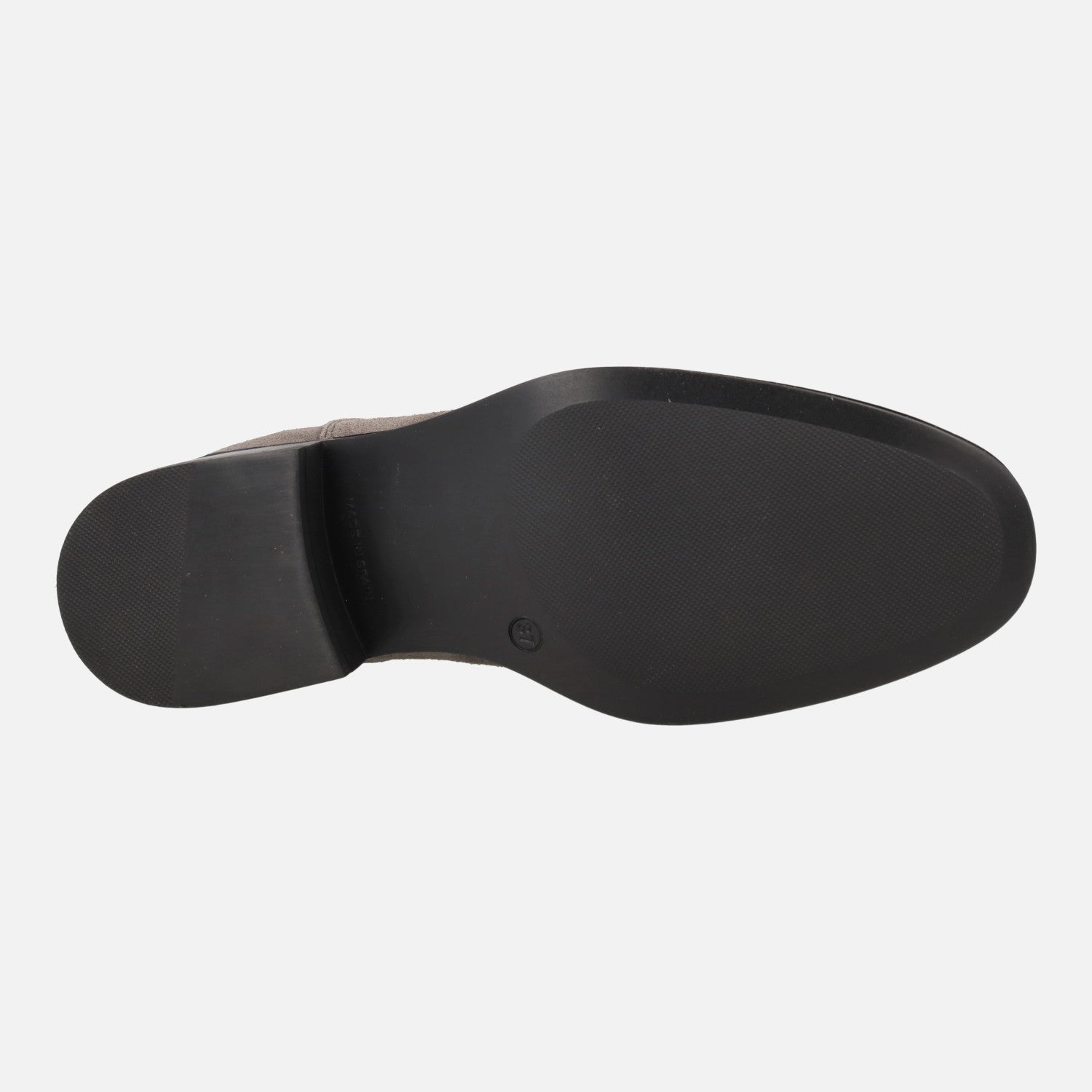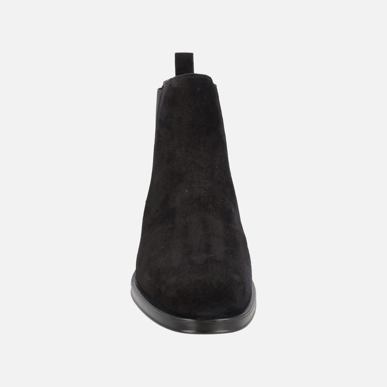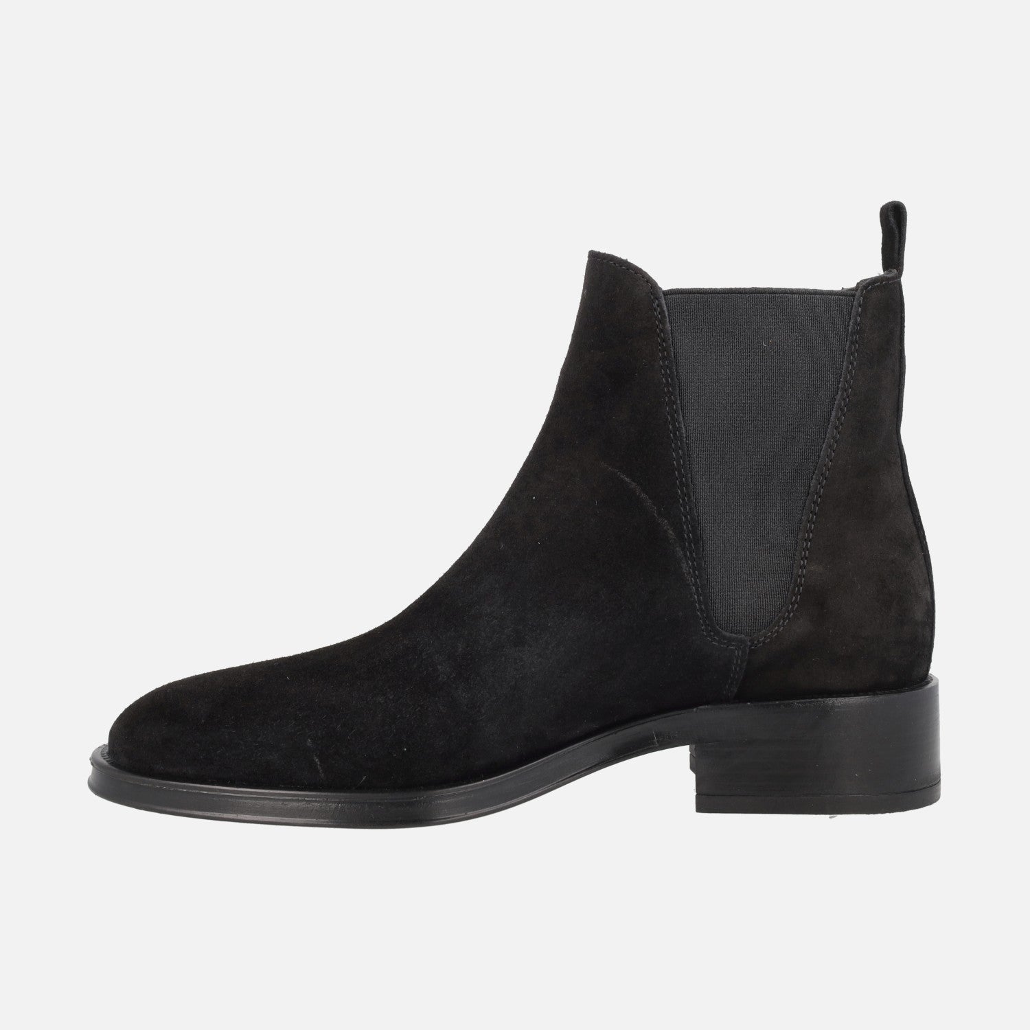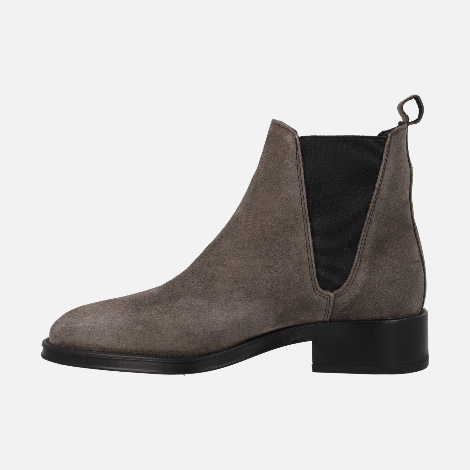 Botines Alpe Couture 2349 en baby silk negro, mustang (marrón oscuro) e imán (color entre marrón y taupe). Elegantes botines elaborados en piel serraje con elásticos laterales, detalle de tirador trasero. Interior textil, con planta textura piel. Piso sintético con tacones de 3,5 cm de altura. Caña de 12 cm. Made in Spain.