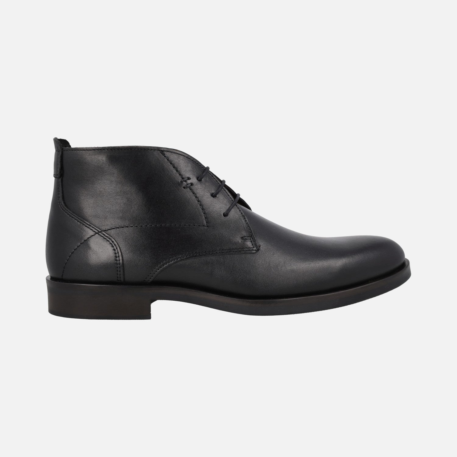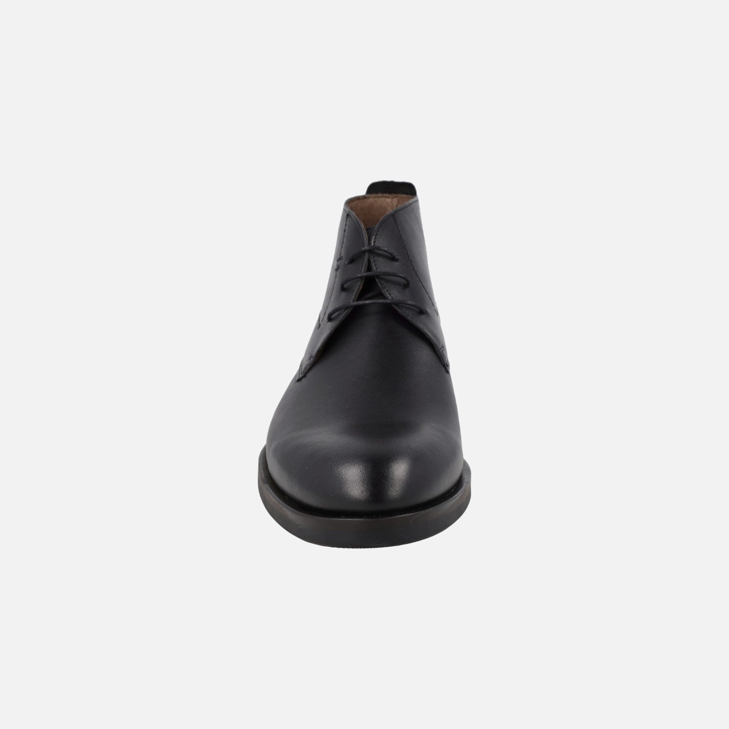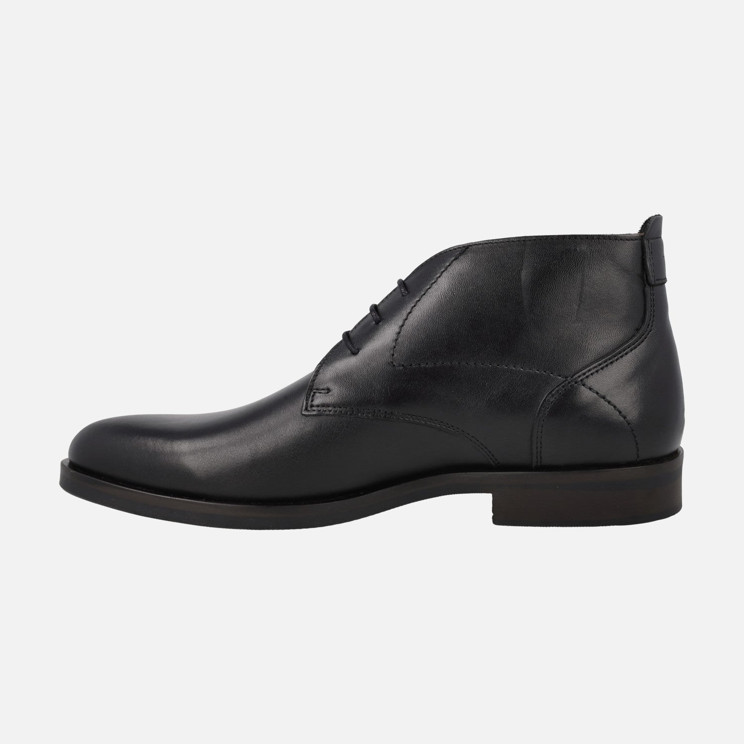 Botines clásicos de cordones para hombre de Help The Trees, 7006. Fabricados en piel negra con cierre de cordones y talonera pespunteada. Interior en piel y tejido y plantillas de piel. Piso de goma.