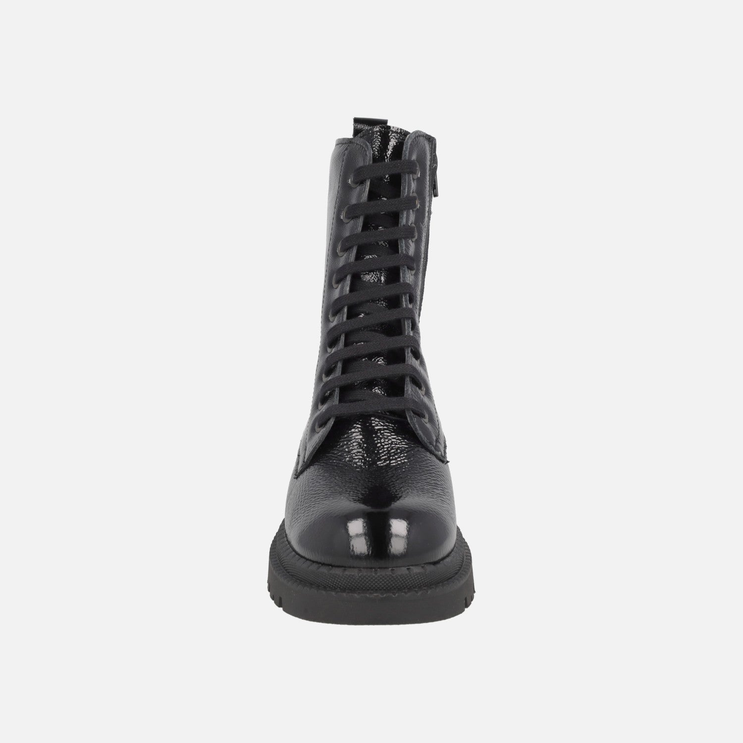Botines negros de charol con cordones y cremallera