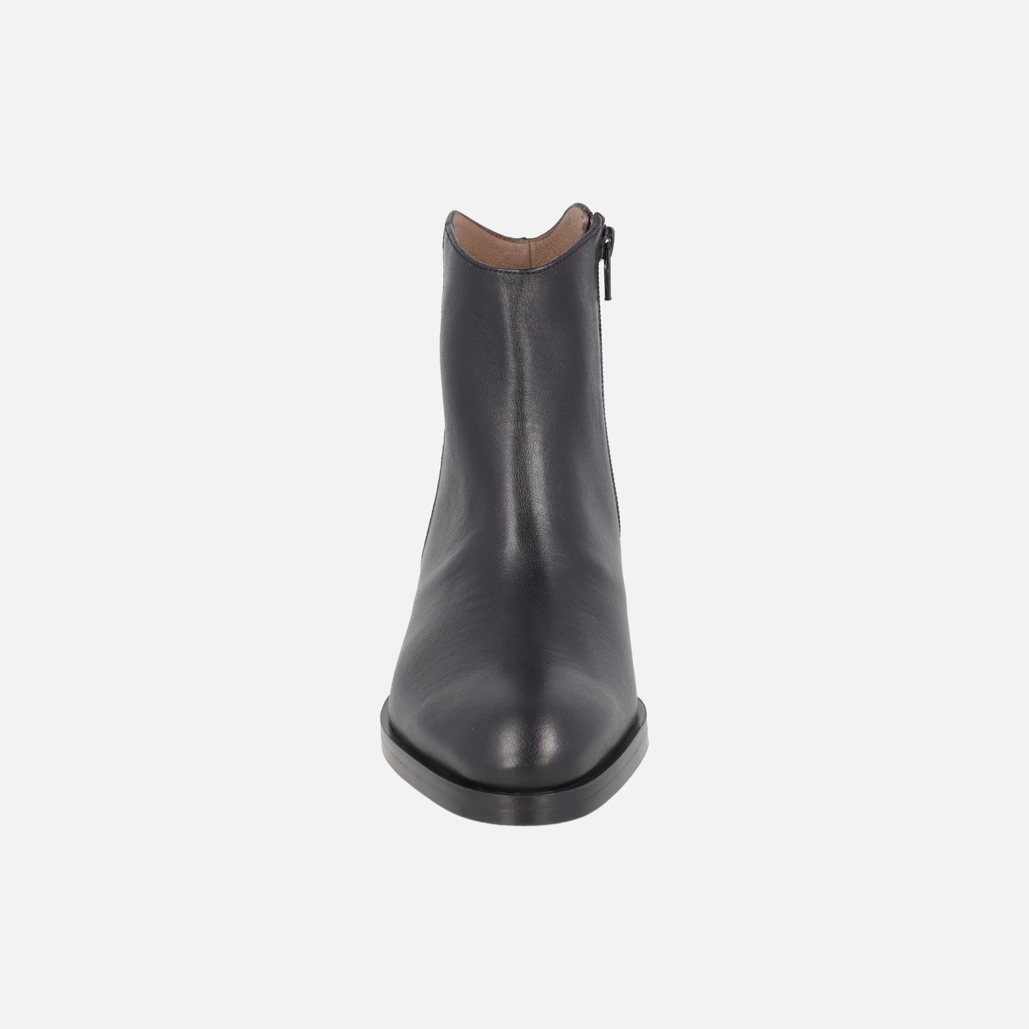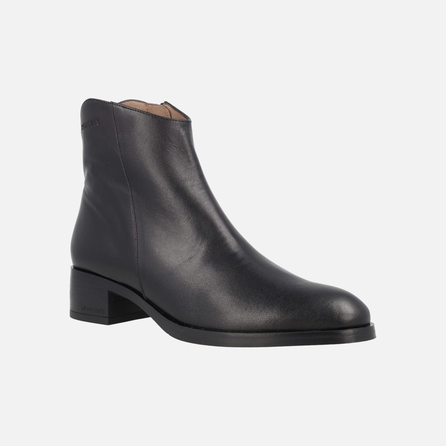 Botines negros de piel marca Wonders modelo Bonjour 01 D-1801 Negro. Botines negros de corte clásico y atemporal, con horma ligeramente redondeada y cremallera en el lado interior. Interior mixto combinando piel y tejido. Caña de 13,5 cm de altura. Piso sintético, con 4 cm de altura de tacón.