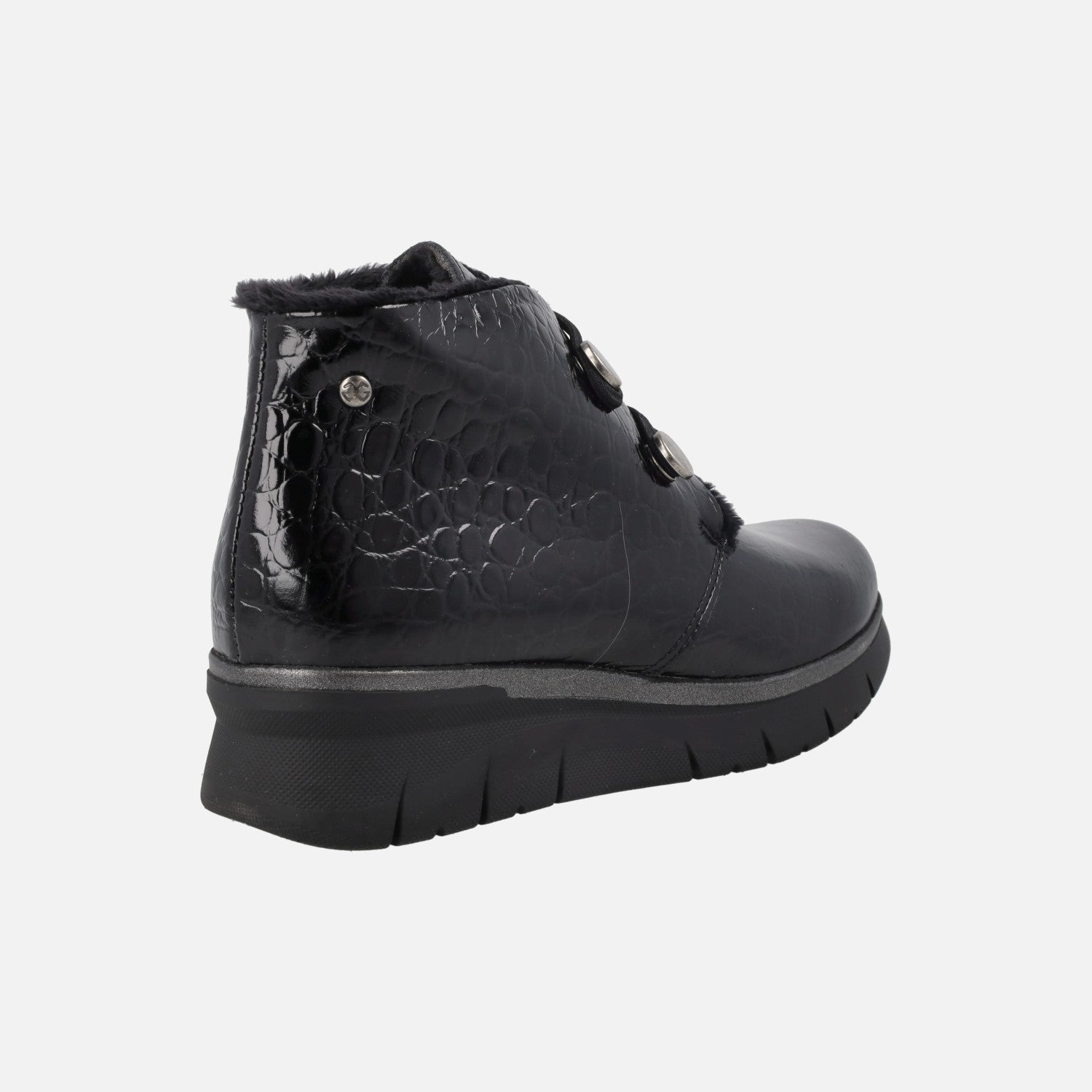 Botines negros en piel grabada coco charol con cierre de botones