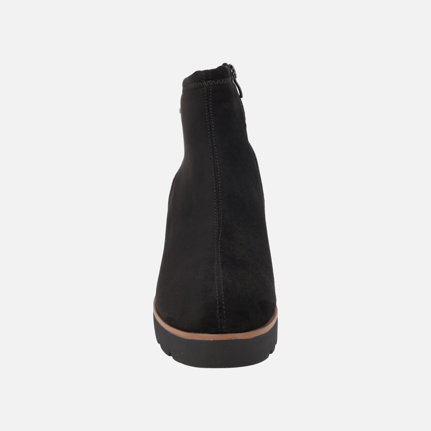 Botines de cuña para mujer de la marca Calzazul, modelo 9040 M Negro o Taupe. Botines waterproof elaborados en tejido con cierre de cremallera en el lado interior. Interior textil con plantillas extraíbles. Caña de 10 cm de altura. Membrana interior resistente al agua. Piso sintético ultraligero de 7,5 cm en la parte trasera (2,5 cm parte delantera).