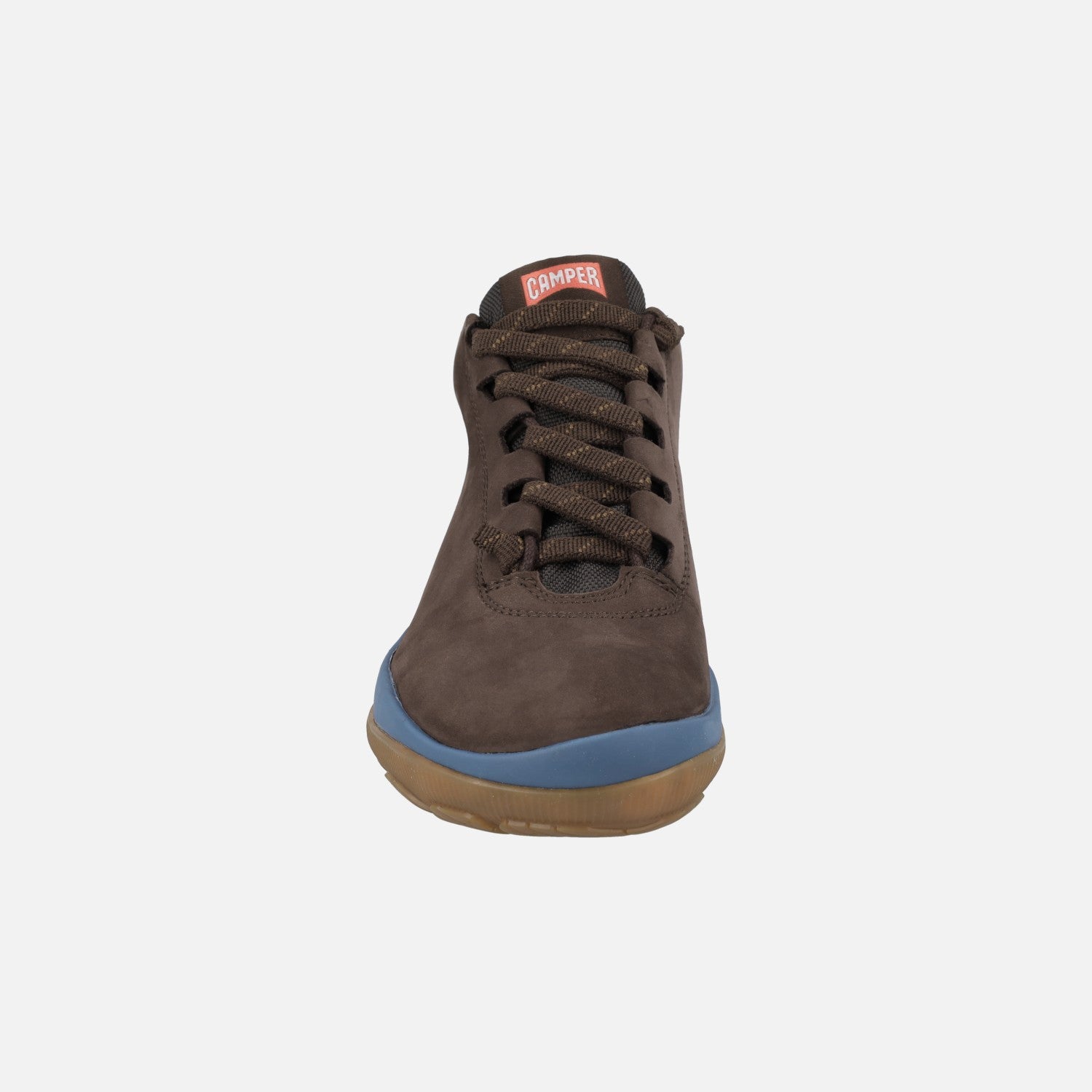 Botines deportivos para mujer Camper Peu Pista K400481. Botines de estilo deportivo, elaborados en piel nobuck marrón, con cordones elásticos y membrana interior de GORE TEX impermeable, totalmente resistente al agua. Plantillas Ortholite extraíbles, para una gran amortiguación. Forro textil. Piso de goma Michelín de gran agarre y resistencia. Detalle de tirador trasero para facilitar el calce. Caña de 7 cm de altura. Suela con 3 cm de altura trasera (2,5 cm parte delantera).