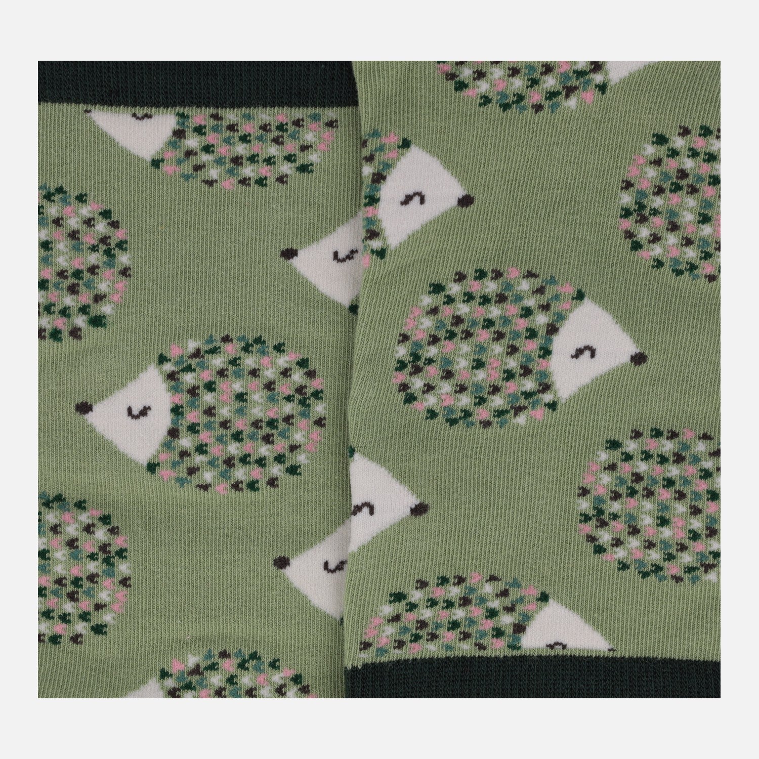 Elegantes calcetines para mujer de la marca Noco, elaborados en tejido antibacteriano, sin costuras y con diseño de erizos. Talla única.