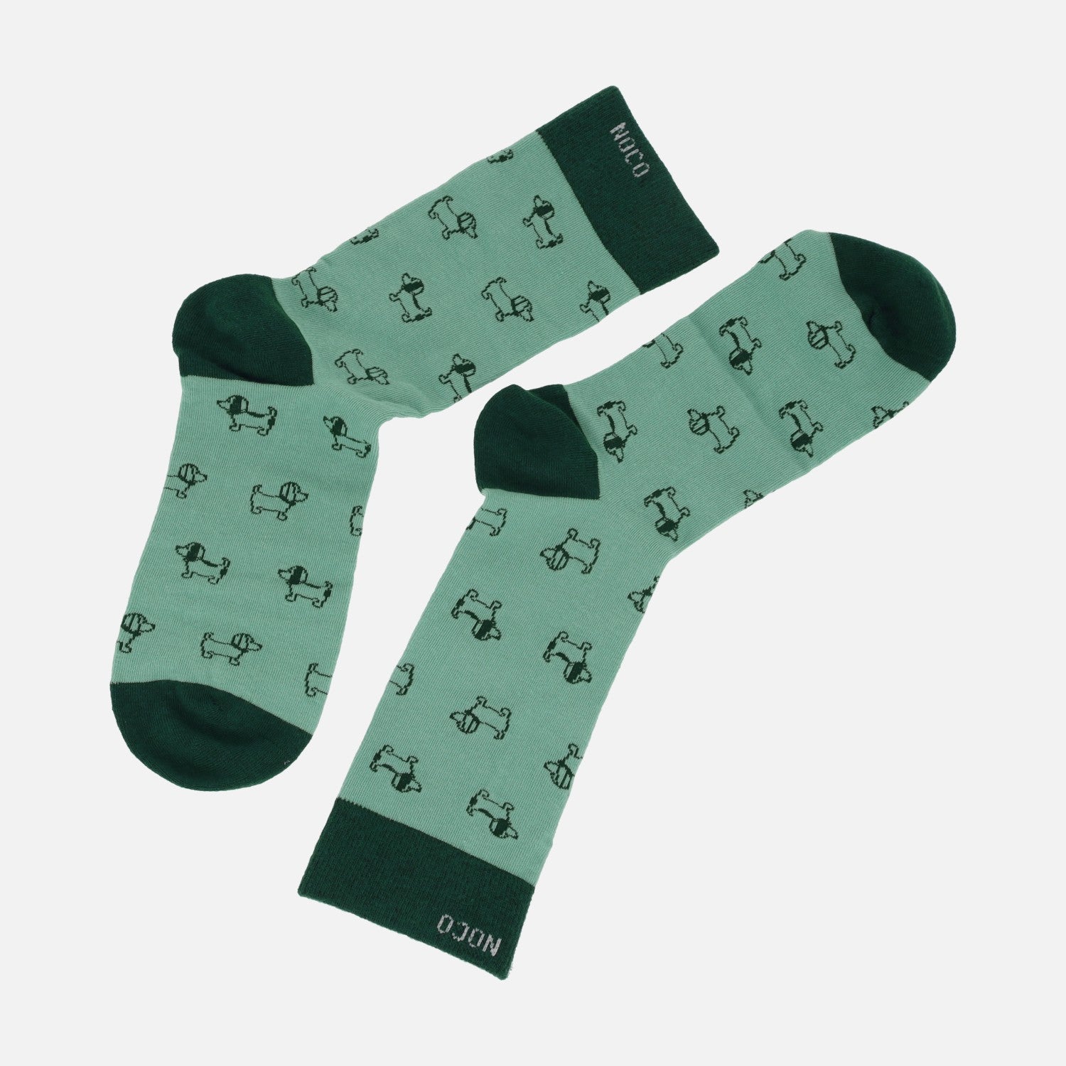 Elegantes calcetines para mujer de la marca Noco, elaborados en tejido antibacteriano, sin costuras y con diseño de perritos. Talla única.