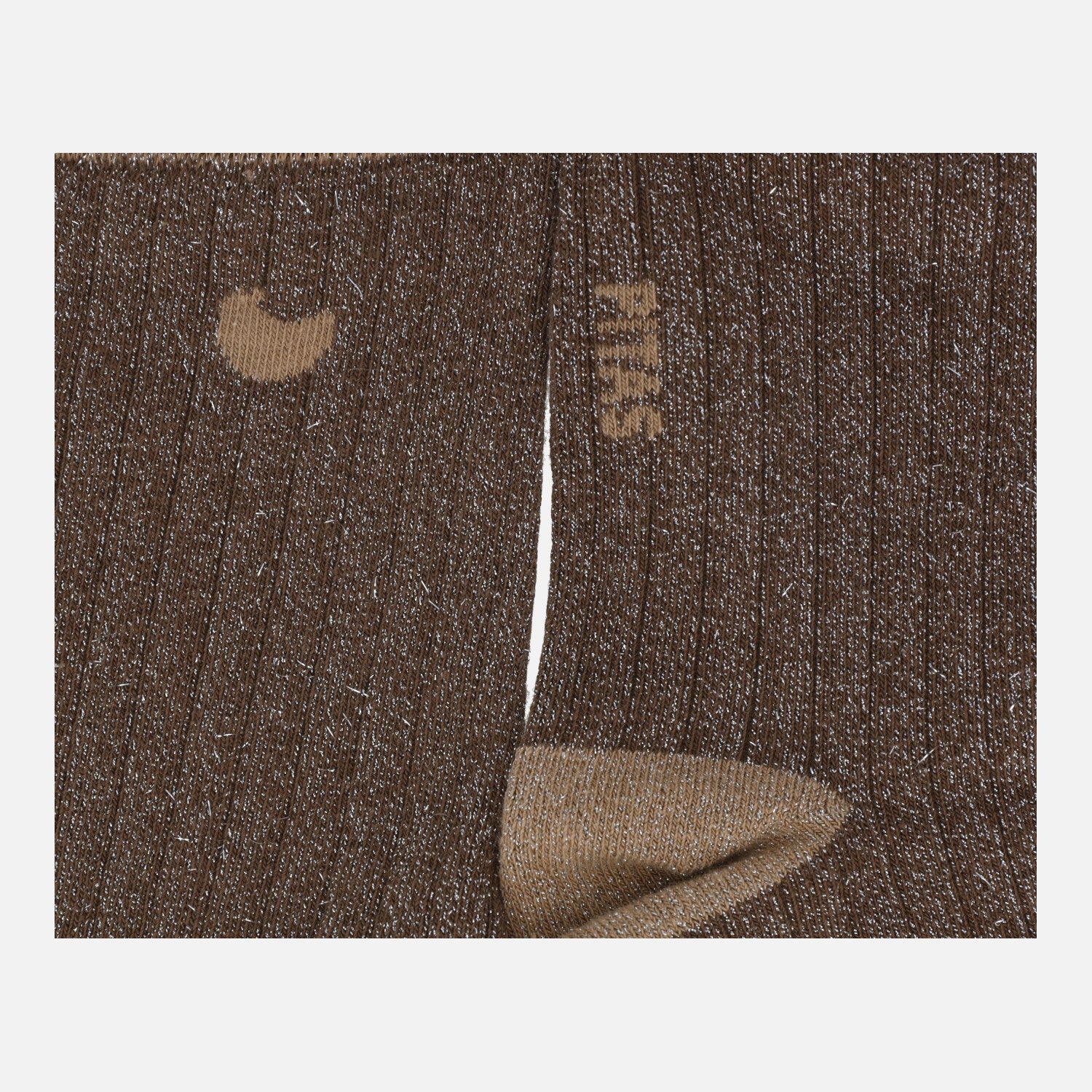 Elegantes calcetines para mujer de la marca Walk in pitas, modelo W25M Brillo metálico. Calcetines de la talla 36 a la 41 (talla única), disponibles en brillo rosa, verde o marrón. Composición: 70% algodón, 17 % poliamida , 10% fibra metálica y 3% elastano.
