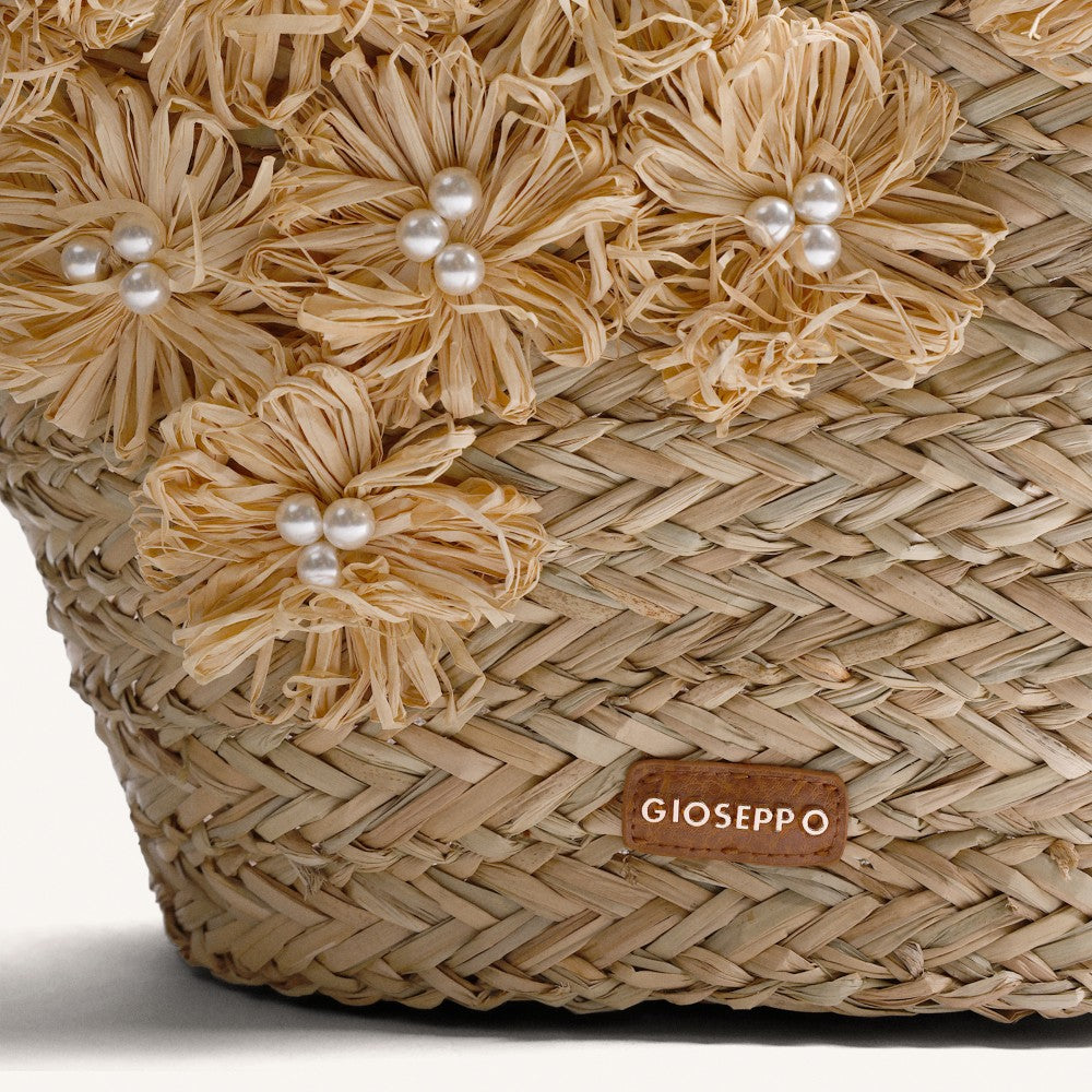 Cesto capazo de rafia con detalle de flores Roseau