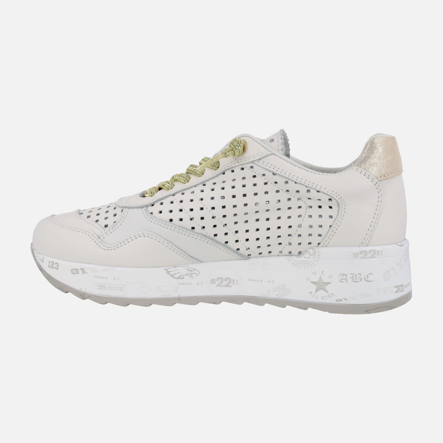 Deportivas de piel con detalle de picados y cordones elásticos dorados