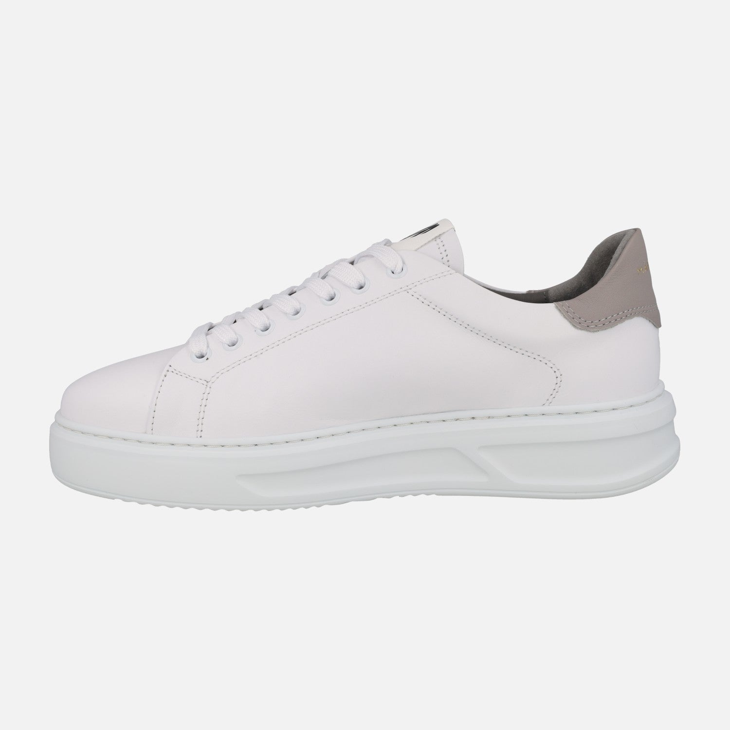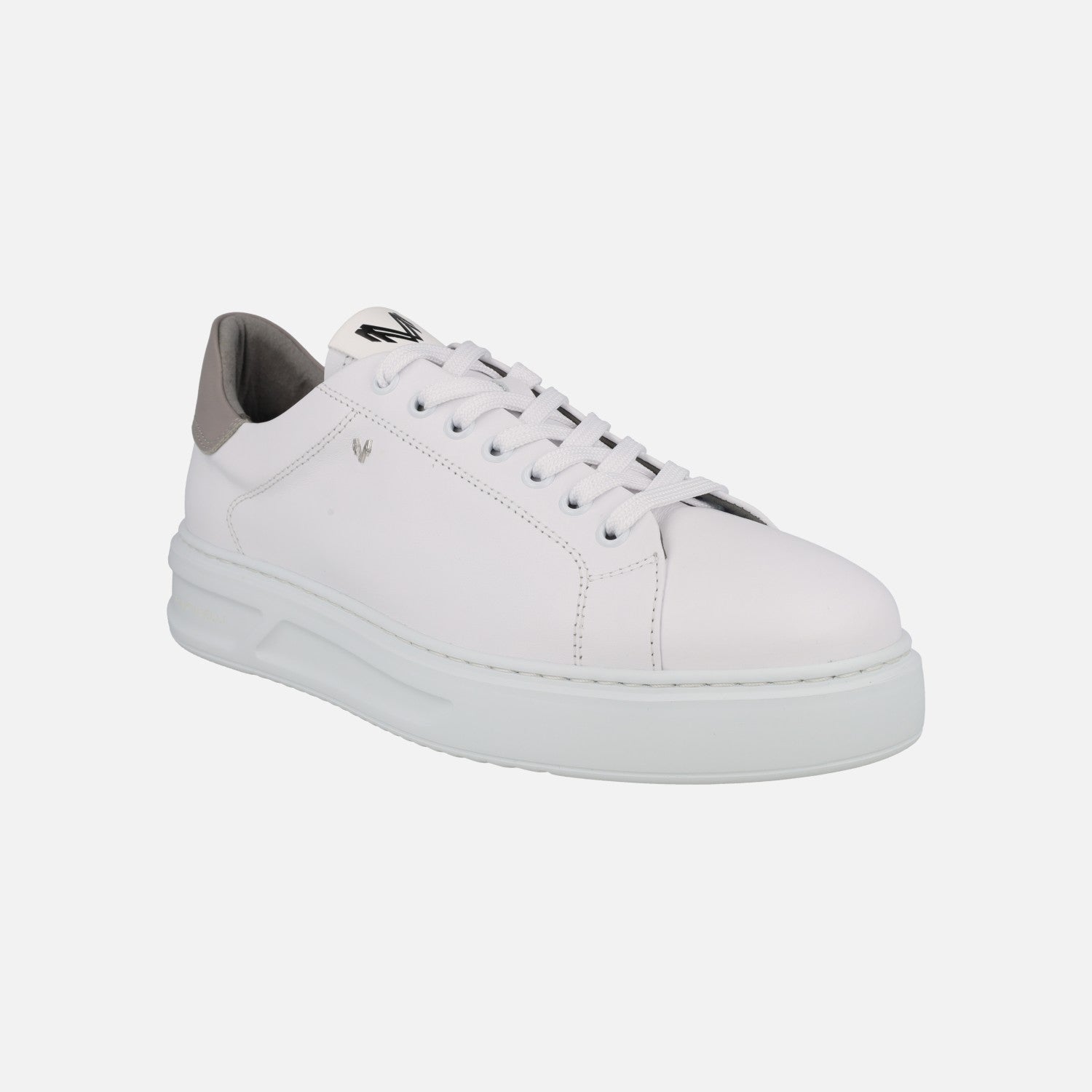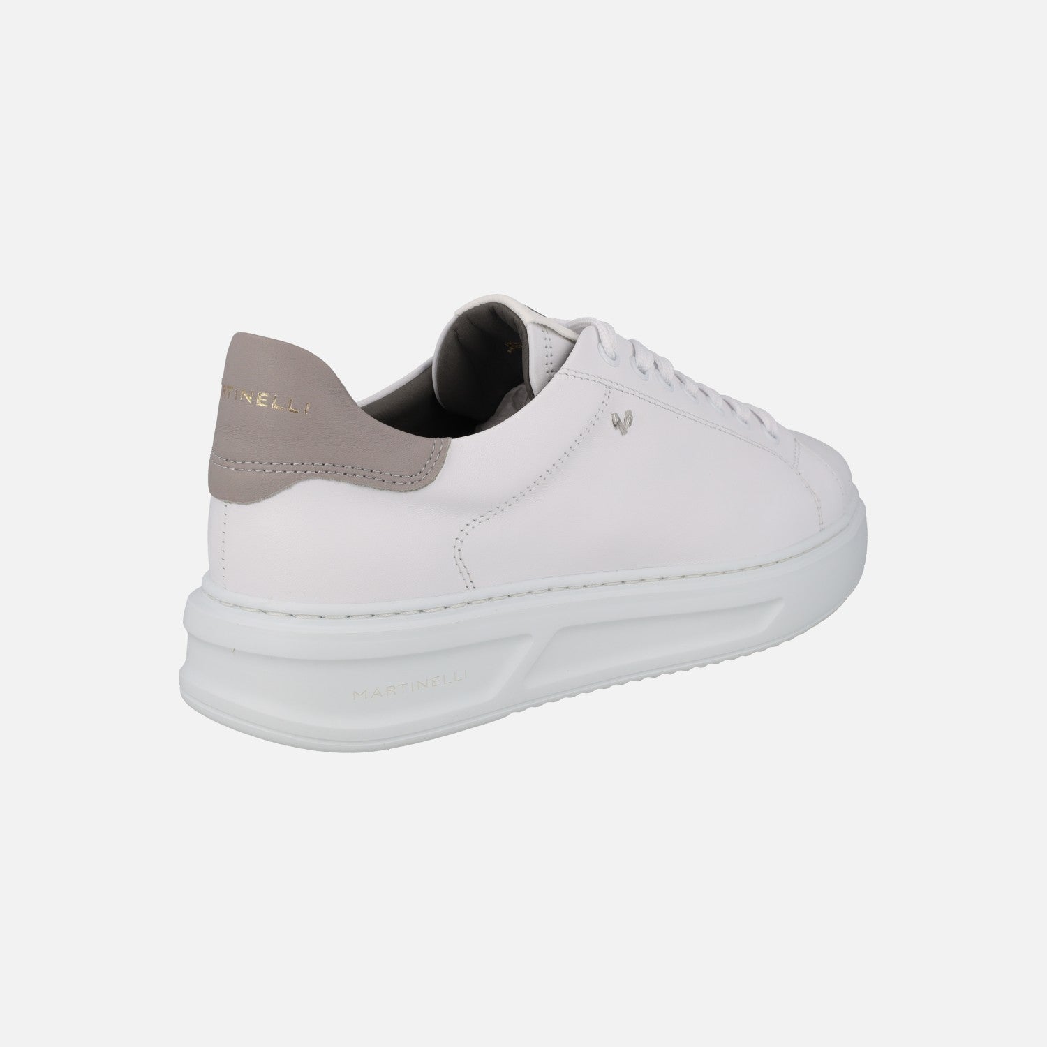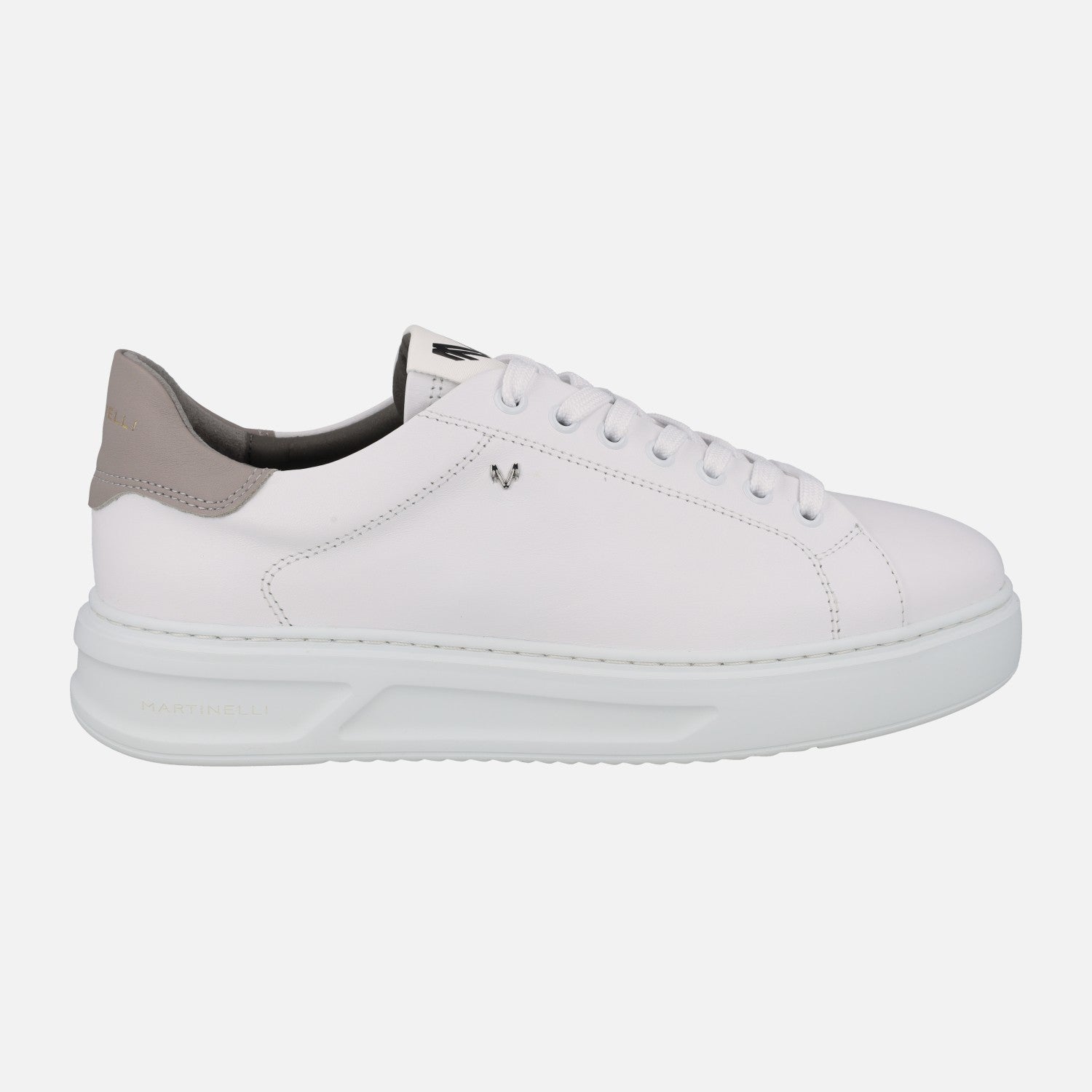 Elegantes zapatos deportivos para hombre de la marca Martinelli modelo Sullivan Blanco 1736-2911U. Sneakers con piso grueso, elaboradas en piel blanca con cierre de cordones textiles. Interiores en combinado de tejido y materiales sintéticos. Suela gruesa, de 3,5 cm, ligera y sintética.