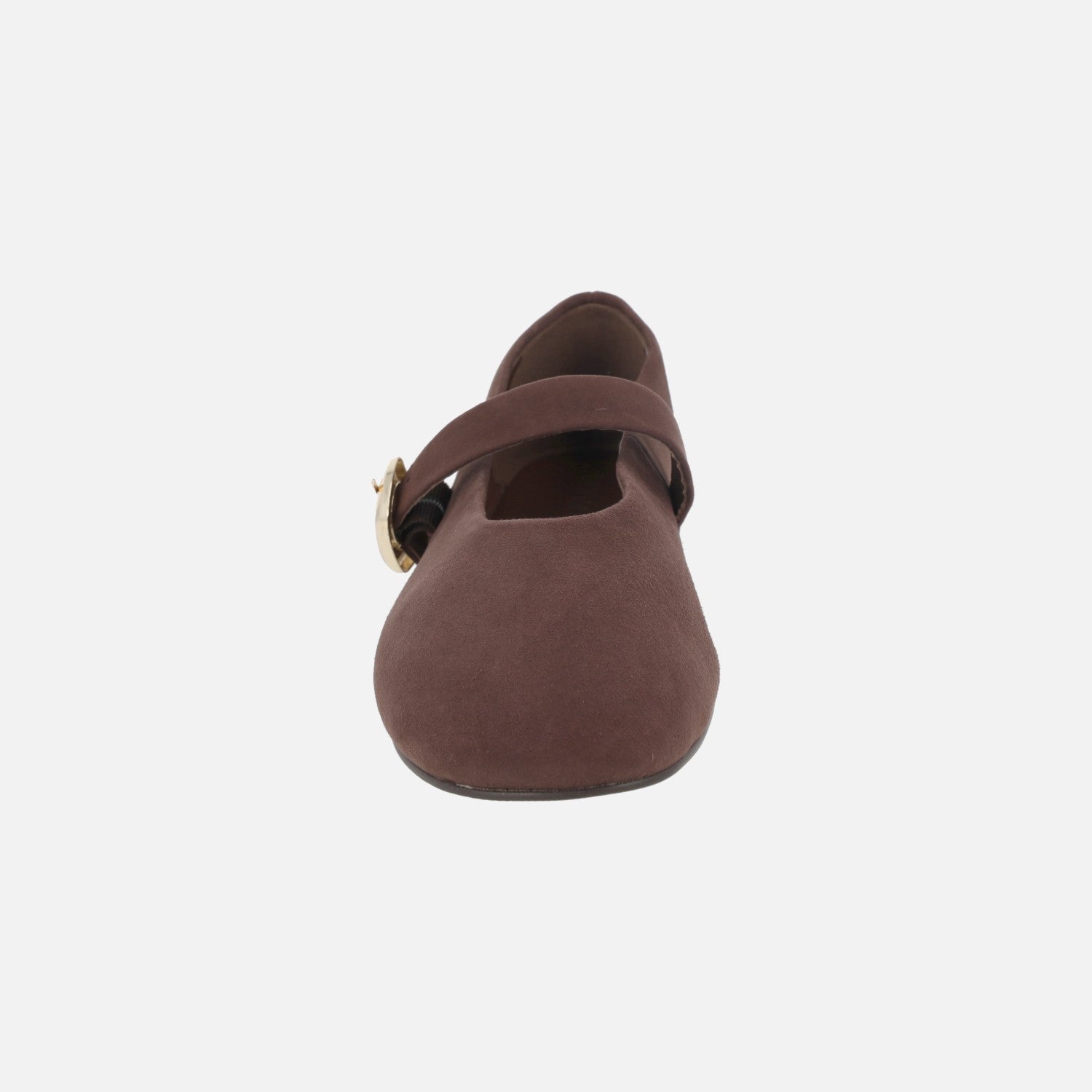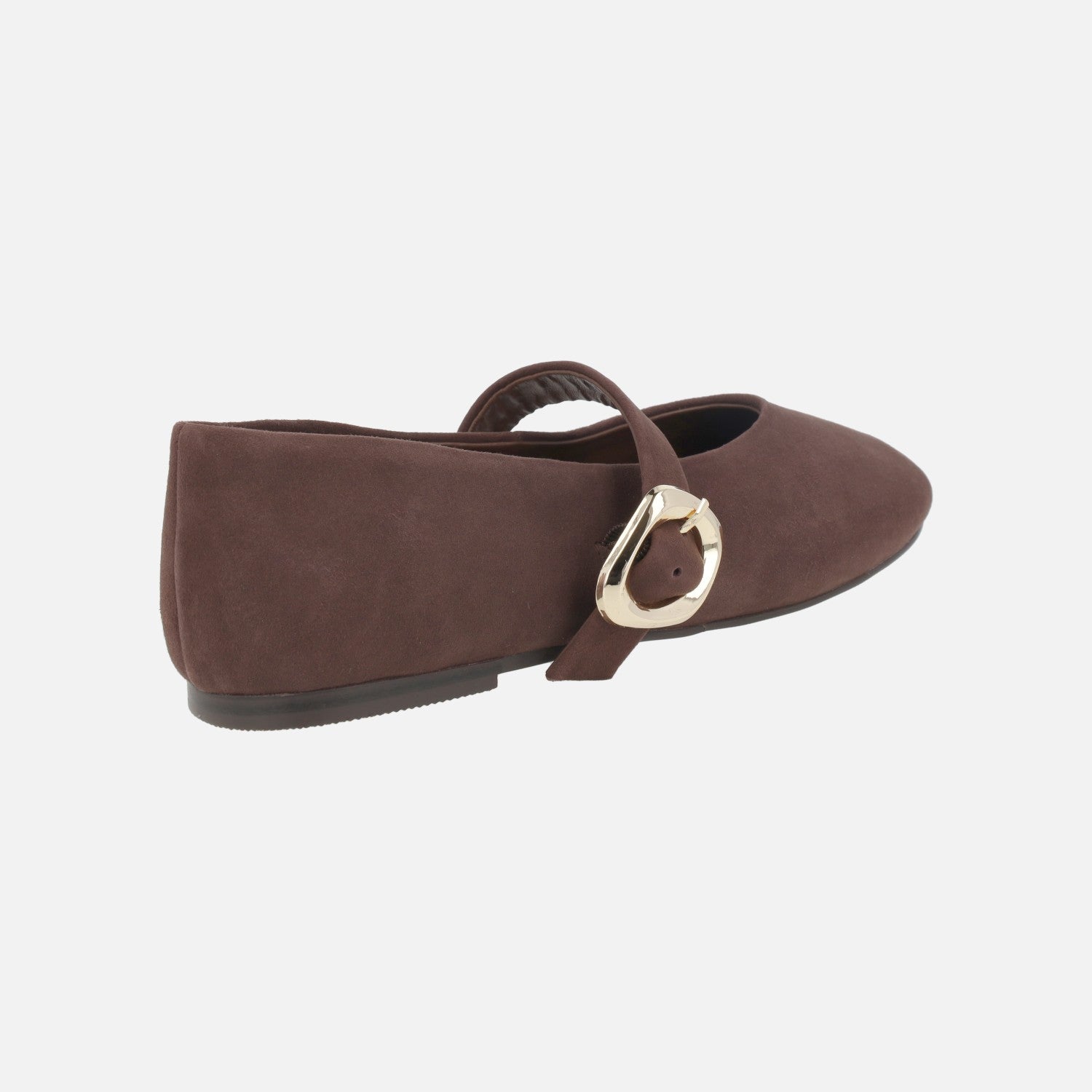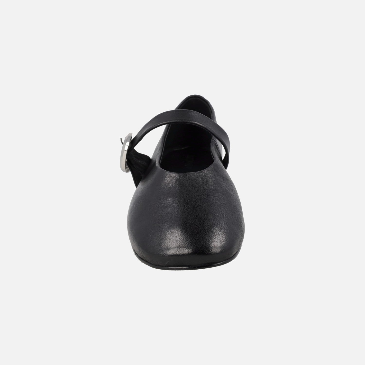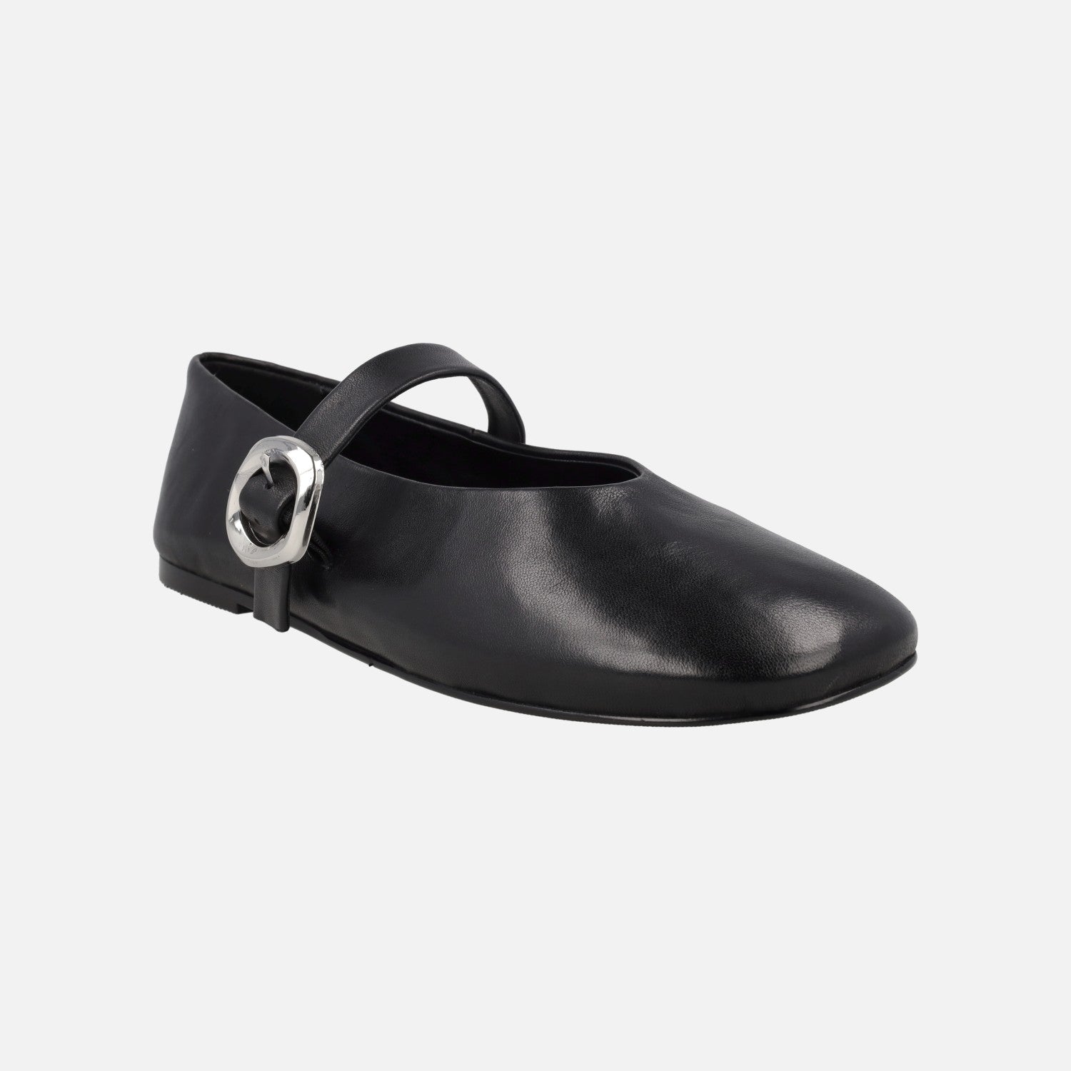 Merceditas plano para mujer de la marca Whynn, modelo Atenas. La pulsera lleva una hebilla plateada a modo de cierre. El forro y plantillas son de piel y el piso sintético. Disponibles en Napa negra y en Ante Burdeos Oscuro (amarronado). Tipo de zapato muy versátil y cómodo que se va adaptando a cada tendencia.