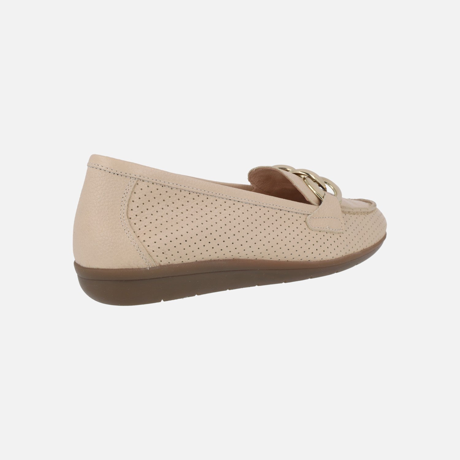 Mocasines confort de piel con picados y adorno de eslabones