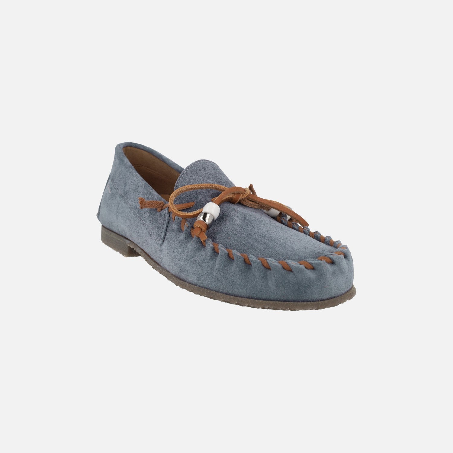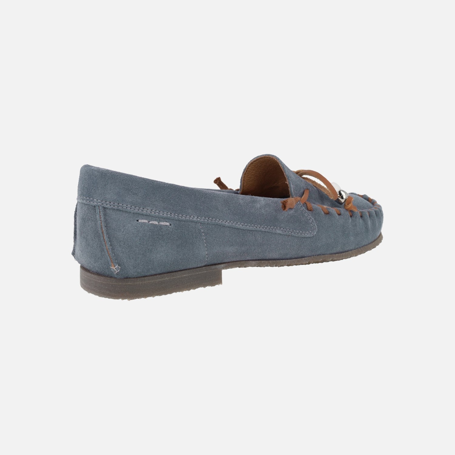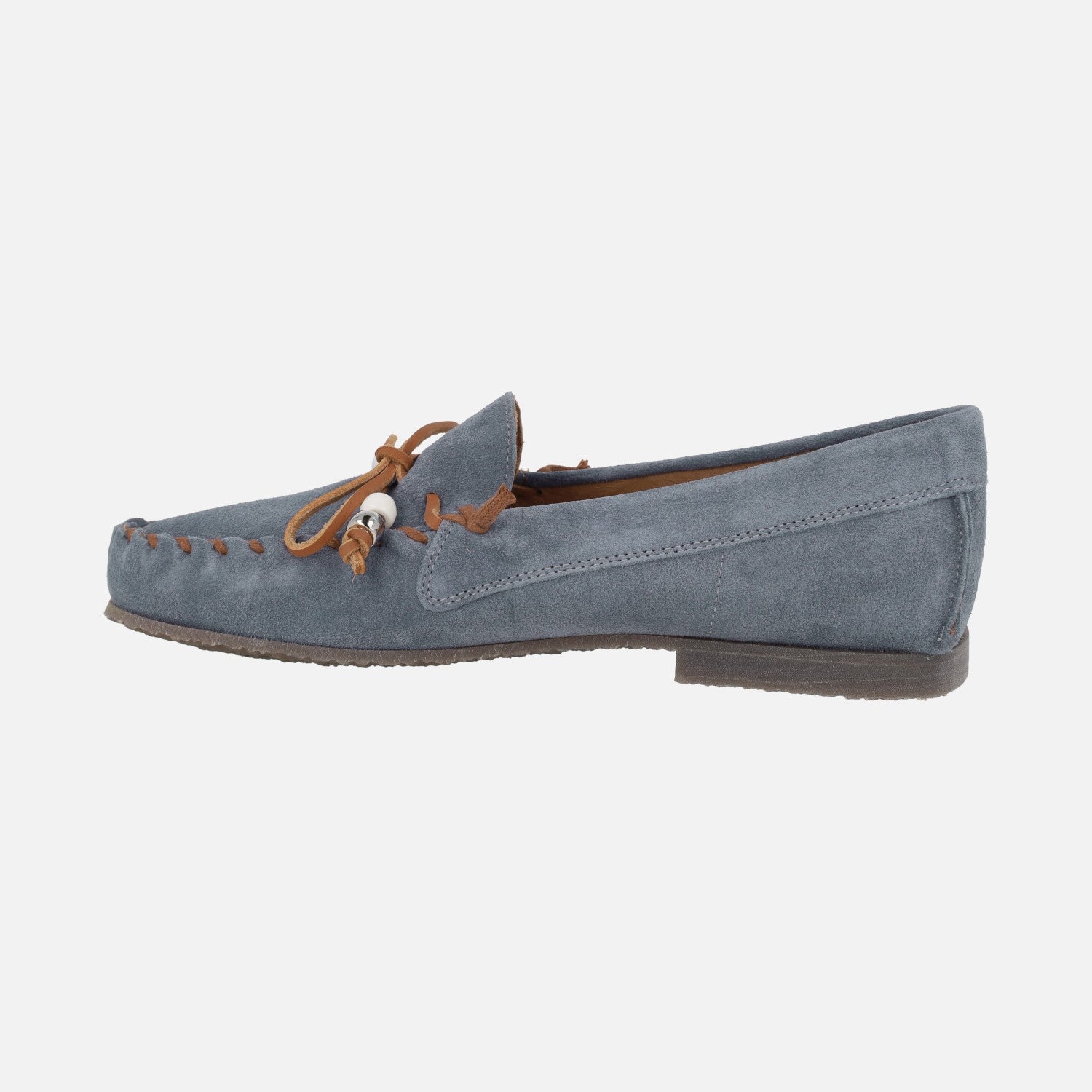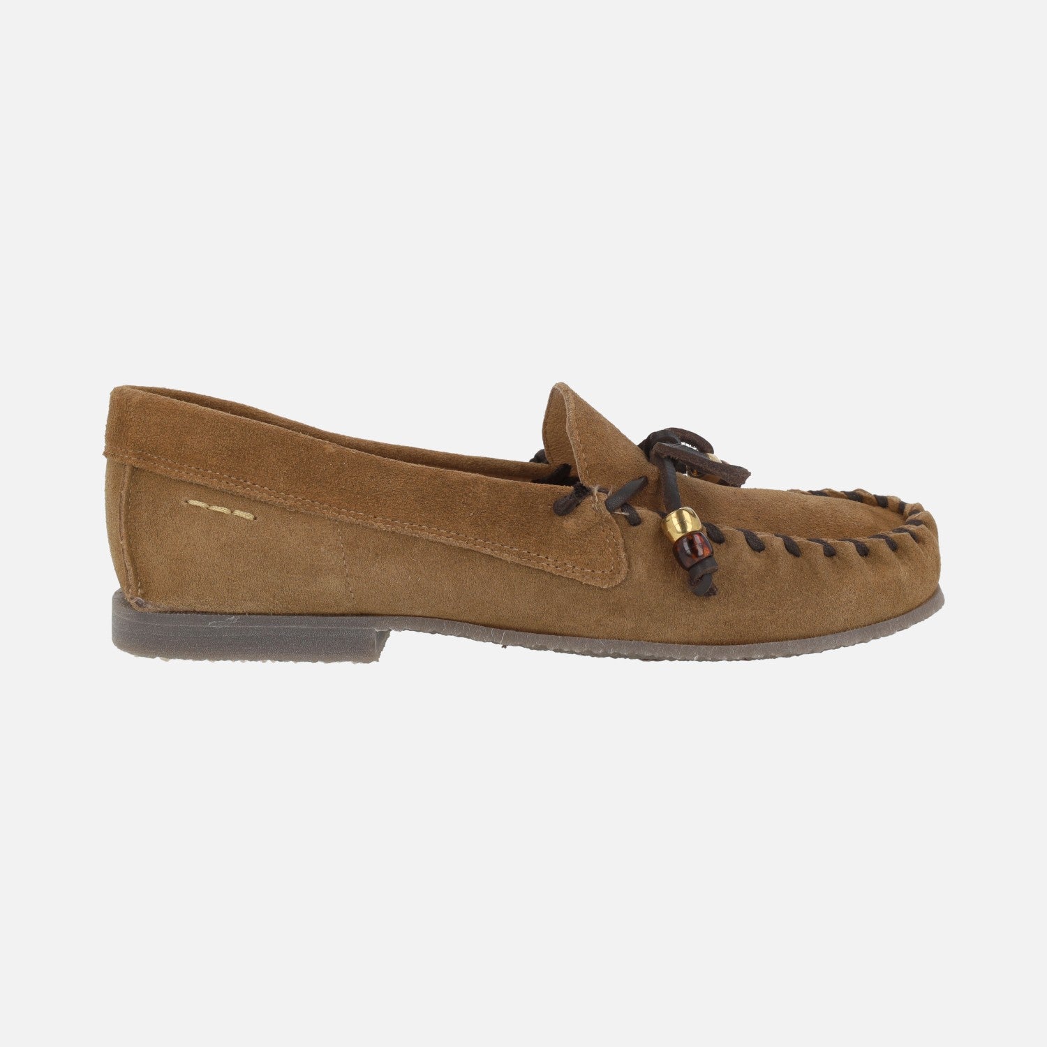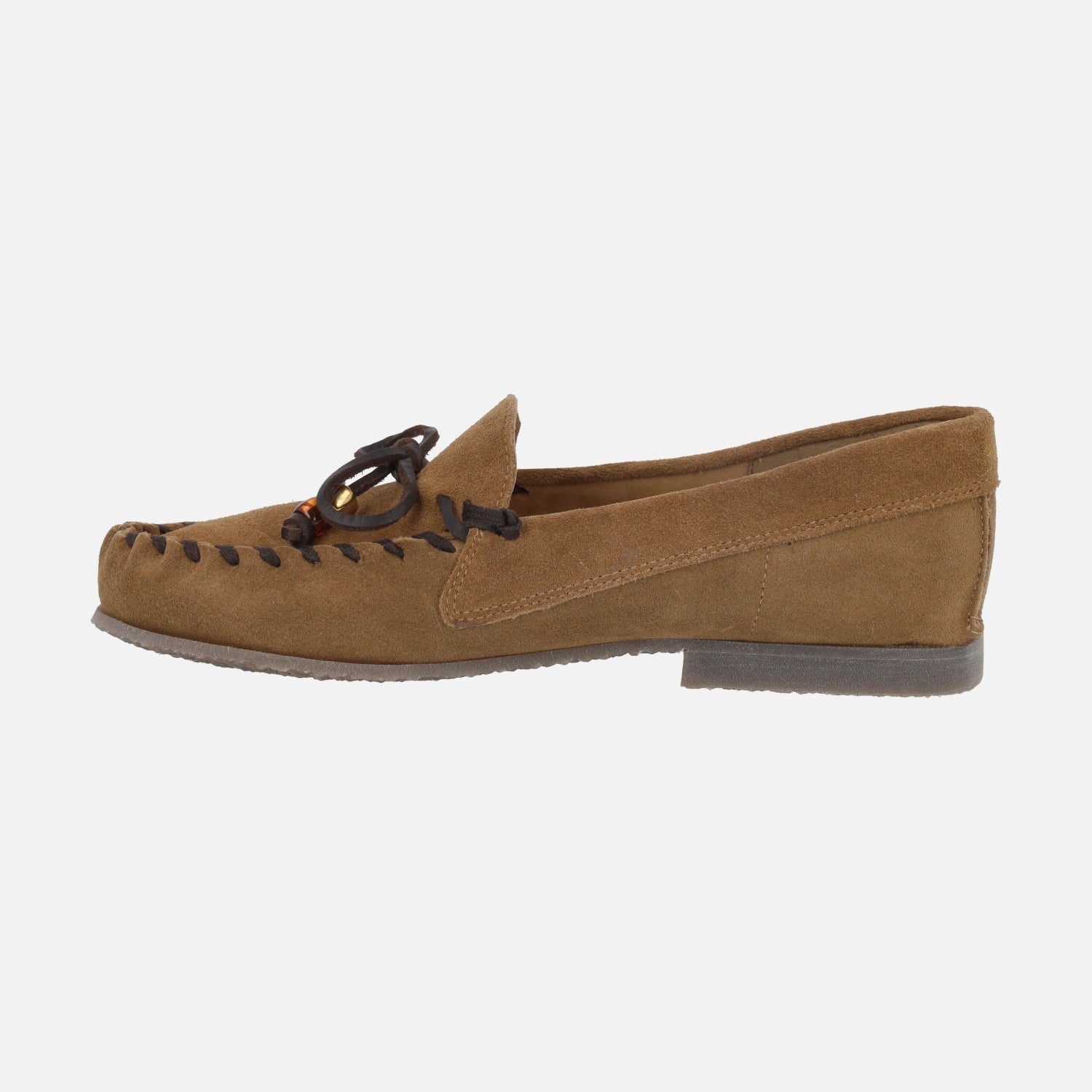 Mocasines de ante para mujer con detalle de lazo y pespuntes