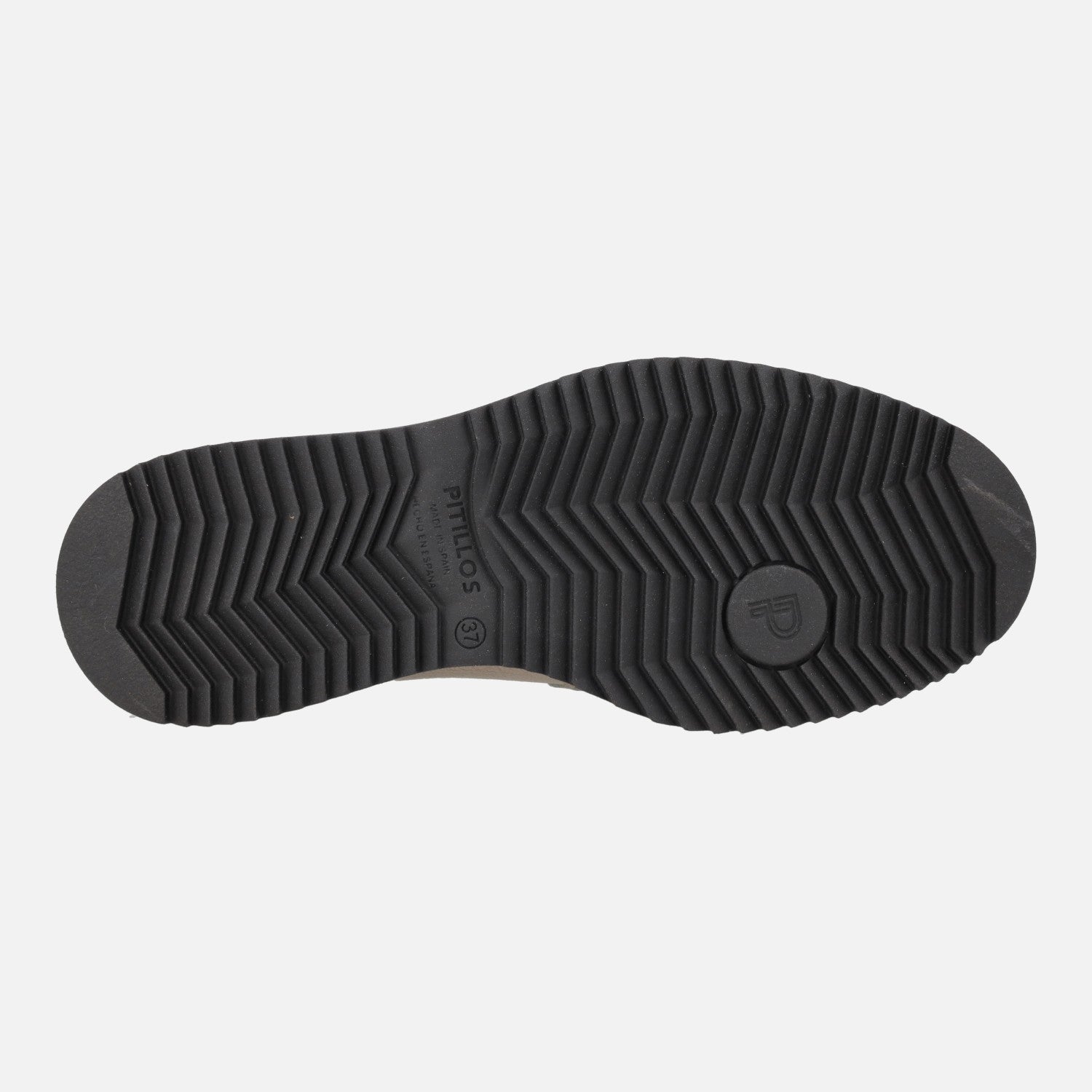 Mocasines confort para mujer de la marca española Pitillos modelo 10760 Piedra. Mocasines de charol en color beige, con adorno metálico dorado en la pala. Interior textil, plantillas extraíbles. Piso de goma de 3,5 cm de altura trasera (2 cm parte delantera).