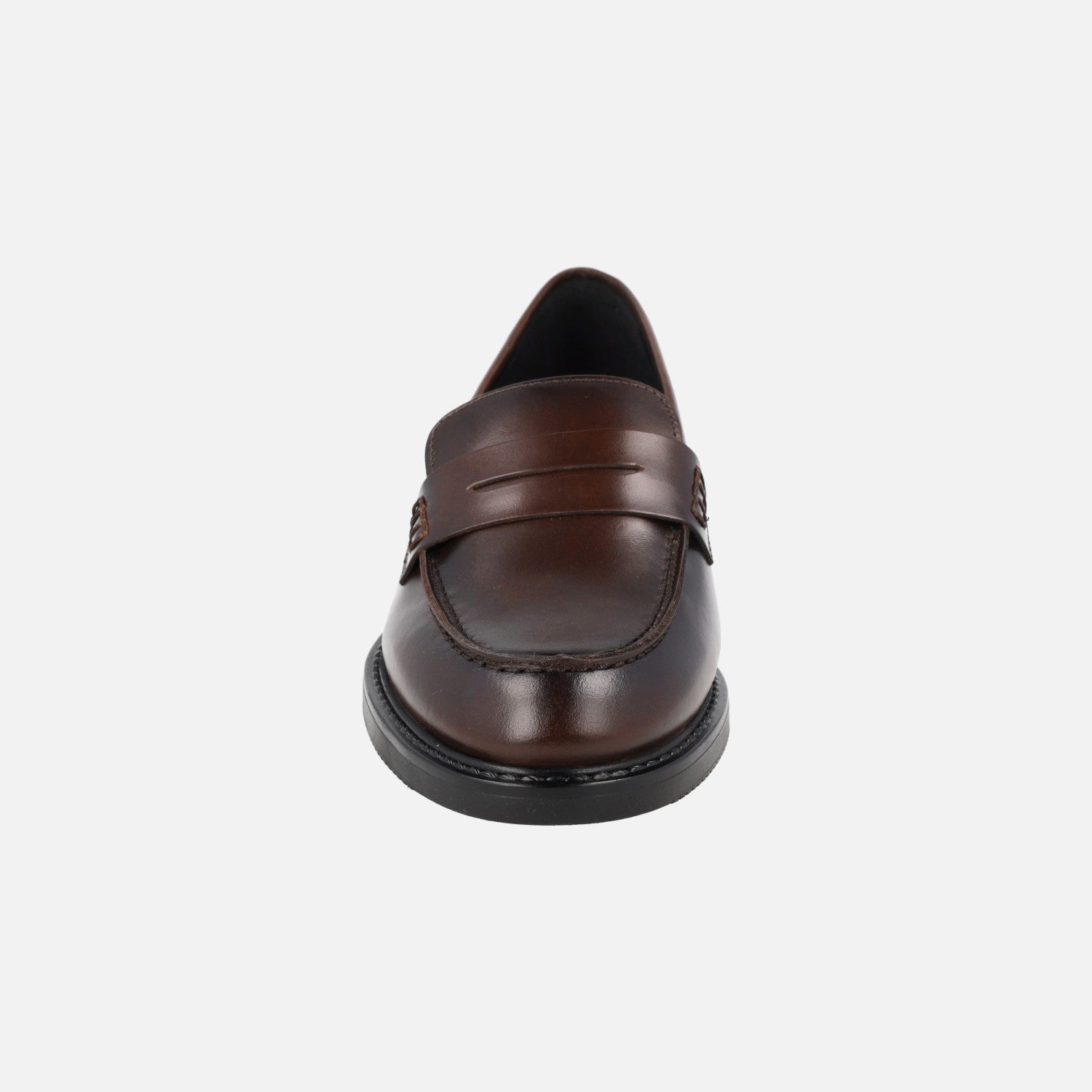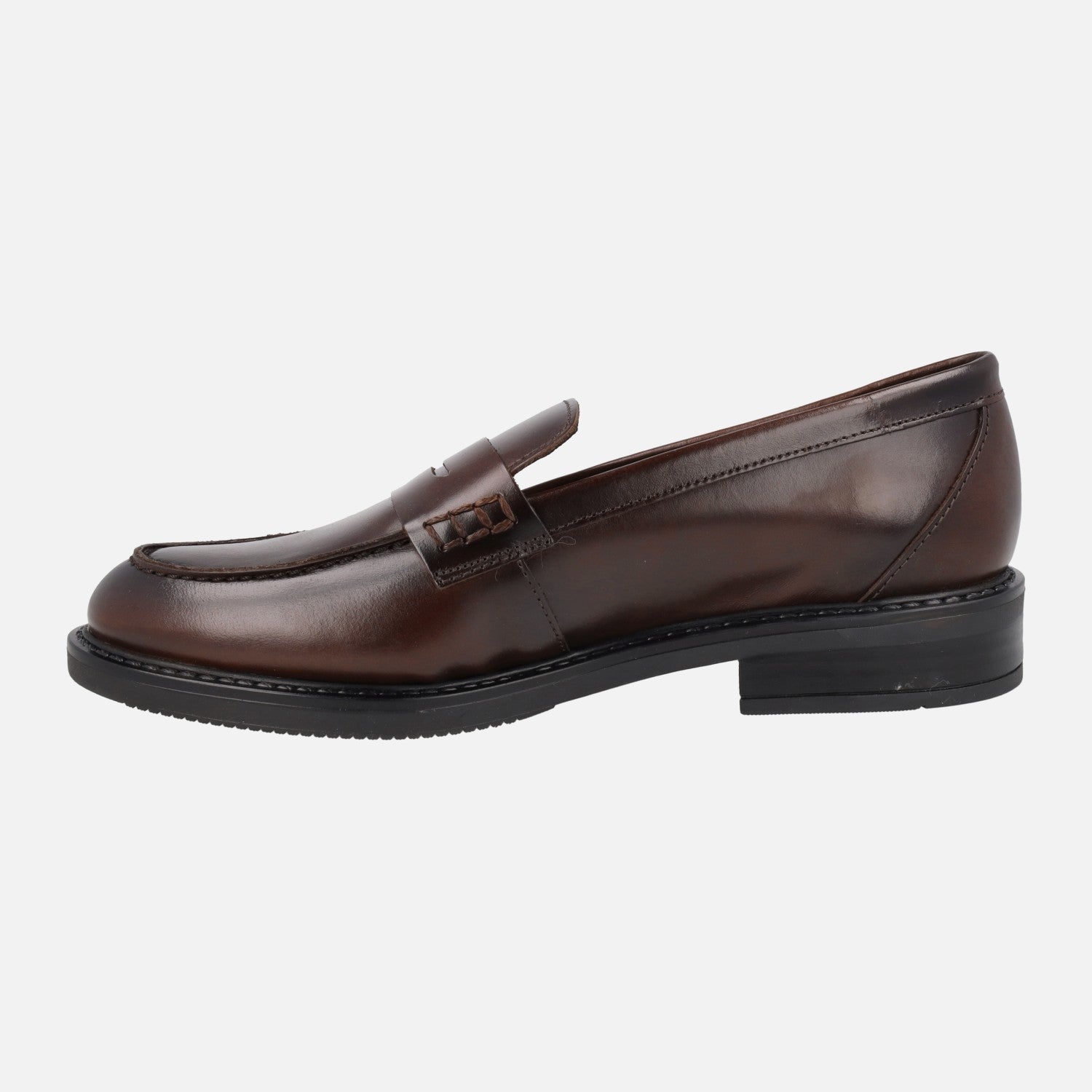 Elegantes mocasines de piel de la marca Bryan Stepwise modelo 8200, disponibles en piel marrón chocolate o negra. Mocasines de corte clásico, con adorno de antifaz. Exterior de piel, interiores en piel y tejido. Piso sintético con tacón de 2,5 cm de altura.