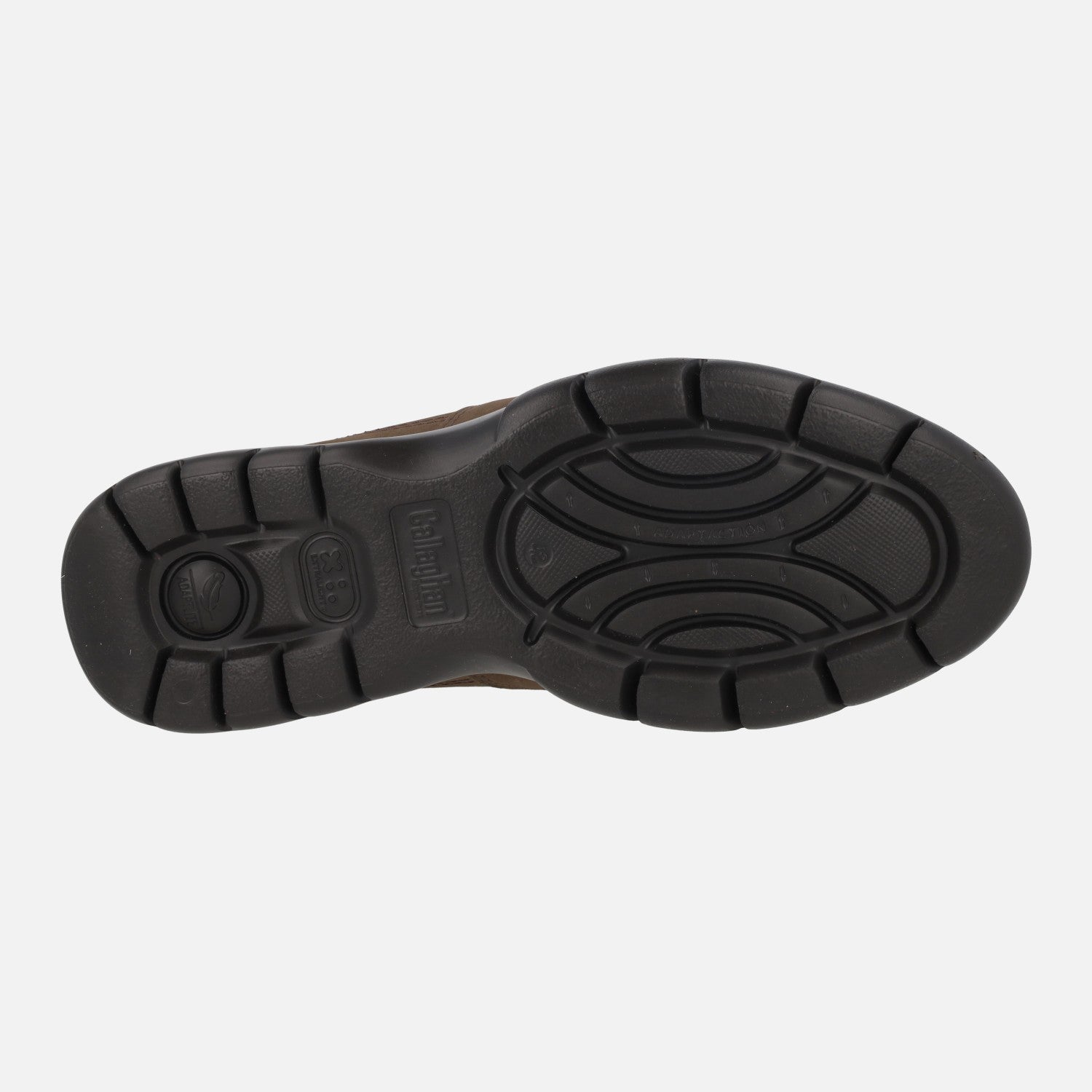 Mocasines confort para hombre de la marca Callaghan modelo 56201 trufa. Mocasines con elásticos laterales, para un mejor ajuste y mayor facilidad al calzarlo. Elaborados en piel nobuck color marrón, con membrana interior impermeable WATERADAPT. Plantillas extraíbles. Piso de goma XL Extralight.