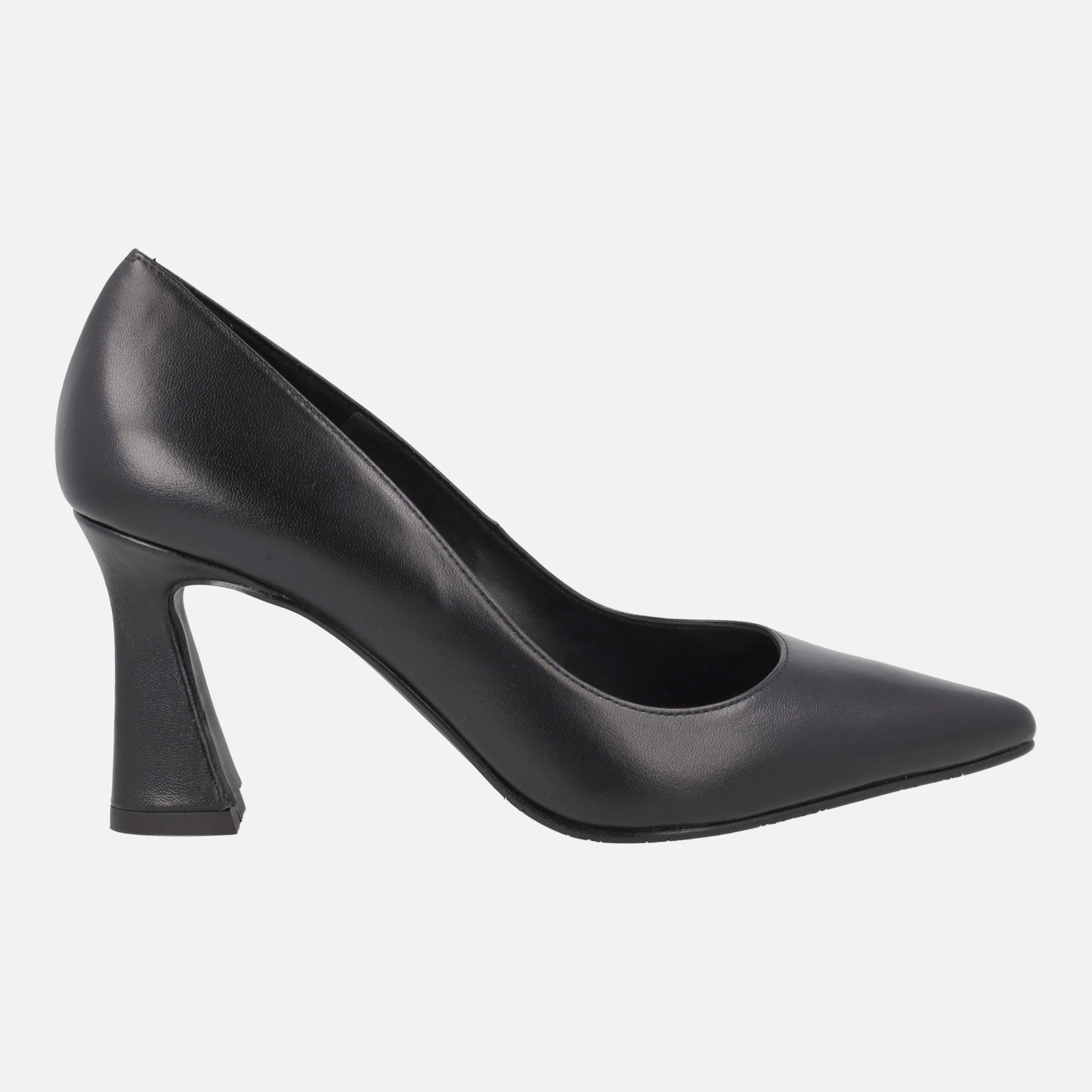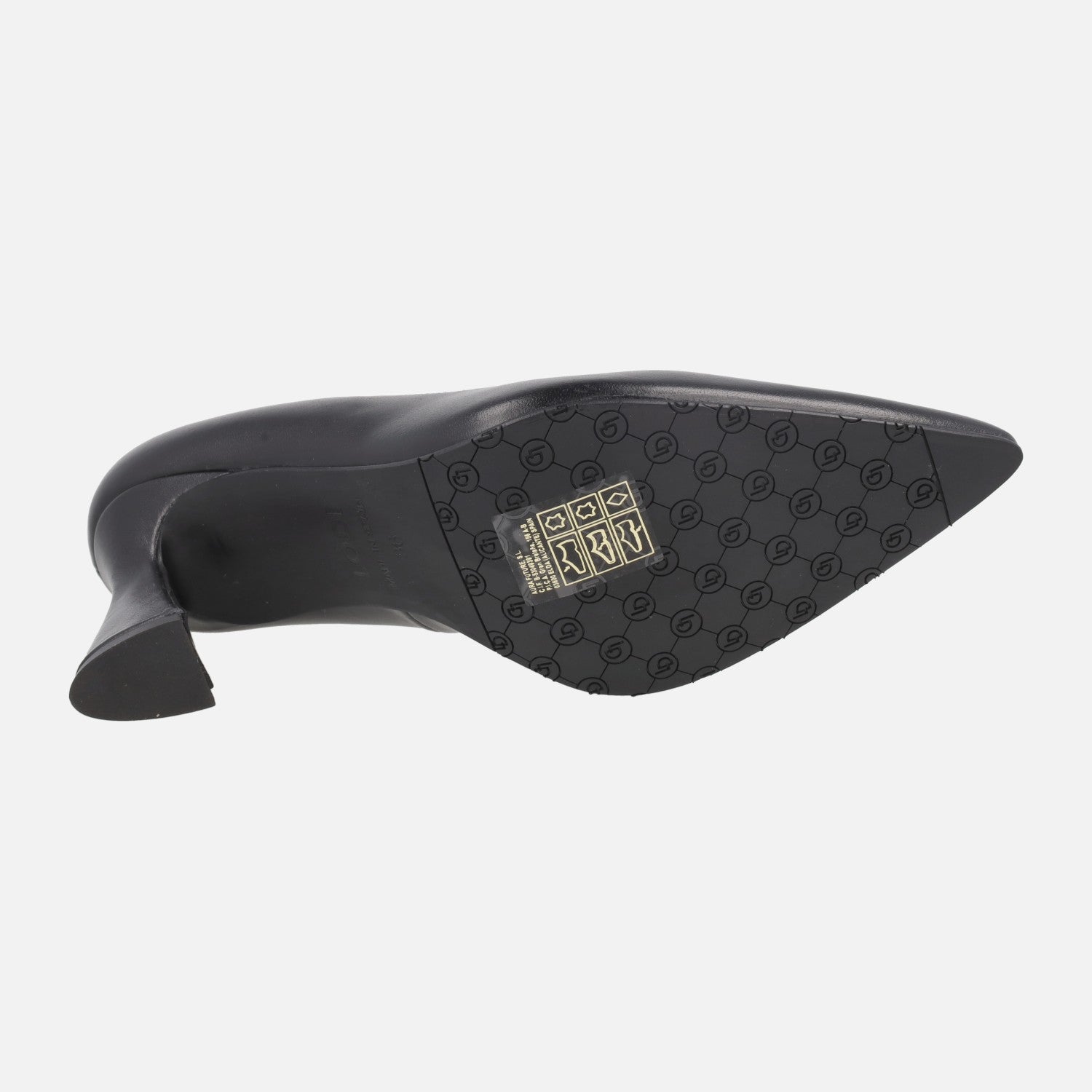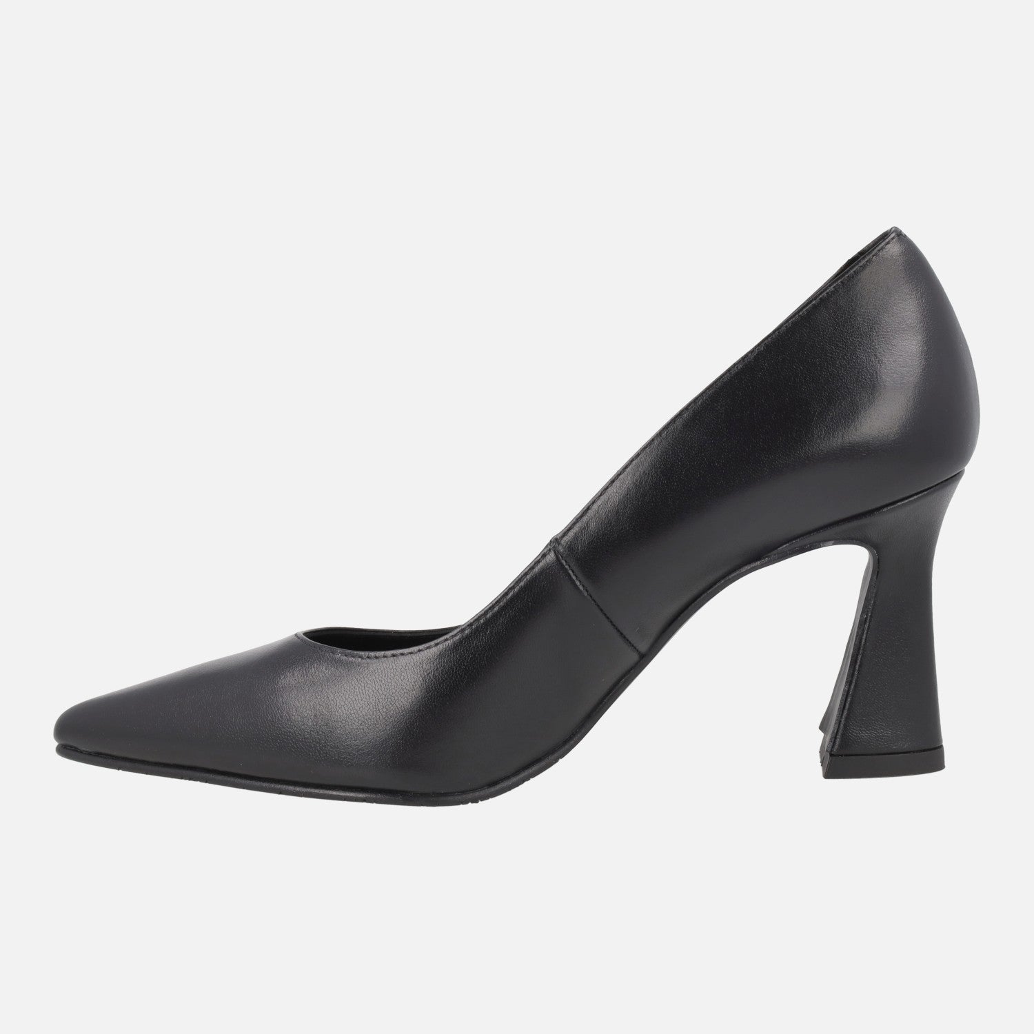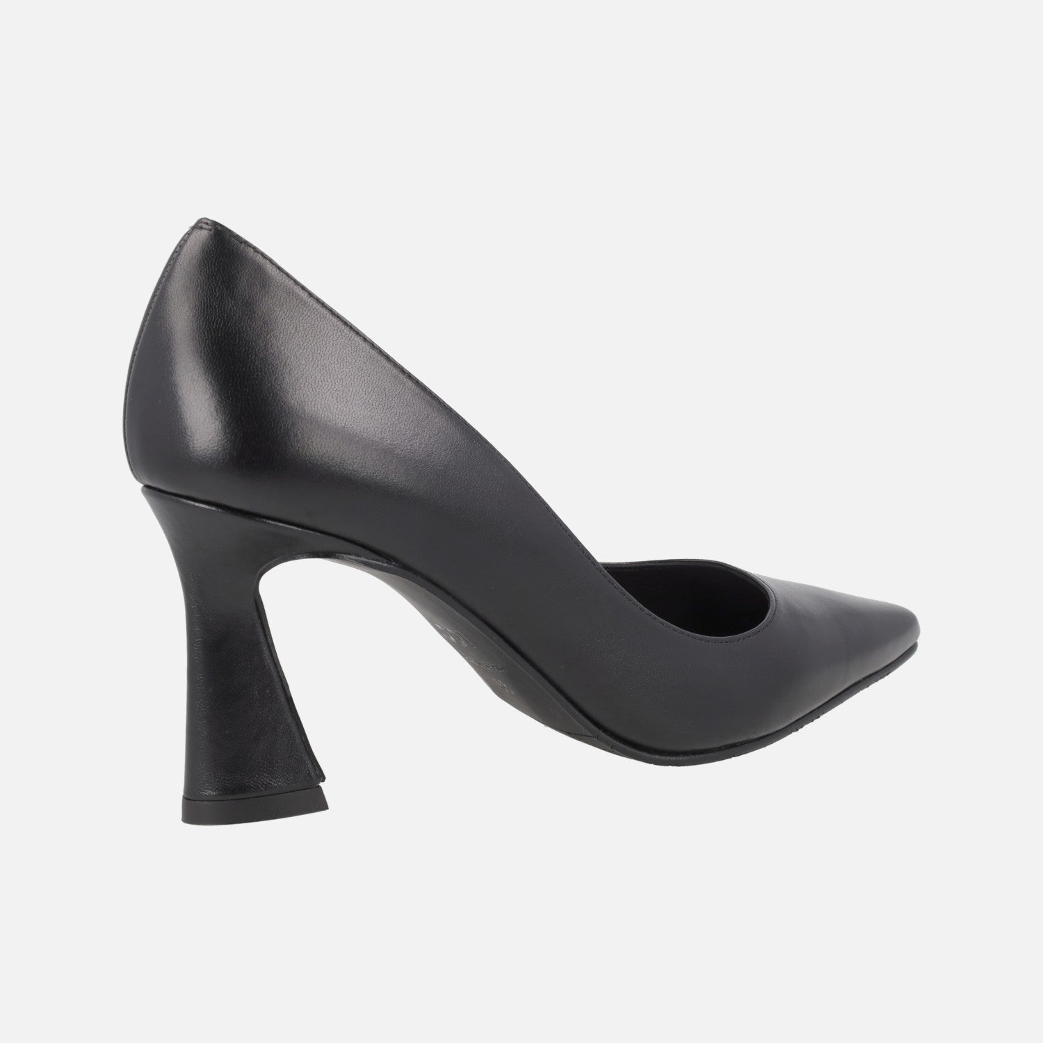 Zapatos corte salón para mujer de la marca Lodi modelo Roa negro. Salones de horma afilada, elaborados en piel negra, con interiores forrados de piel. Tacones de 8,5 cm de altura. Escote redondeado. Suela sintética. Made in Spain.