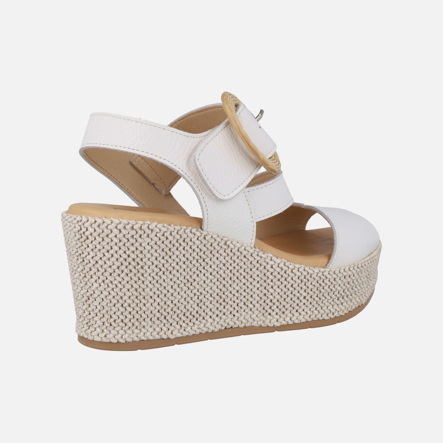 Sandalias de piel con cuña alta de rafia y cierre de velcro