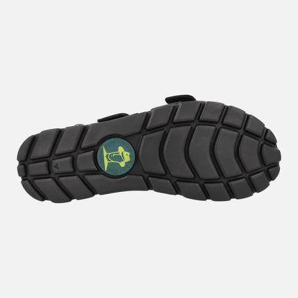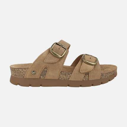 Sandalias para mujer Panama jack Shirley disponibles en B1 Napa grass Negro/Black y en B15 Velour Cuero/Bark. Sandalias de piel con hebillas ajustables. Disponibles en serraje cuero y en piel engrasada negra. Planta y forro de piel. Entresuela de corcho, piso de poliuretano, resistente y ligero. Altura trasera 4,5 cms (3 cms parte delantera). Made in Spain.