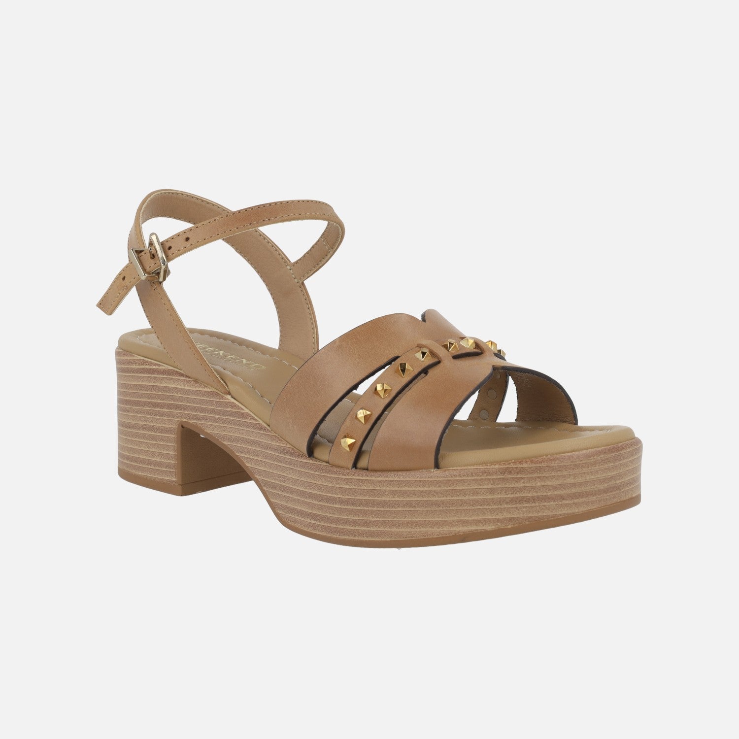 Sandalias de tacón y plataforma efecto madera de la marca Pedro Miralles, línea Weekend, modelo 15260 Negro. Sandalias elaboradas en piel negra con detalle de tachas doradas. Tira al tobillo con cierre de hebilla. Forro y planta en combinado de piel y sintéticos. Piso sintético efecto madera, con plataforma delantera de 3 cms y tacones de 6 cms. Made in Spain.