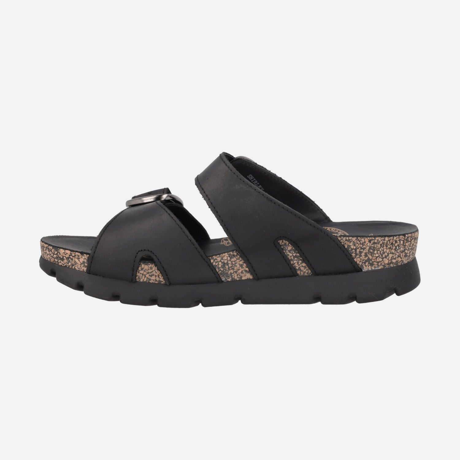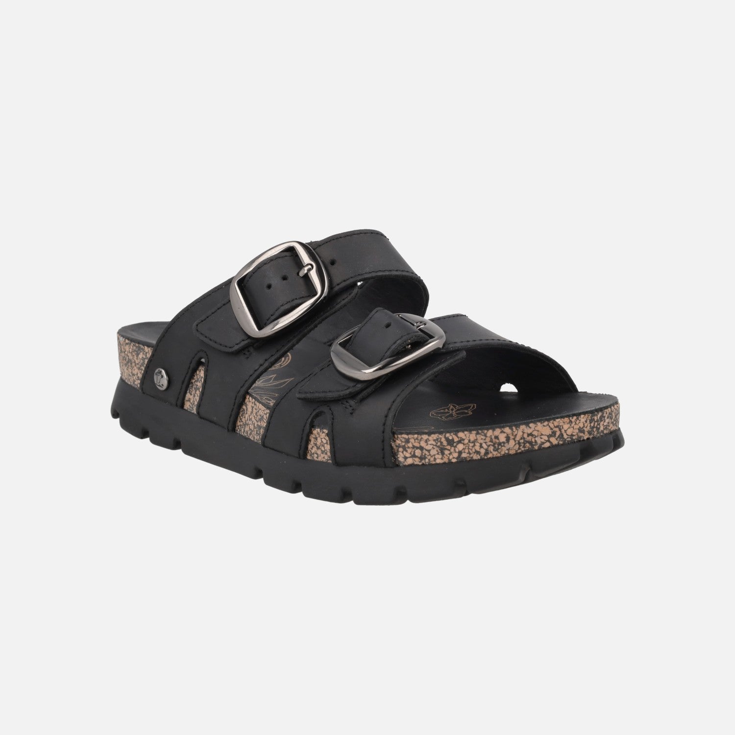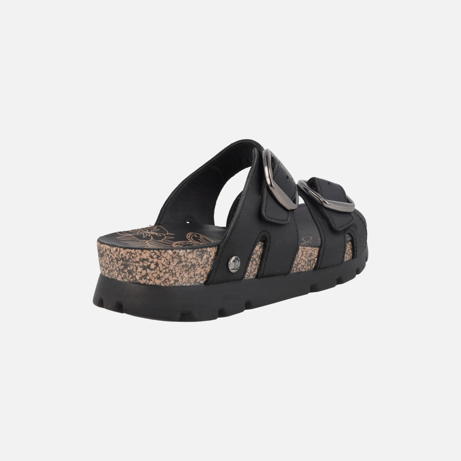 Sandalias para mujer Panama jack Shirley disponibles en B1 Napa grass Negro/Black y en B15 Velour Cuero/Bark. Sandalias de piel con hebillas ajustables. Disponibles en serraje cuero y en piel engrasada negra. Planta y forro de piel. Entresuela de corcho, suela de EVA. Altura trasera 4,5 cm (3 cm parte delantera). Made in Spain.