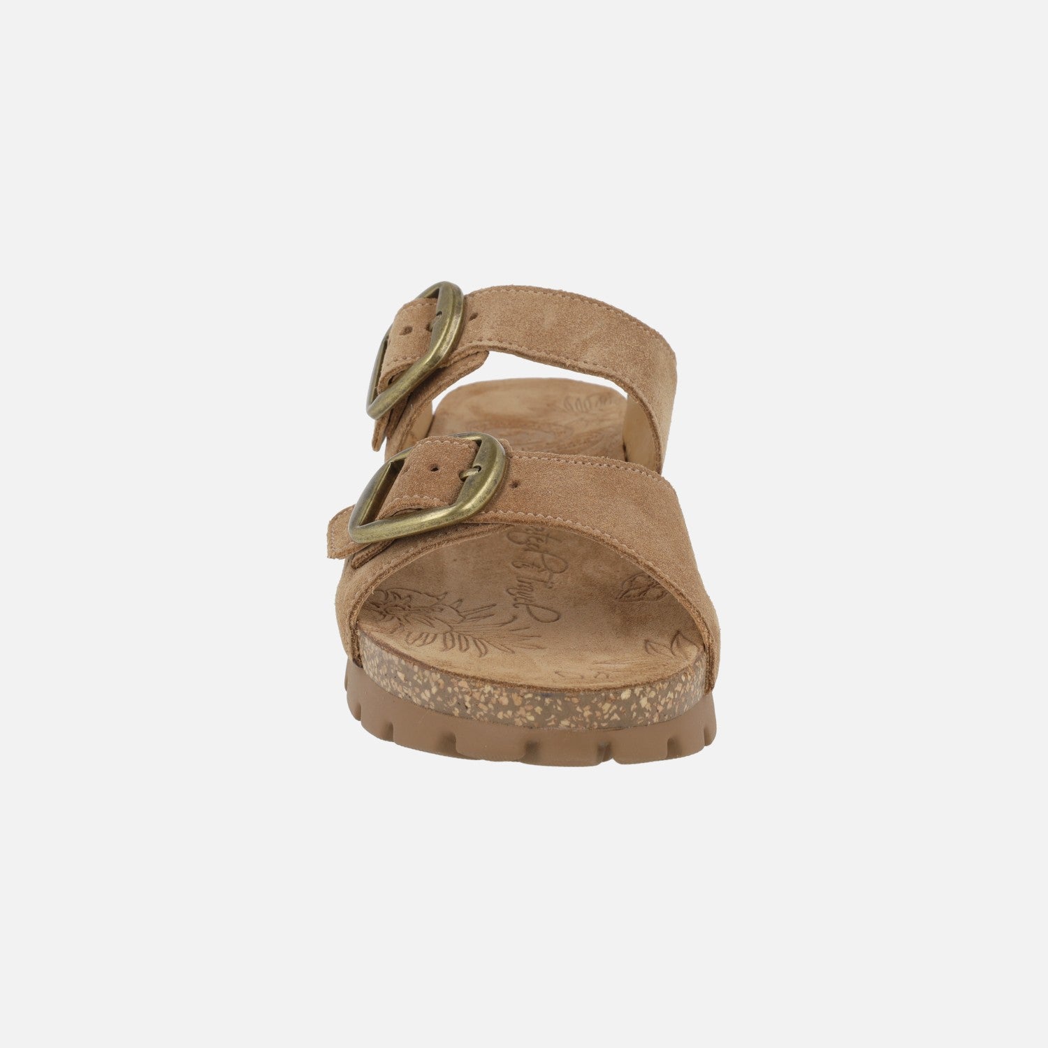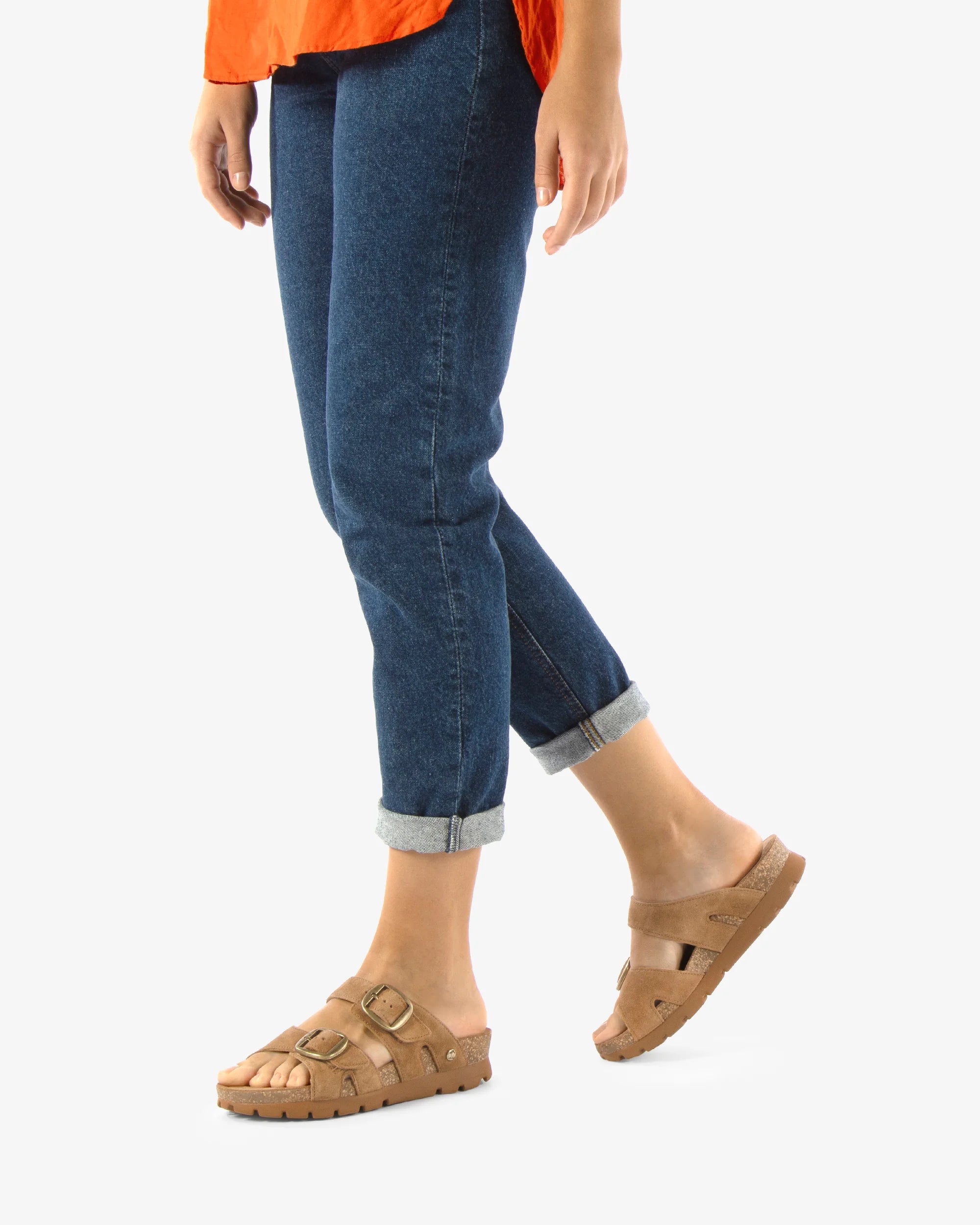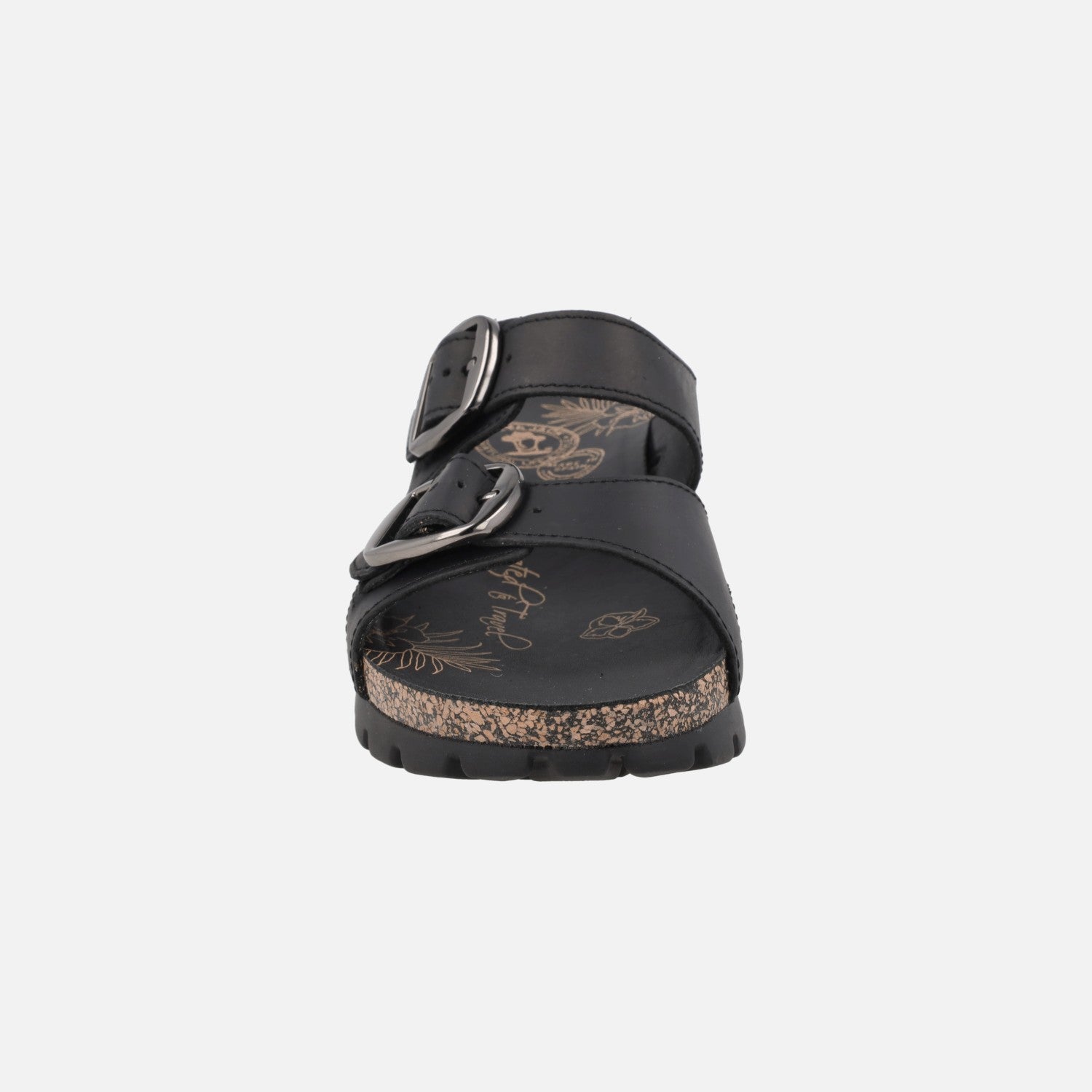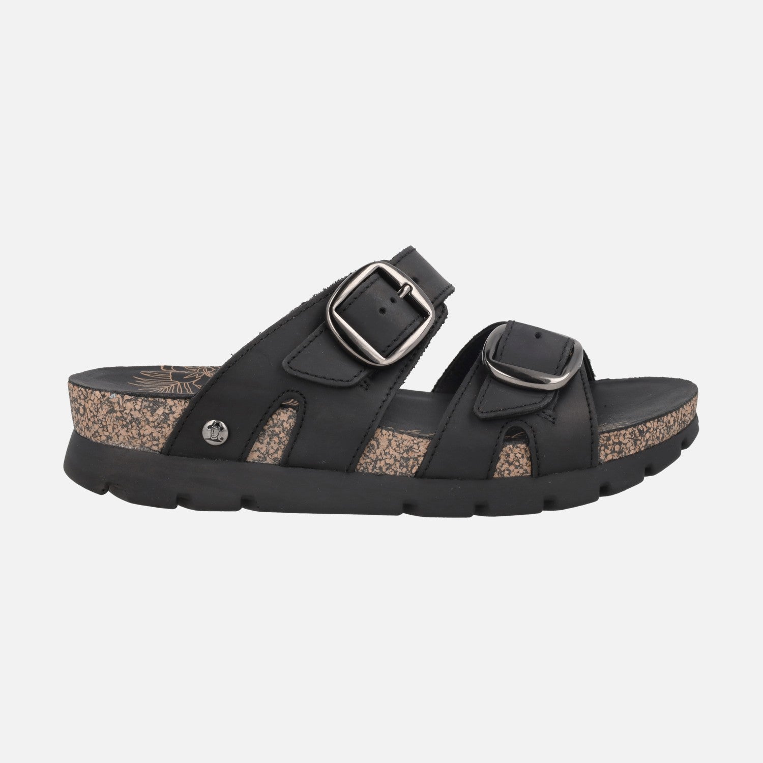 Sandalias para mujer Panama jack Shirley disponibles en B1 Napa grass Negro/Black y en B15 Velour Cuero/Bark. Sandalias de piel con hebillas ajustables. Disponibles en serraje cuero y en piel engrasada negra. Planta y forro de piel. Entresuela de corcho, suela de EVA. Altura trasera 4,5 cm (3 cm parte delantera). Made in Spain.
