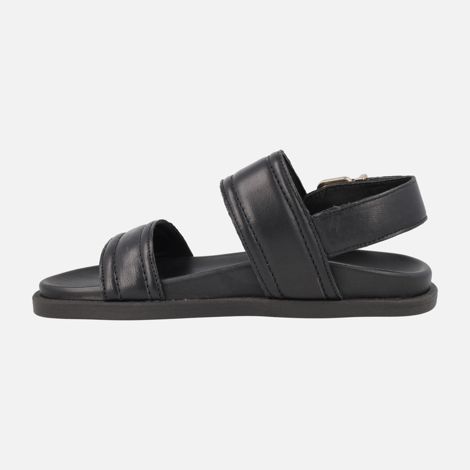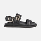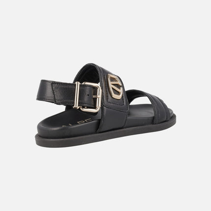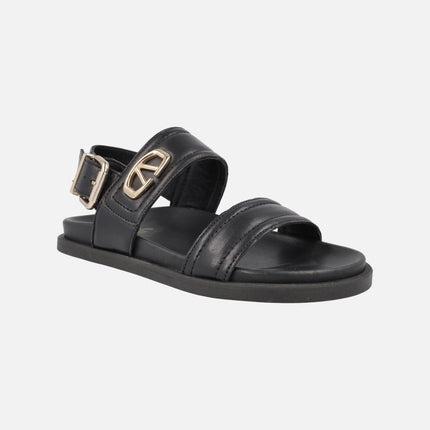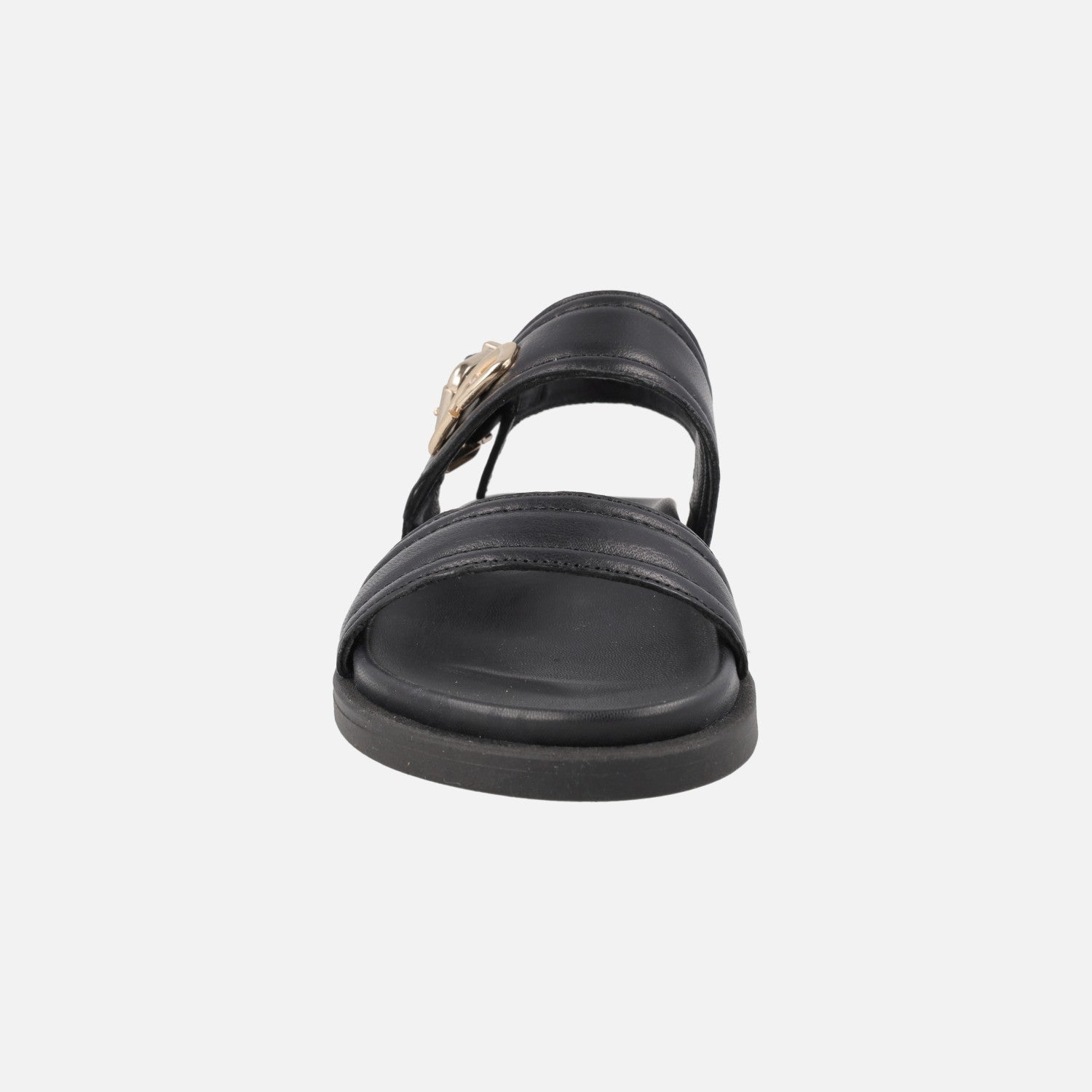 Sandalias negras de piel Isabela con adorno metálico dorado