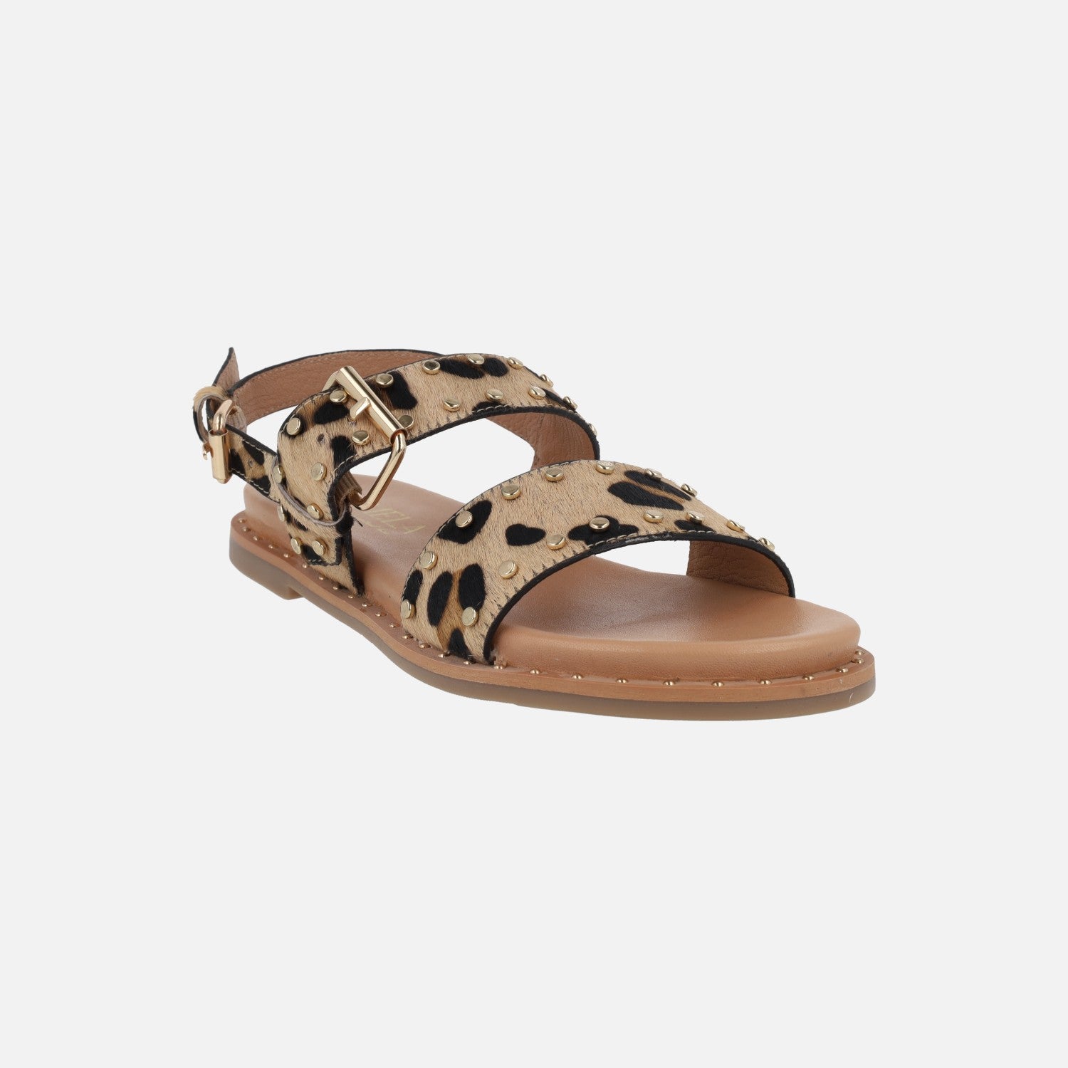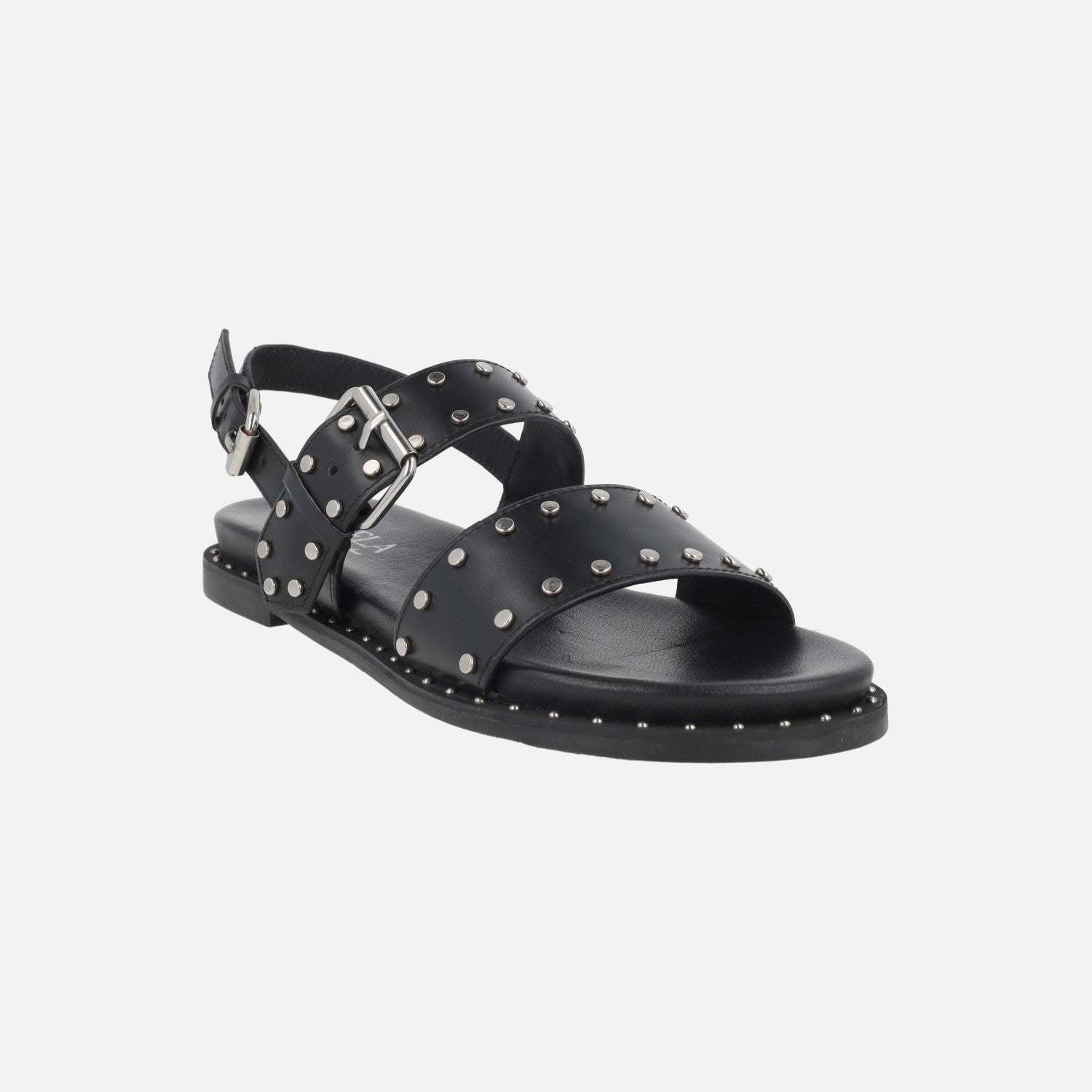 Sandalias planas de piel con tachas y hebillas