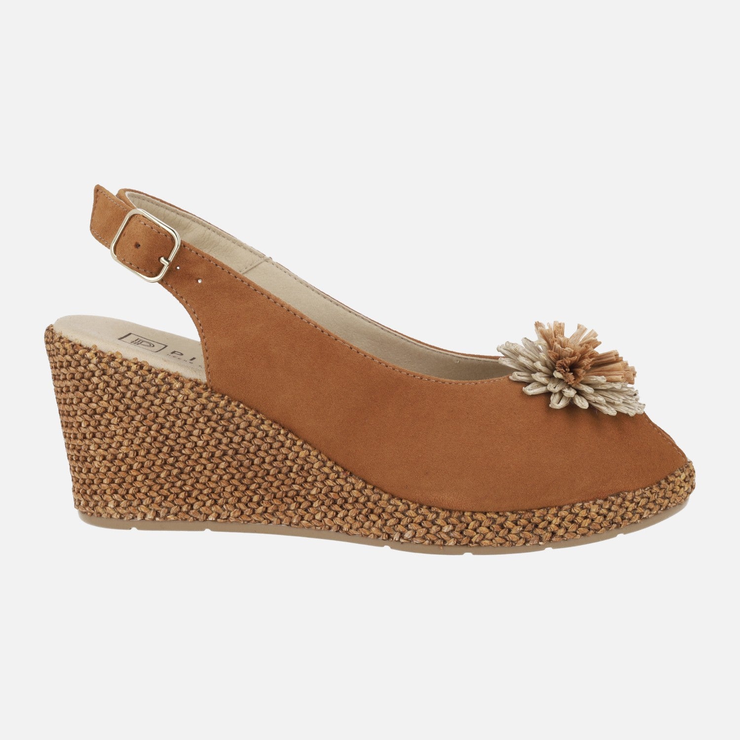 Zapatillas de ante con cuña de rafia y adorno de flor