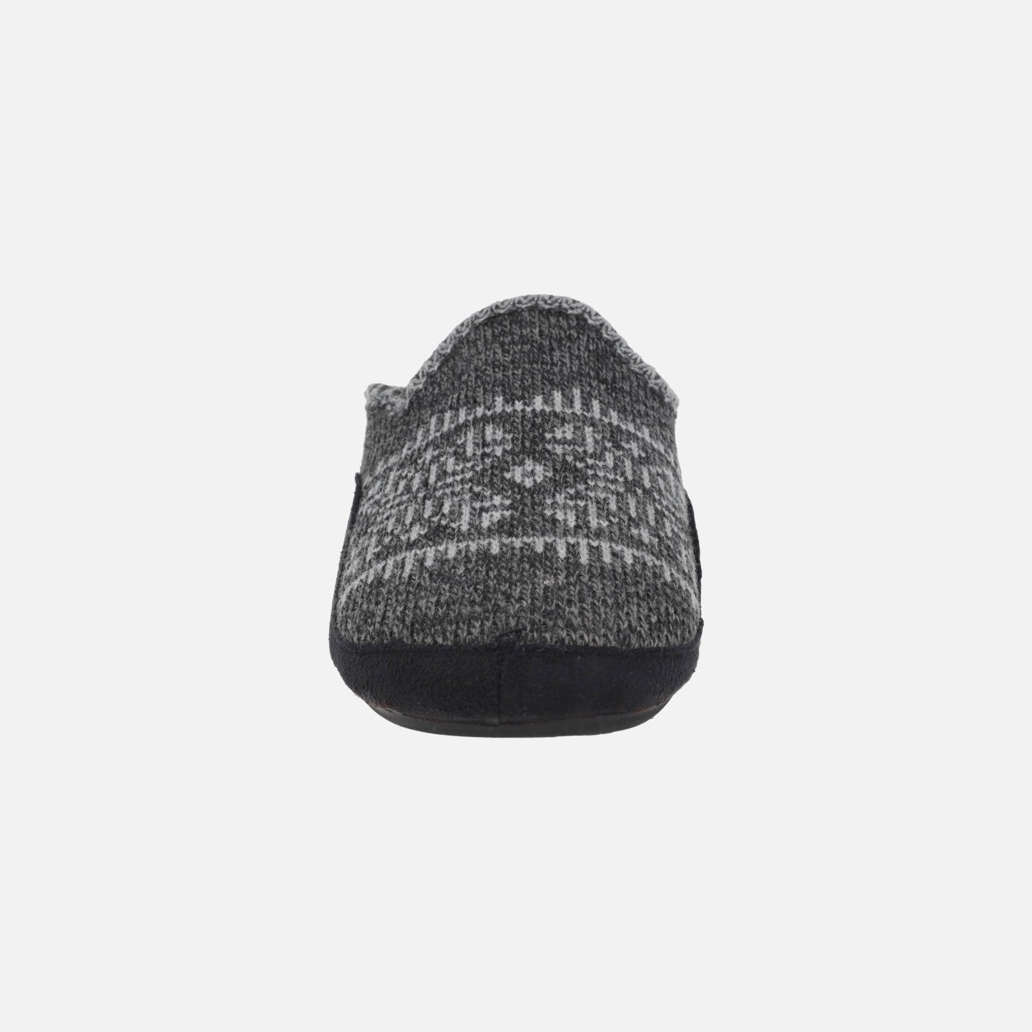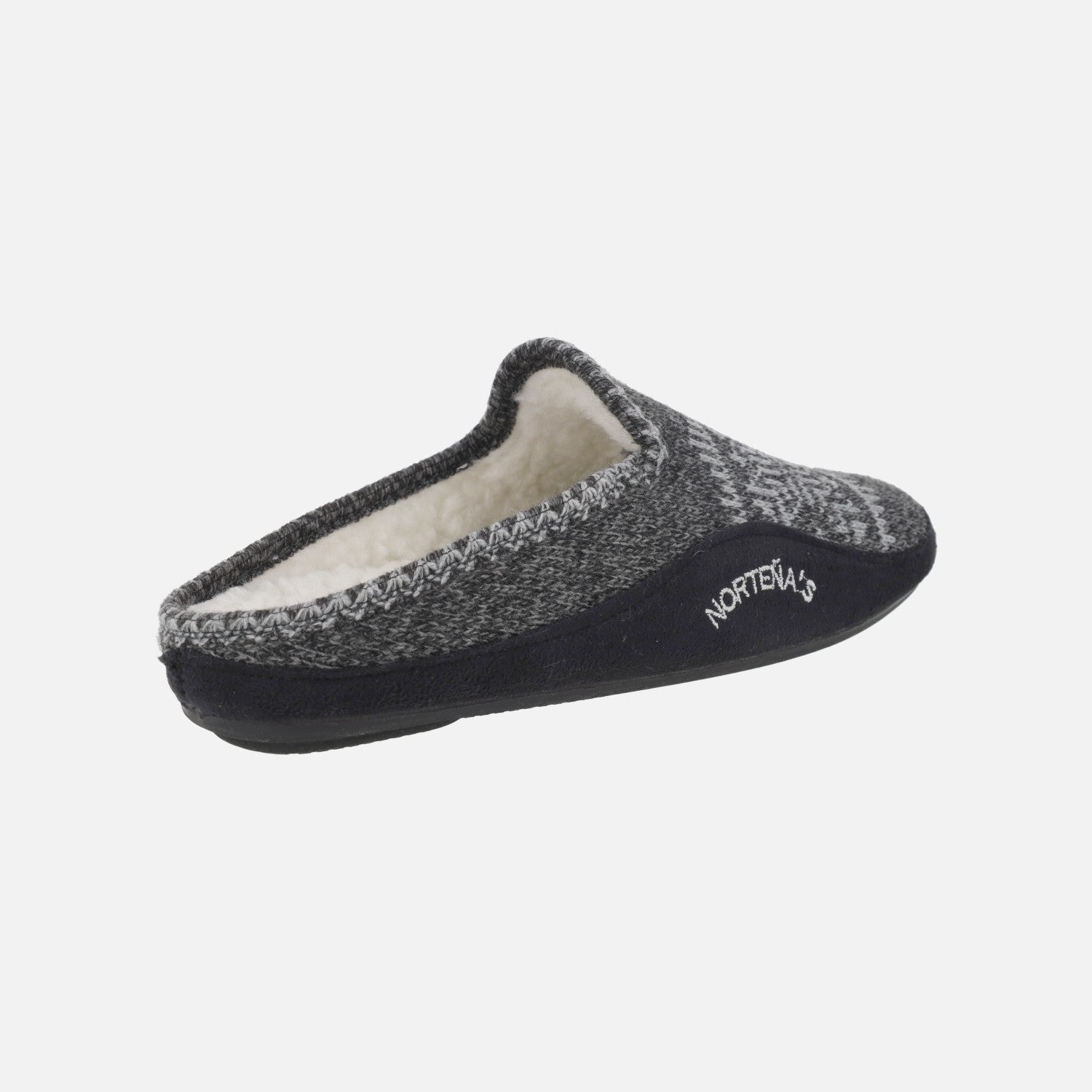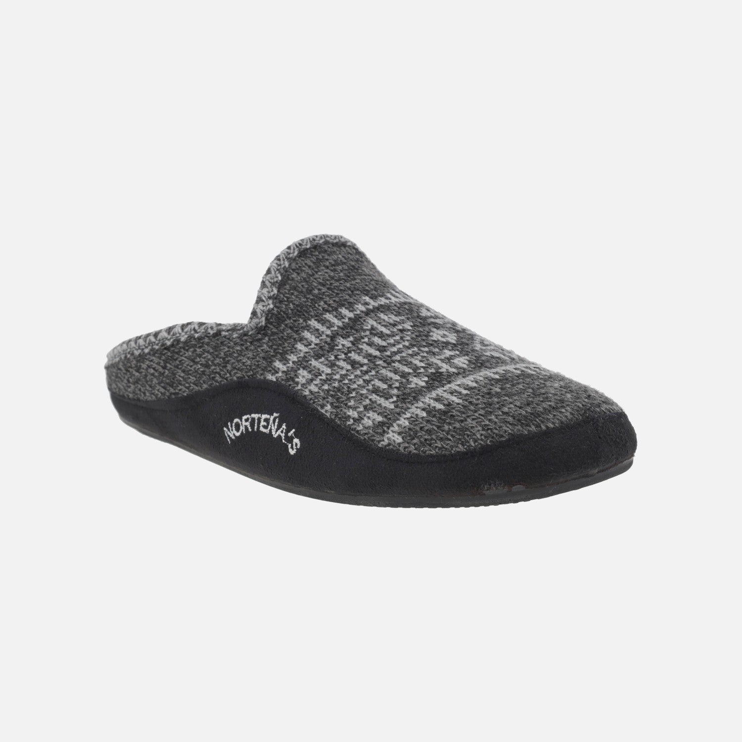 Zapatillas de casa para hombre en tejido lana de la marca Norteñas, modelo 48-148 Marengo. Zapatillas descalzas, elaboradas en tejido punto gris y negro, estampado. Interior en tejido borreguillo, al igual que las plantillas que además son extraíbles. Suela sintética.