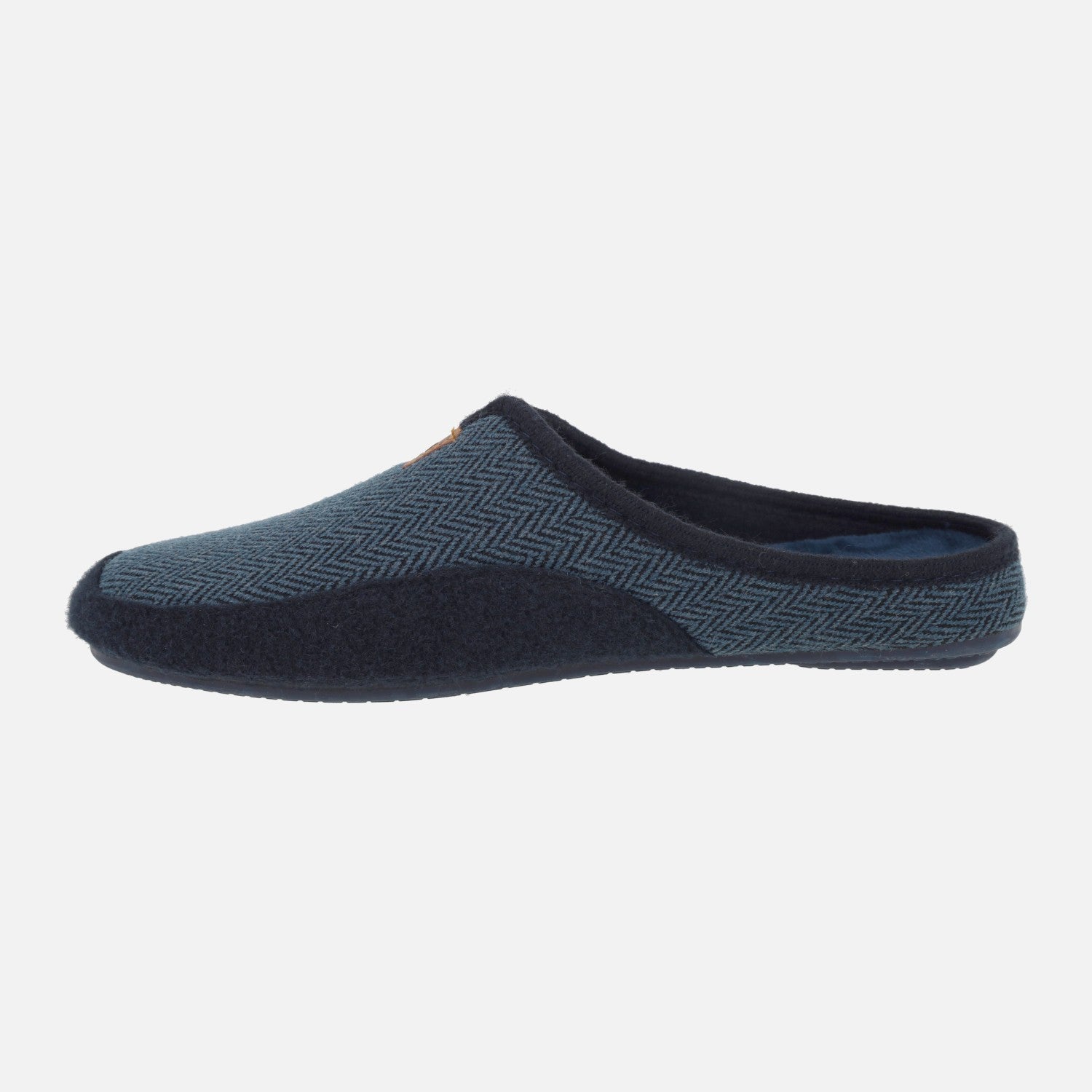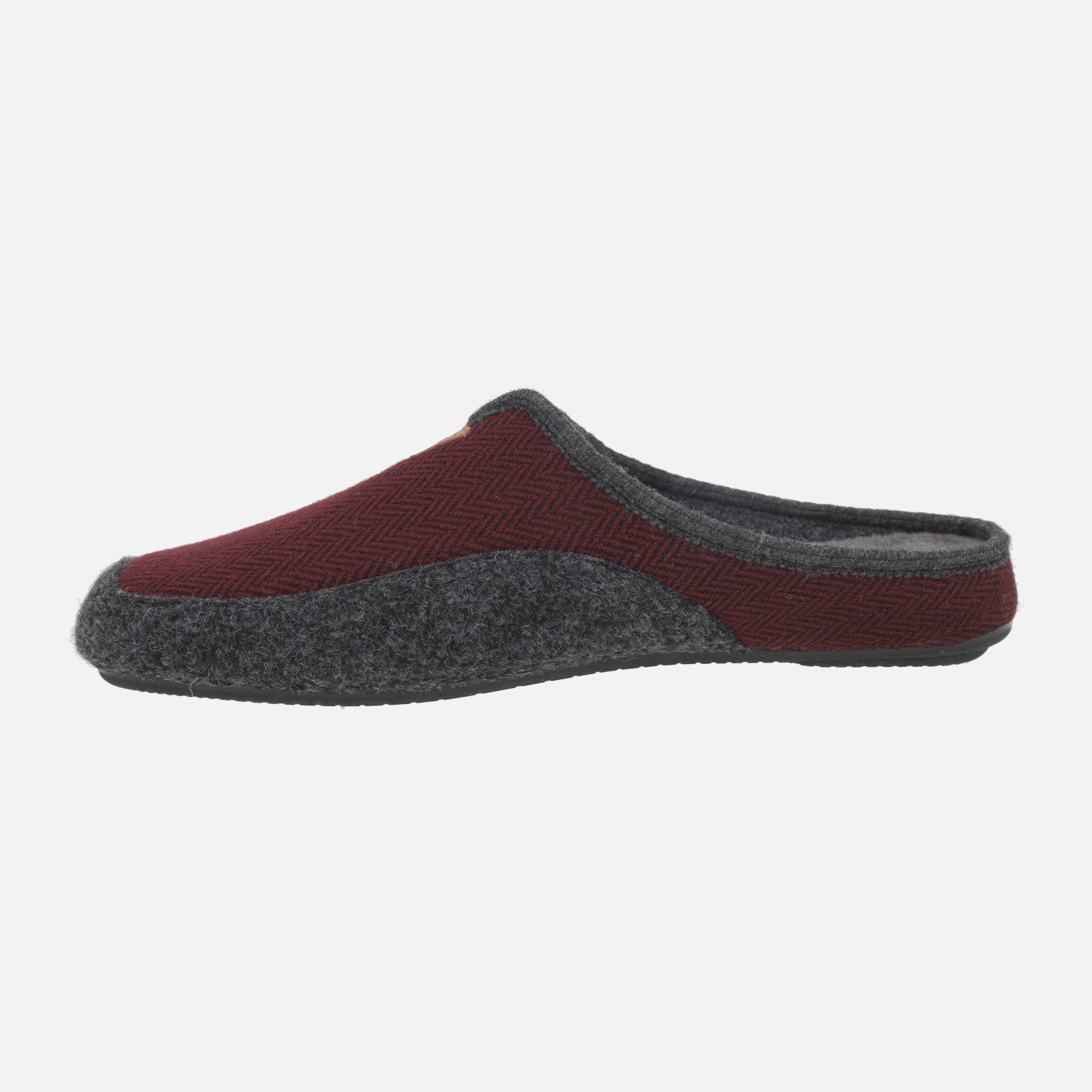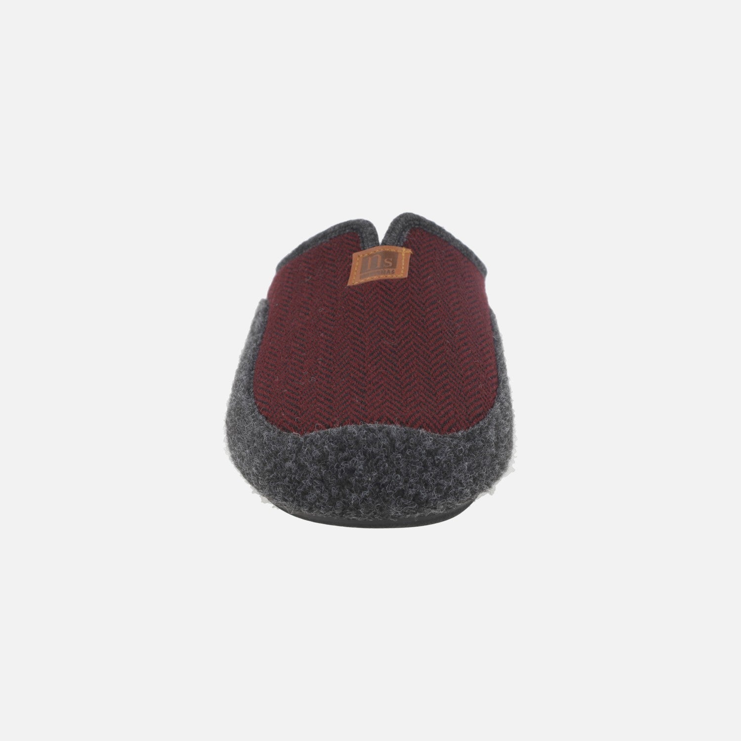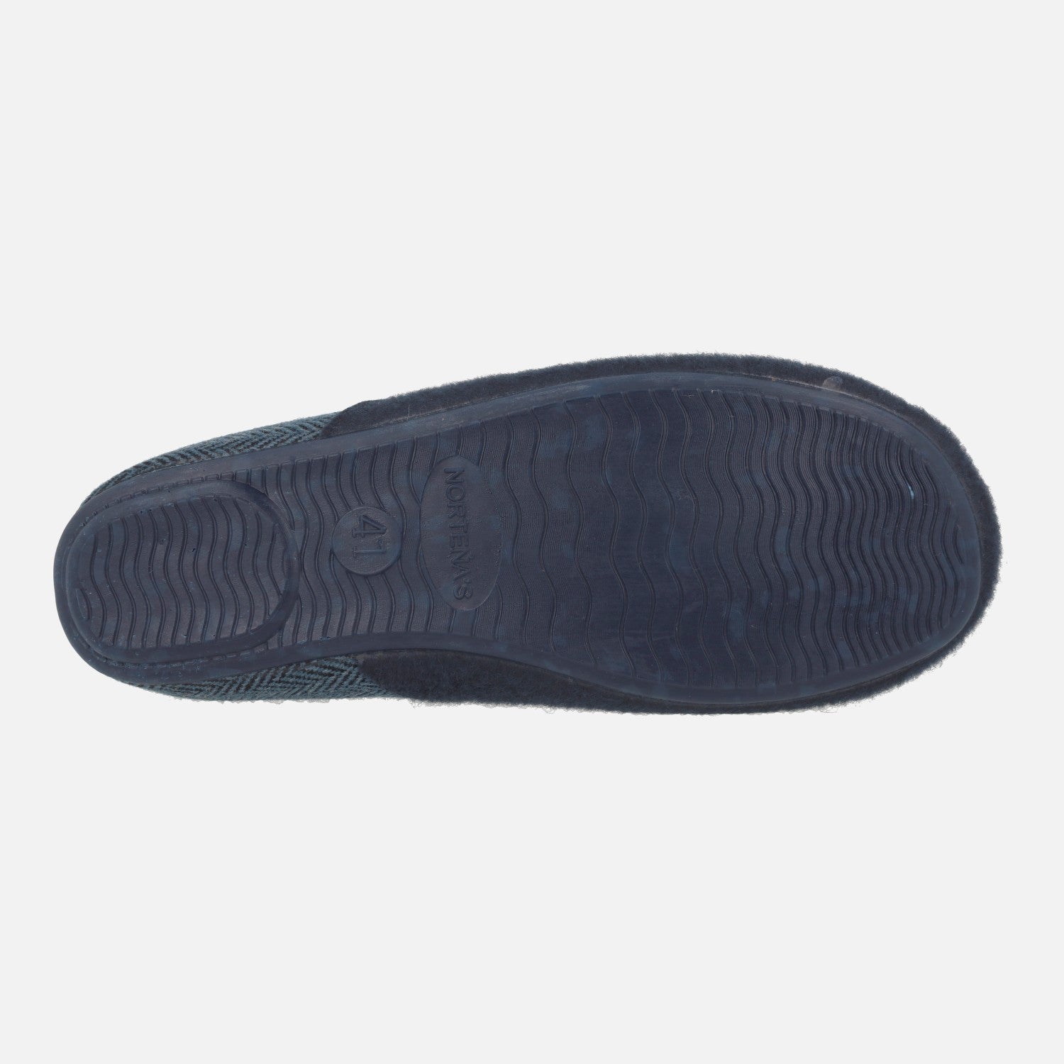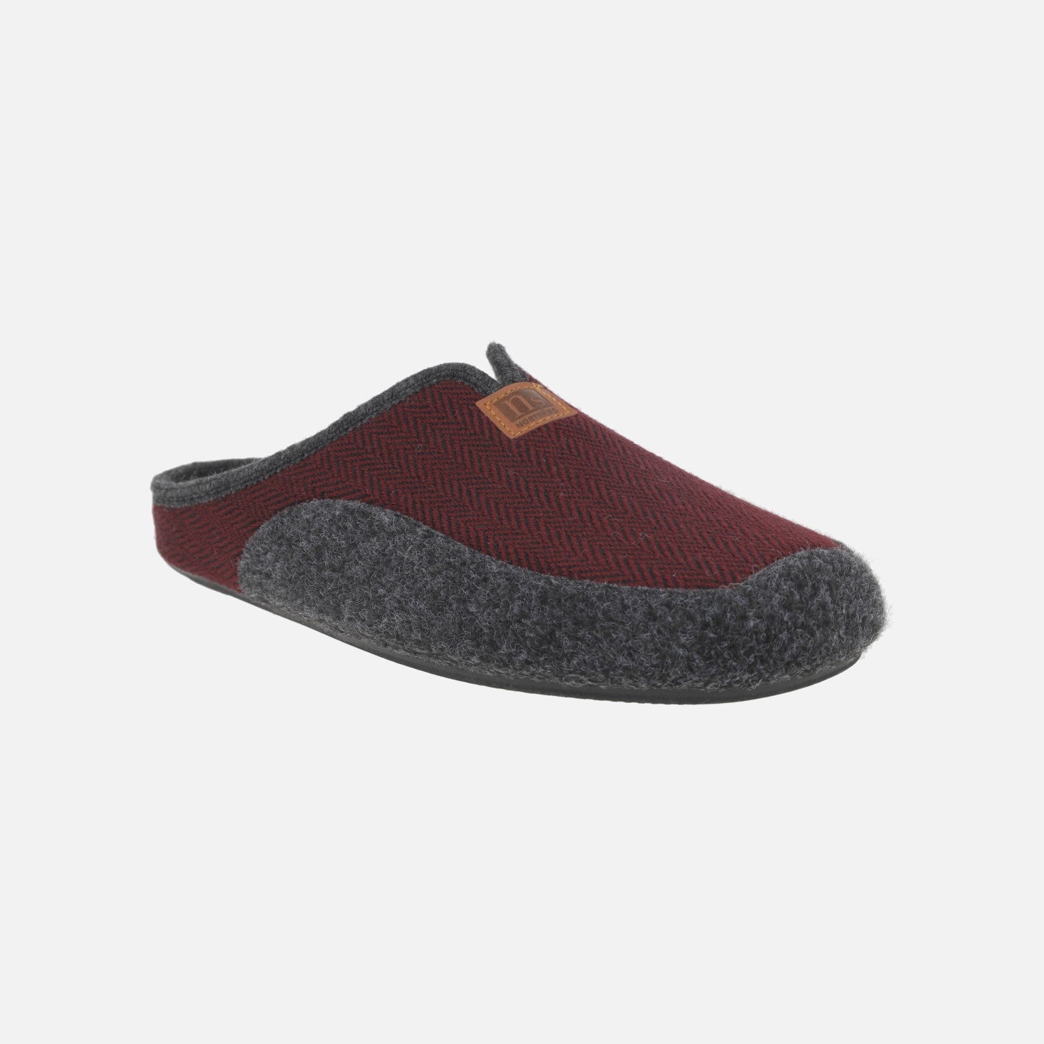 Zapatillas de casa descalzas para hombre de la marca Norteñas, modelo 47-129, disponibles en combinado azul marino o en combinado burdeos. Zapatillas elaboradas en tejido jaspeado combinado con tejido fieltro. Interior textil con plantillas extraíbles. Piso sintético.