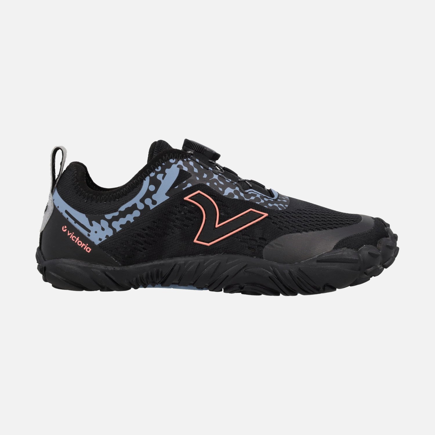 Zapatillas deportivas unisex de la marca VICTORIA modelo Terratech BAREFFOT Mesh 1184101 Negro. Zapatillas Barefoot elaboradas en tejido y sintéticos, con cierre Boa autobloqueante, para un ajuste cómodo y sencillo. Interior textil con plantillas extraíbles. Suela de goma flexible, de apenas 1 cm de altura. Muy ligeras y flexibles, con un diseño que permite total libertad en el movimiento de los dedos. Trae doble juego de plantillas, un par de ellas es de transición, para adaptarte poco a poco a tus Barefoot.