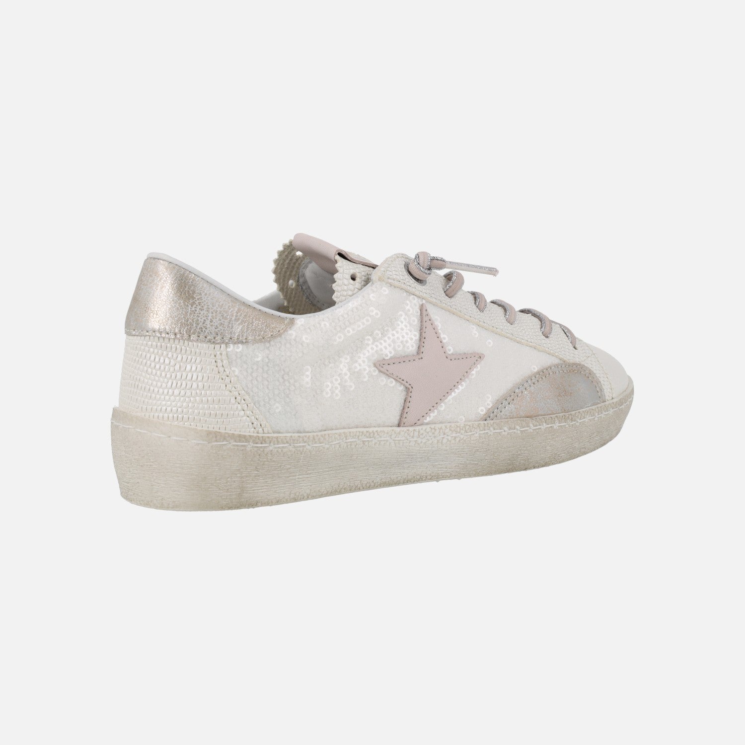 Zapatillas deportivas blancas con lentejuelas y detalles en rosa
