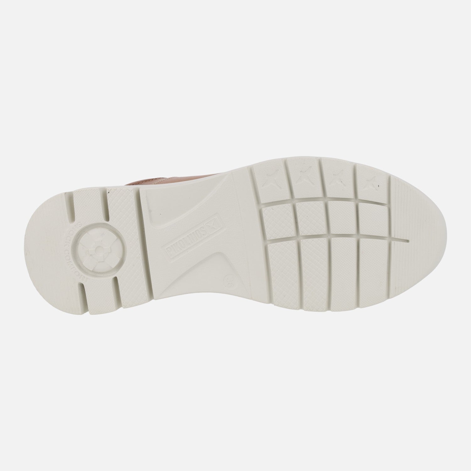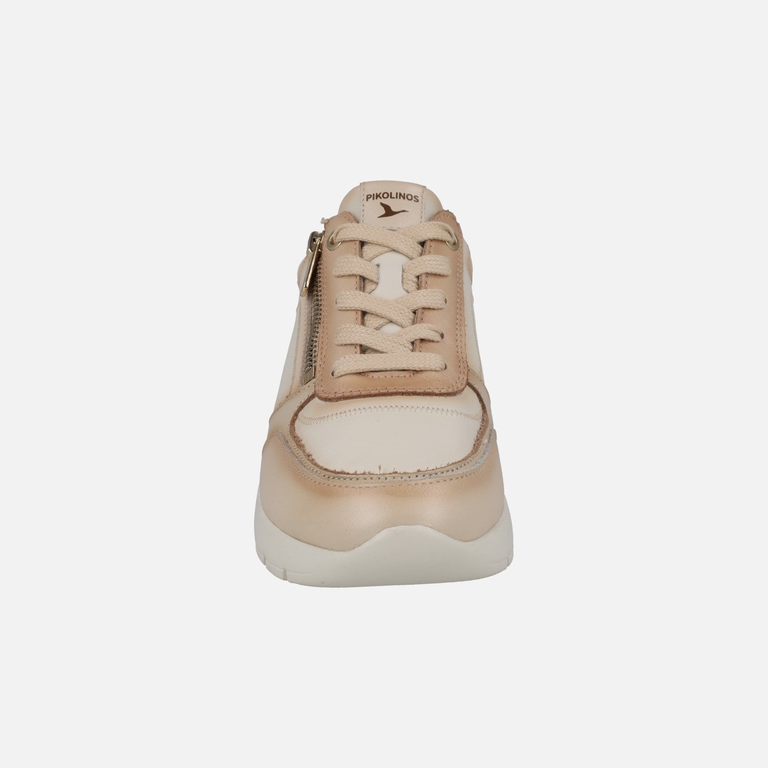 Zapatos deportivos para mujer de la marca Pikolinos modelo Cantabria W4R-6524, disponibles en combinado nata (beige) y terracota (marrón). Zapatos de piel con cierre de cordones en la parte frontal y cremallera lateral. Interiores en combinado de piel y tejido, plantillas extraíbles Memory foam. Suela Extra light, con 5 cm de altura trasera (2 cm en la parte delantera).