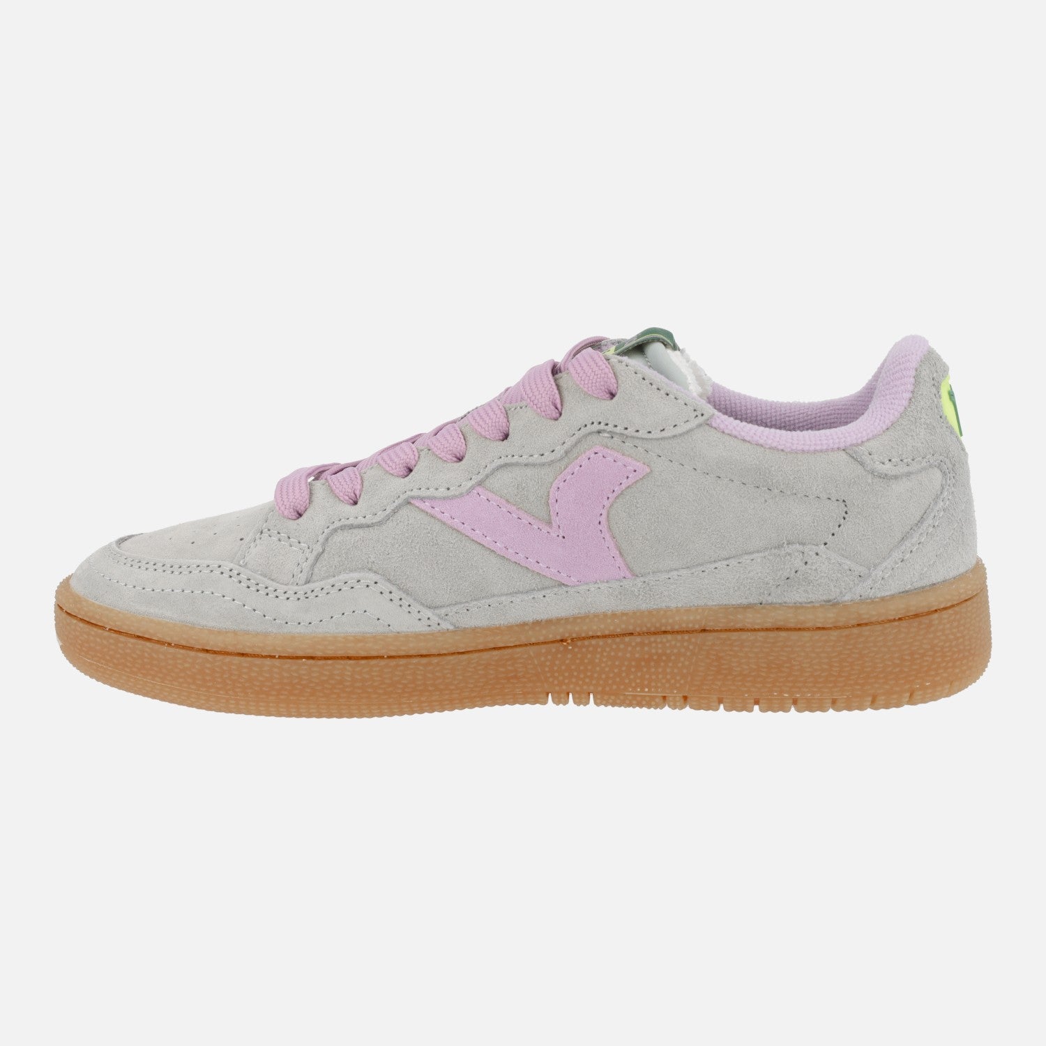 Zapatillas deportivas modelo Smash suede 8806111 de la marca Victoria, disponibles en beige y en jade. Deportivas elaboradas en piel serraje con cierre de cordones textiles. Interiores en tejido y sintéticos con plantillas extraíbles. Piso de goma color caramelo, de 3 cm de altura trasera (2 cm parte delantera).