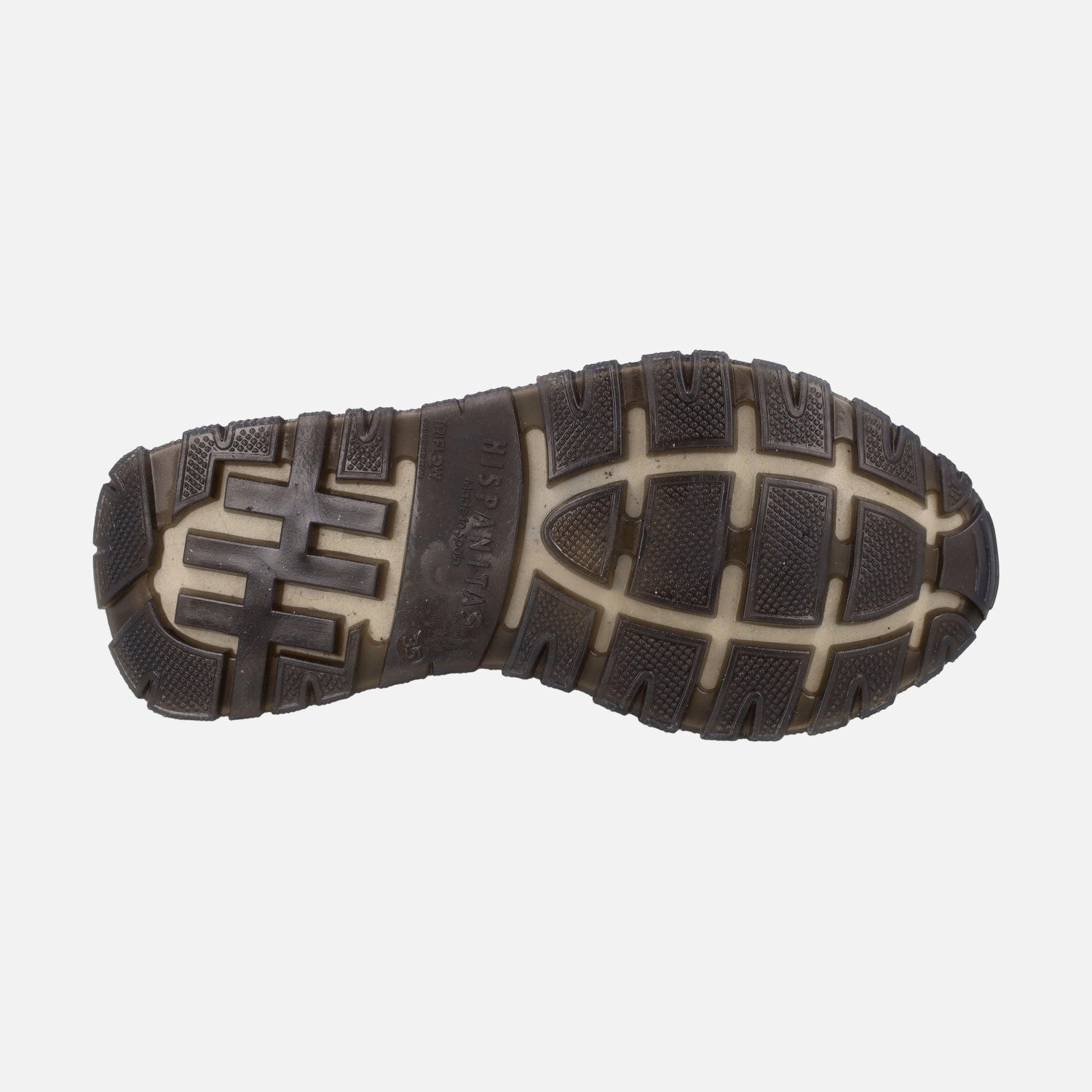 Zapatillas deportivas Hispanitas Kansas HI254222, disponibles en negro y en topo. Deportivas combinadas en piel y tejido nylon, con banda elástica en el empeine. Interiores en microfibra con plantillas extraíbles. Piso de goma de 3 cm de altura trasera (2 cm parte delantera). Tecnología TRIFLOW de triple almohadillado, para un gran confort al caminar.