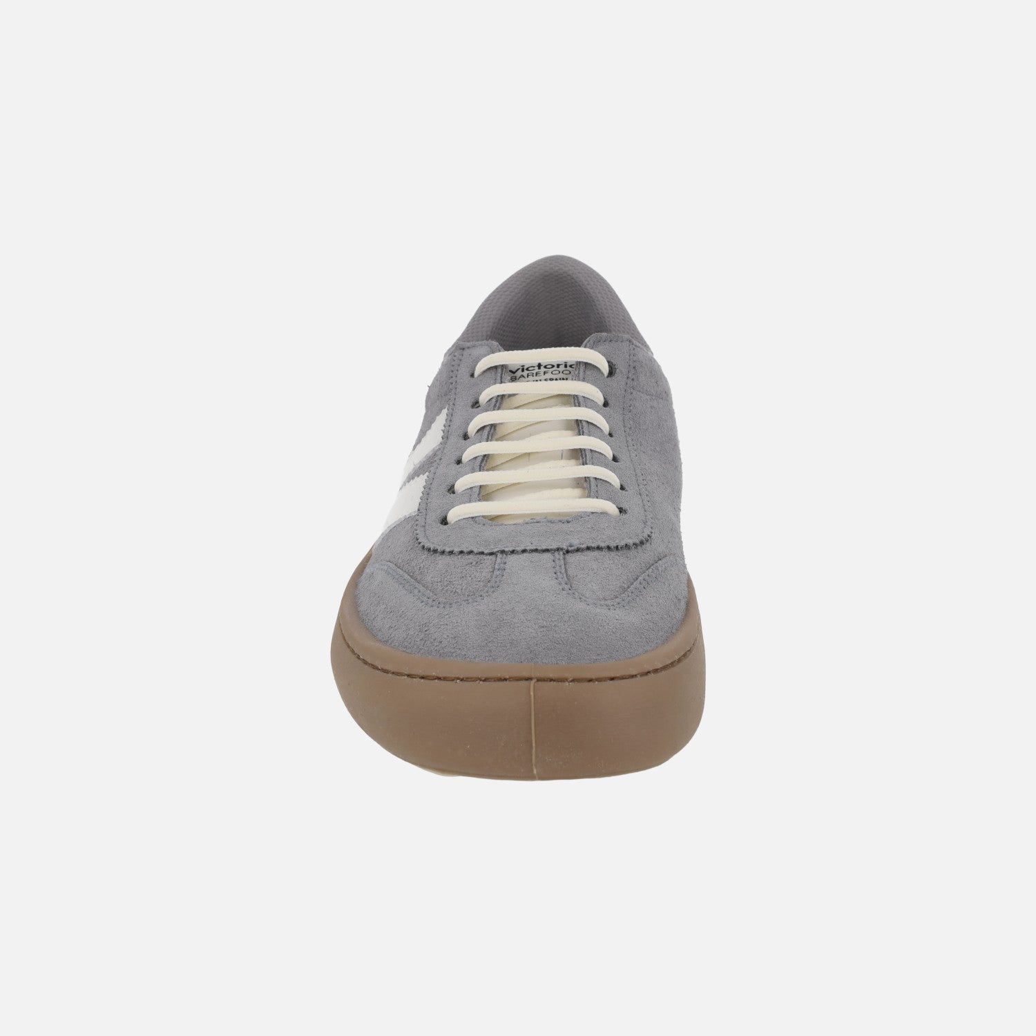 Zapatillas barefoot de la marca Victoria modelo 1186103 Olmo barefoot serraje & contraste, disponibles en marrón chocolate, gris, tierra (marrón) y arena (beige). Zapatillas unisex de horma ancha, para que tus dedos se muevan libremente. Elaborados en piel serraje, con interior textil y algodón. Cierre de cordones. Suela fina y flexible de PVC. Plantillas extraíbles (doble juego, uno para DROP cero y otro de transición). Piso flexible y super ligero, de 1 cms de altura.