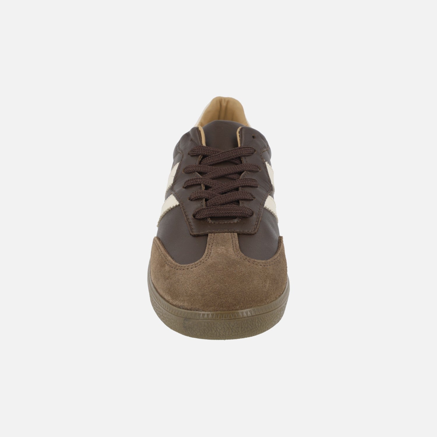 Zapatillas deportivas para mujer de la marca Ibiza. Zapatillas deportivas elaboradas en piel y serraje, con cierre de cordones. Disponibles en piel verde, marrón chocolate o serraje beige. Interior textil. Suela sintética de 2,5 cm. Hechos en Portugal.