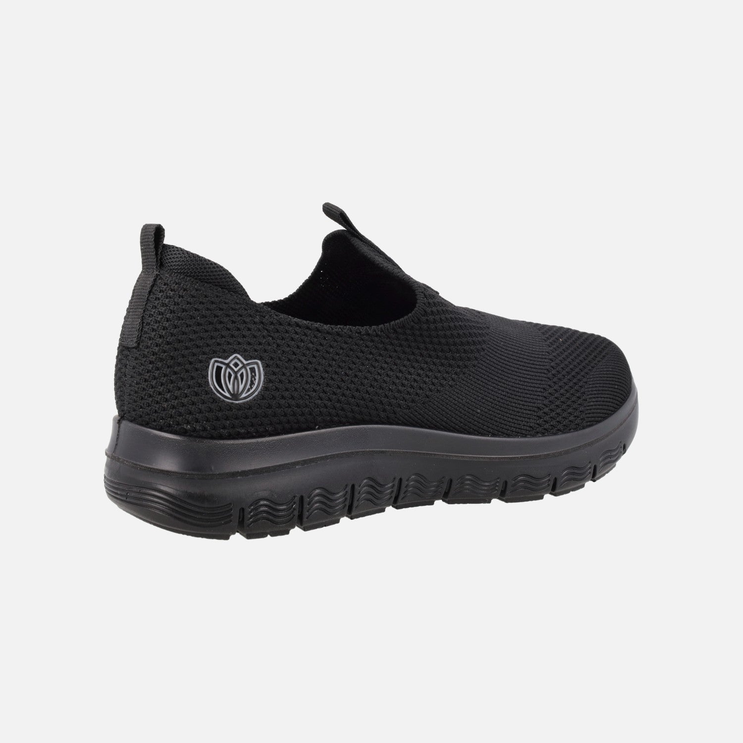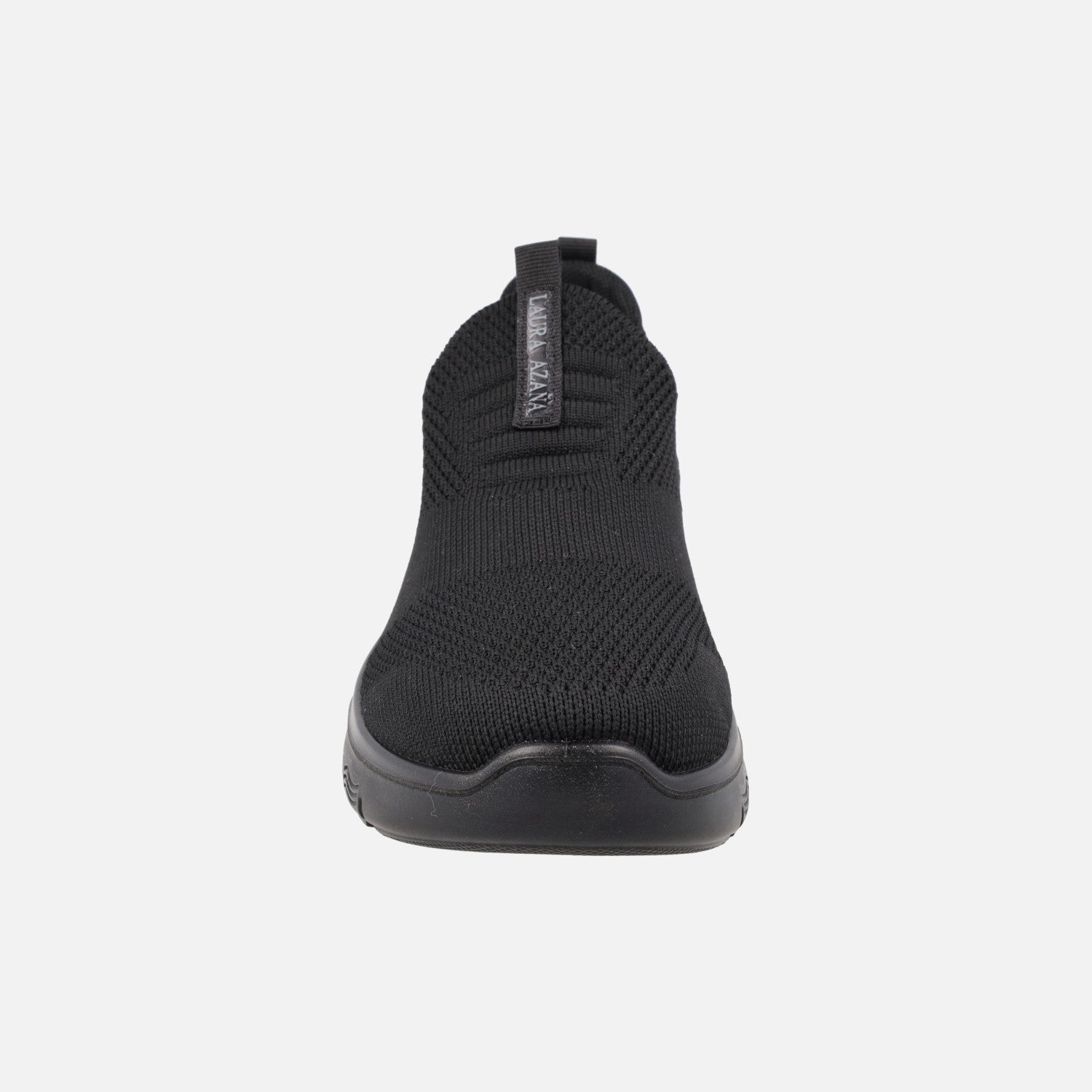 Zapatillas deportivas para mujer de la marca Laura Azaña modelo LA24504ST Linux negro. Zapatillas sin cordones estilo calcetín, elaboradas en tejido negro. Interior textil, con plantillas extraíbles. Piso de goma, con 3 cms de altura trasera (2 cms parte delantera).